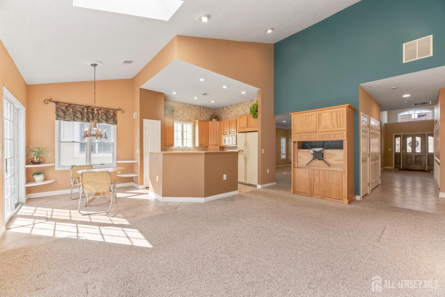 - Blinds, Fire Alarm, High Ceilings, Skylight, Entrance Foyer, Bedroom, Kitchen, Laundry Facility, Living Room, Full Bathroom, Bath on Main Level, Dining Room, Family Room, Attic, None