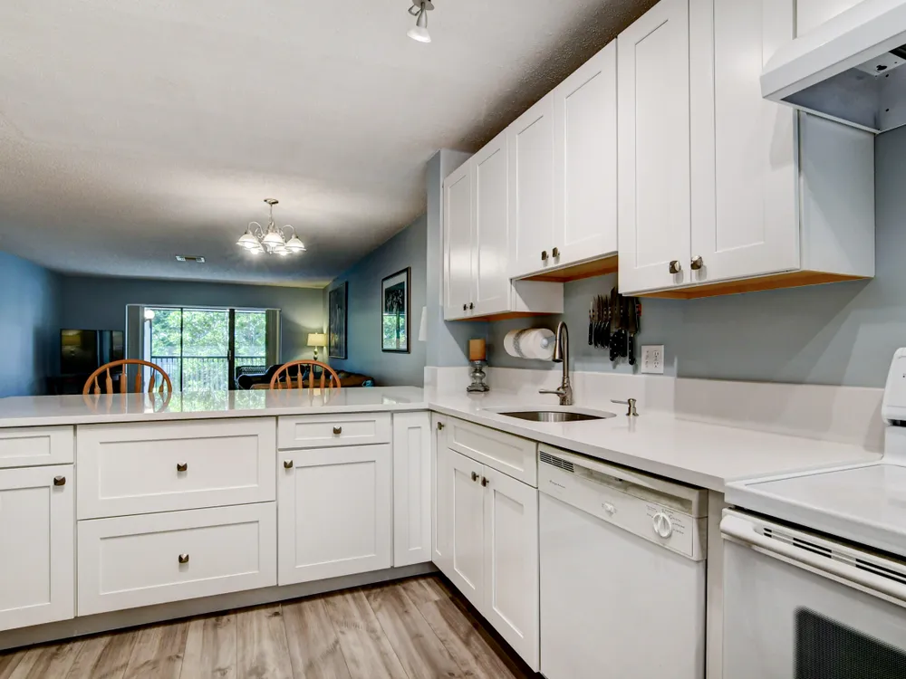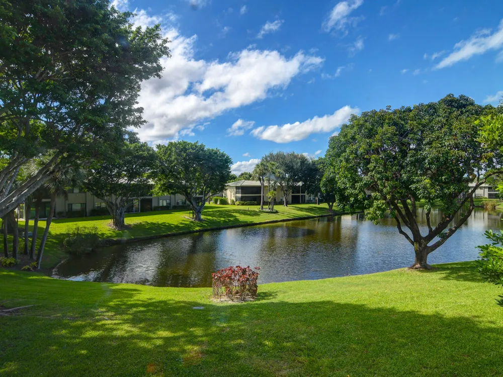 *Membership Required* Lovely waterfront condo in Hunters Run. Renovated & Move-In Ready! This 2-bedroom, 2-bathroom condo offers a spacious 1,388 sq. ft. of living space, with an additional 192 sq. ft. screened-in balcony, bringing the total to 1,580 sq. ft. Enjoy serene water views, lush banyan trees, and birdwatching while sipping morning coffee from your private balcony.The eat-in kitchen boasts white shaker cabinetry, sleek white quartz countertops, and modern finishes. Brand new wood-look plank flooring flows throughout the main living areas, creating a stylish and cohesive look.Need extra storage? This unit has you covered! It features a large pantry, a master bedroom with a walk-in closet plus two additional closets