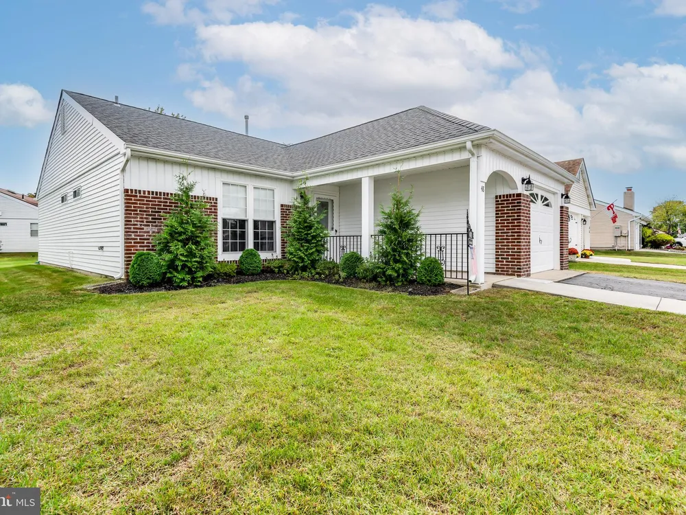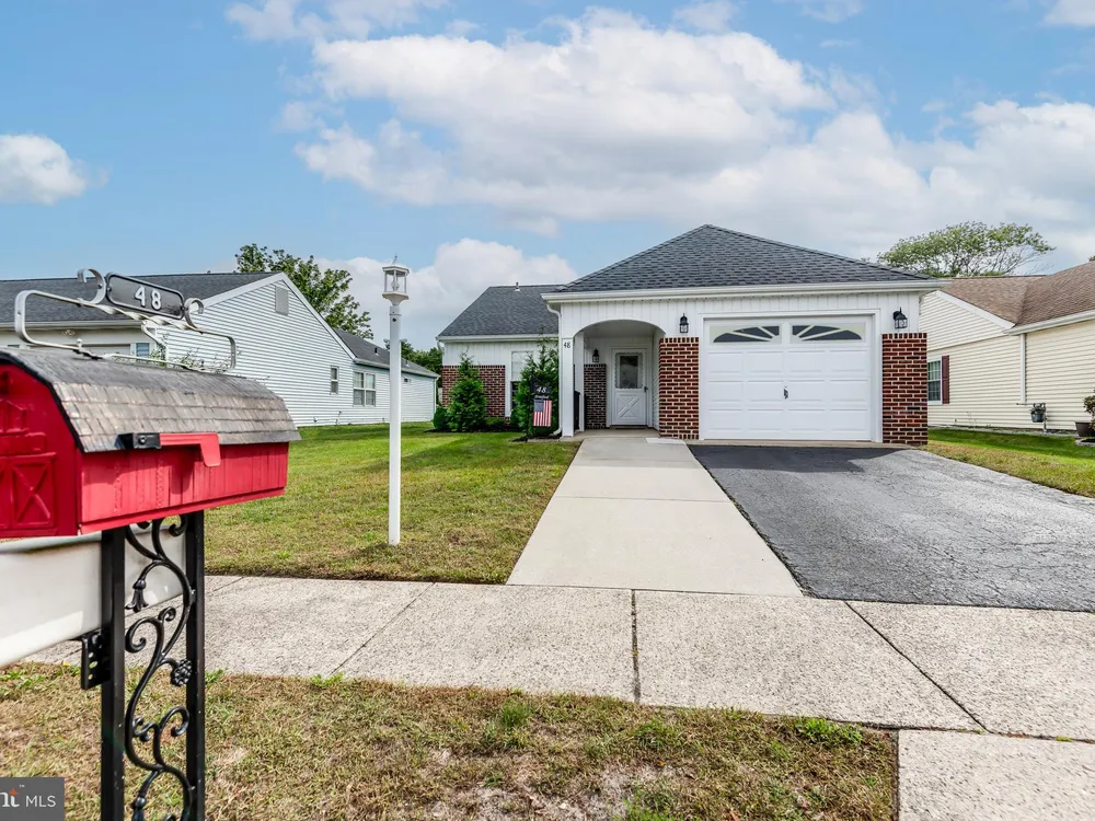 Enjoy the ease and convenience of one floor living in the splendidly updated 2 bedroom, 2 bath home located in the 55+ active adult community of Leisuretowne. This home has been converted to gas for a more desirable energy efficient and cost effective property. You'll notice the crisp clean curb appeal with the newer roof and recently painted exterior. The cozy interior features all newer laminate flooring in the main living area and natural carpeting in the bedrooms, freshly painted, an updated kitchen w/ stainless steel appliances and a quartz counter top. Both bathrooms have been tastefully renovated top to bottom with floor to ceiling tile in the shower area. For your "peace of mind" the roof, HVAC, and hot water heater were installed in 2022. All the appliances were replaced in 2021. Absolutely nothing left to do....Move-in Ready!! Don't miss your opportunity to make 48 Stratford Road your new address.