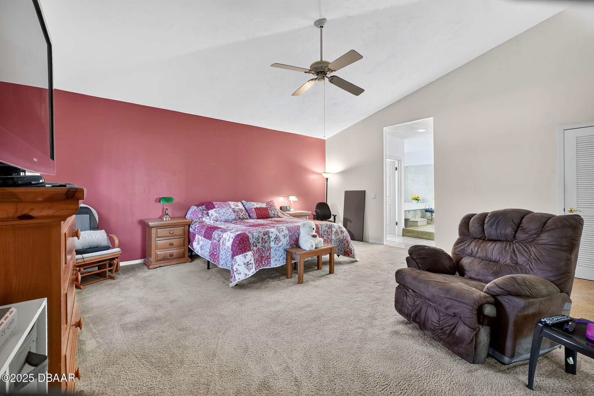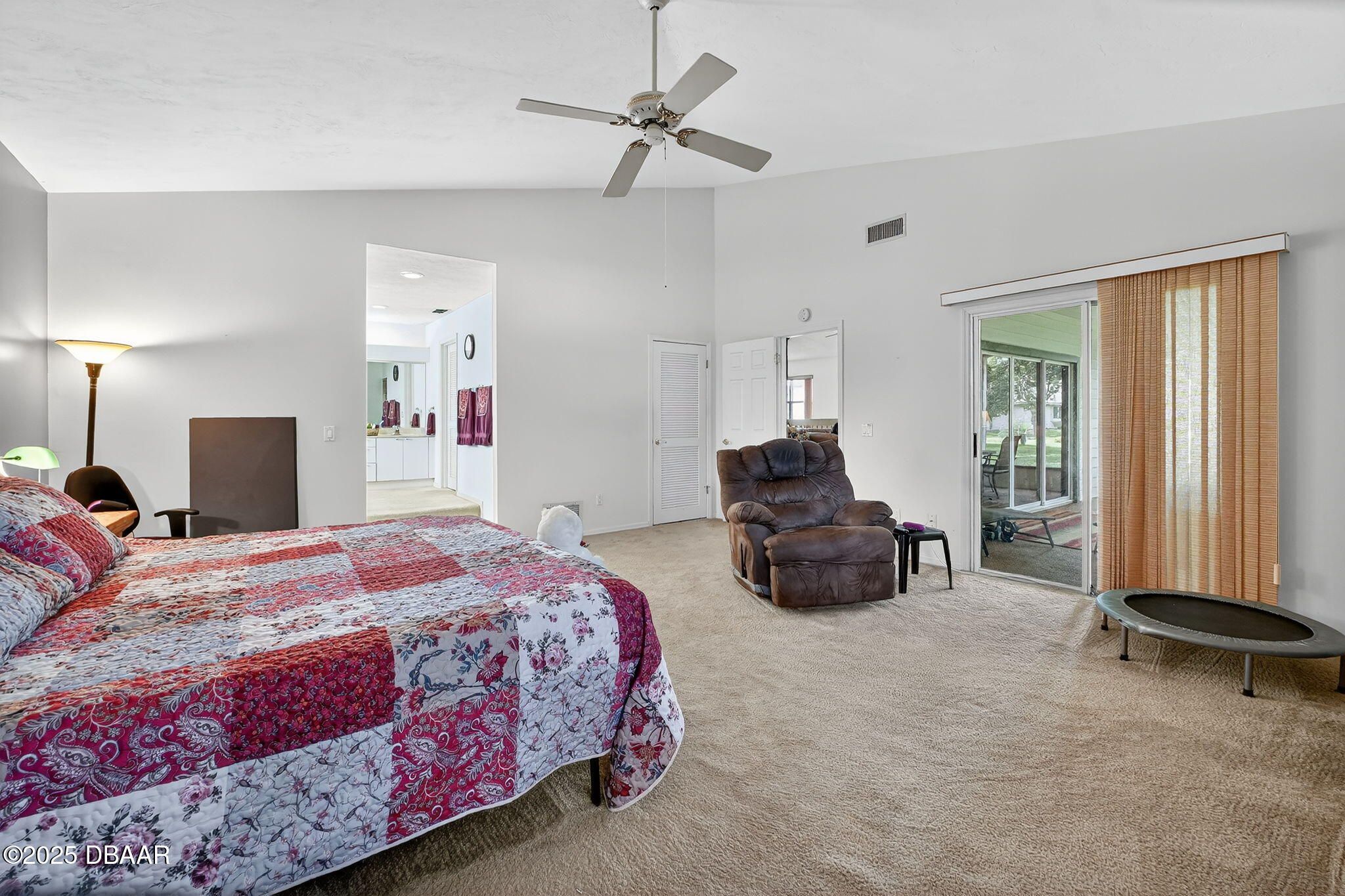 Serene setting inside beautiful Plantation Bay. This very spacious home has high vaulted ceilings, open floor plan and fantastic flexibility. Amazing GIGANTIC bedrooms with ensuite bathrooms! Primary bedroom boosts two walk-in closets, soaker tub & walk-in shower. Guests or other family members will enjoy the privacy of their over-sized room and private bathroom. From the foyer you see the large area with dining to the left and in front of you a big living space with a nice view through the lanai to the backyard. The large kitchen overlooks a flexible space that can be used in many ways. It currently serves as a music studio, but works well as a den, craft area, writing space, or whatever you desire! This home sits at the back of a small neighborhood circle on a large lot with the lanai situated to enjoy breezes and lush greenery. This home has features to keep costs down and worry to a minimum! Solar panels were added to the home two years ago. The new owner will carry on the lease to enjoy savings on their electricity! Though never utilized, the home has hurricane panels for all windows. This home is in a low risk area for floods and not in a hurricane evacuation zone. Also, Flagler County boosts some of the lowest tax rates in Florida! Location of this home could not be more ideal. Just 5 minutes inside the staffed entry gate, you will feel the stress melt away and enjoy the incredible landscaped community with naturally occurring ponds & lakes, beautiful lighted fountains and miles of sidewalks. Plus the community has a private club with 54 holes of golf and amazing amenities! Once you leave the sanctuary of the community, hop on 95, US 1 or Beach Street. Within minutes you will find Publix, other stores, restaurants, shopping, museums, the racetrack, the beach & so much more. Ormond Beach is the little town locals keep quiet about. You won't find a more affordable area that is this nice and this close to the cooling ocean breezes of the Atlantic Ocean in all of Florida!!