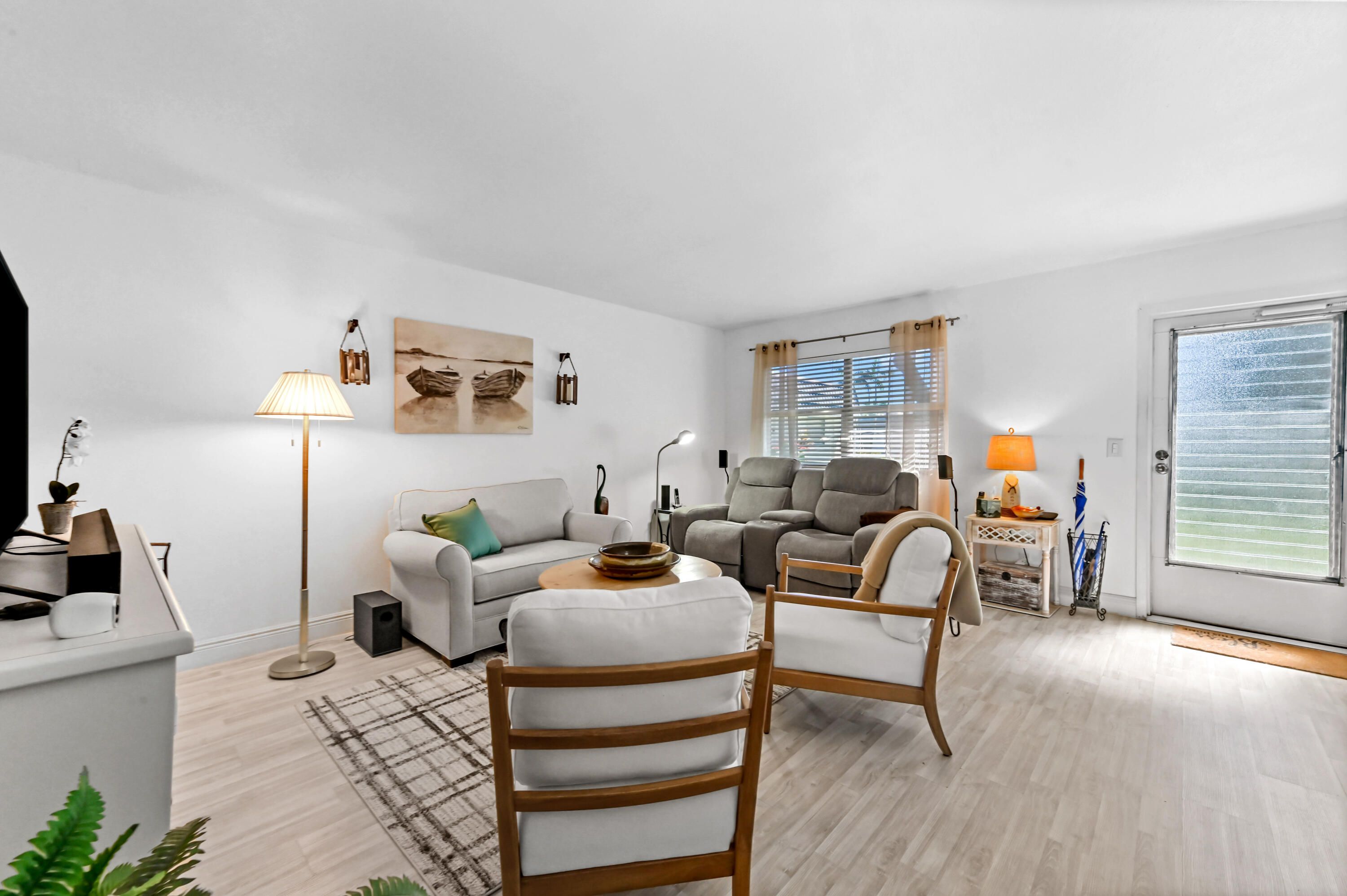 Stunning Custom Remodel! Welcome to 48 Waterford B in Delray Beach — a rarely available, corner villa that has been completely transformed with high-end finishes and custom details throughout. This designer residence showcases quality craftsmanship with luxury vinyl plank flooring, and breathtaking lake views. The gourmet kitchen boasts sleek cabinetry, quartz countertops while both bathrooms exude a spa-like elegance with modern tile work and premium fixtures. The spacious primary suite offers a serene retreat with warm natural light and refined touches. Ideally located near the entrance with easy parking, this move-in ready home is nestled within a vibrant 55+ community offering world-class amenities—golf, tennis.