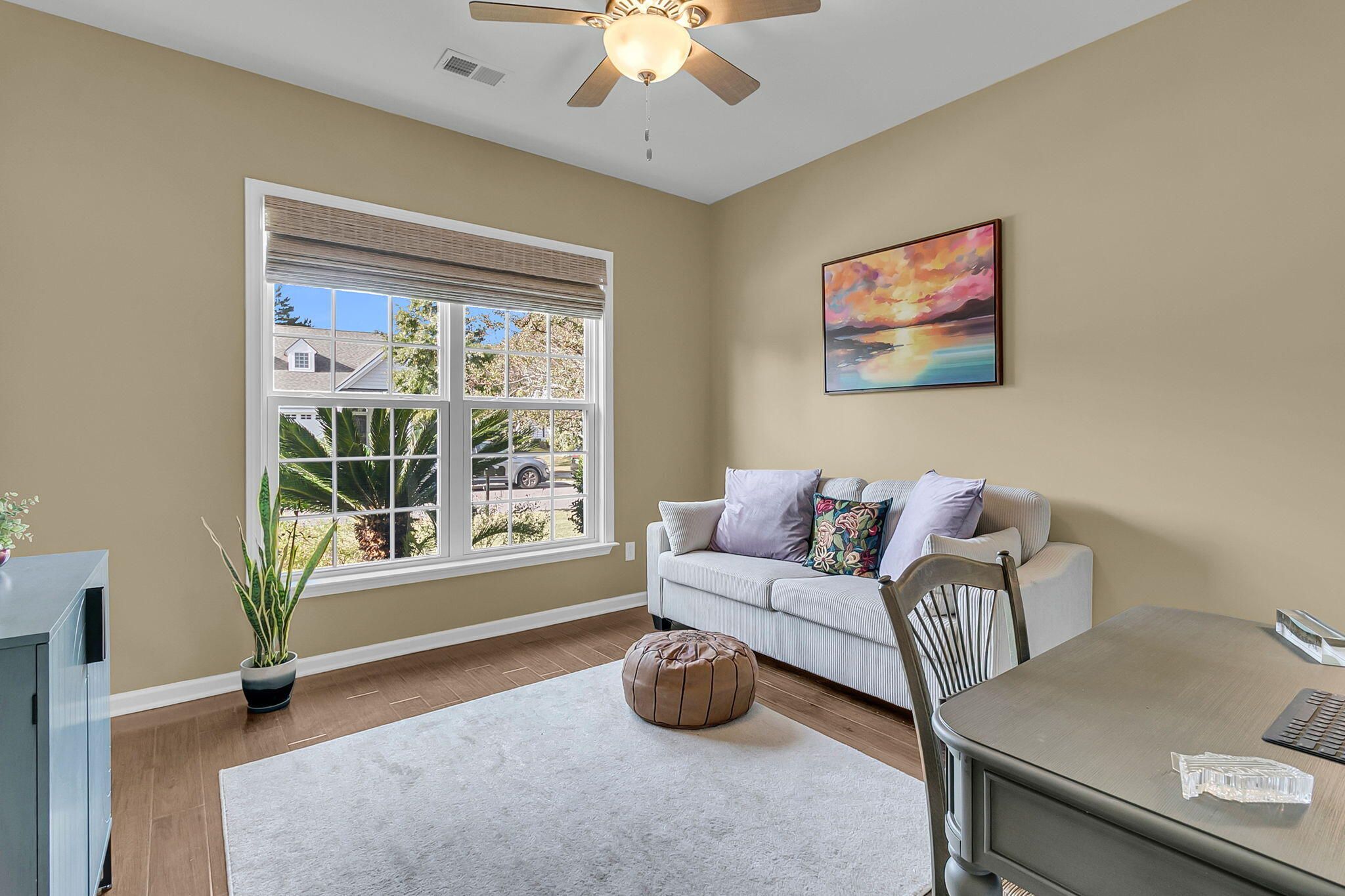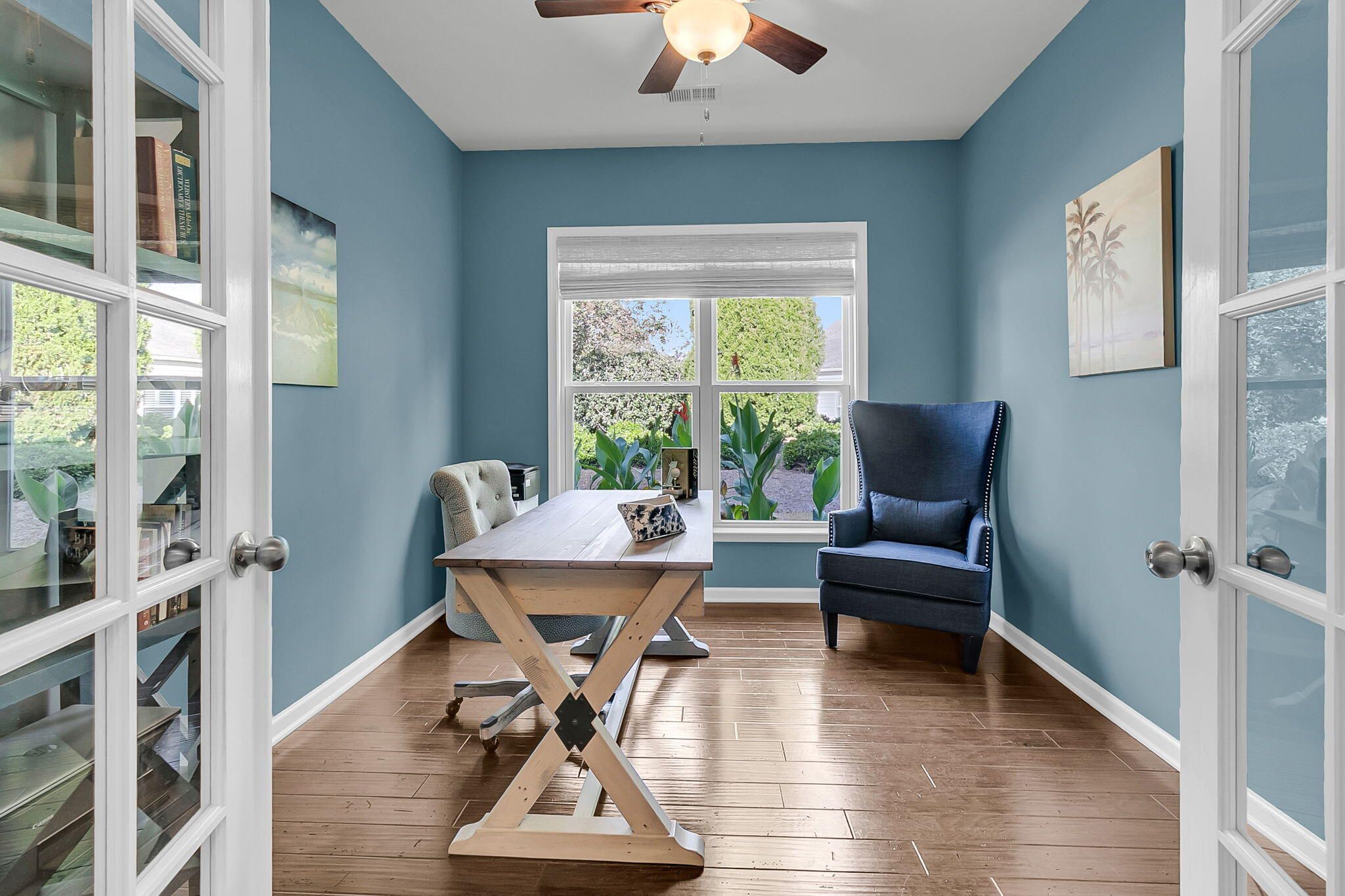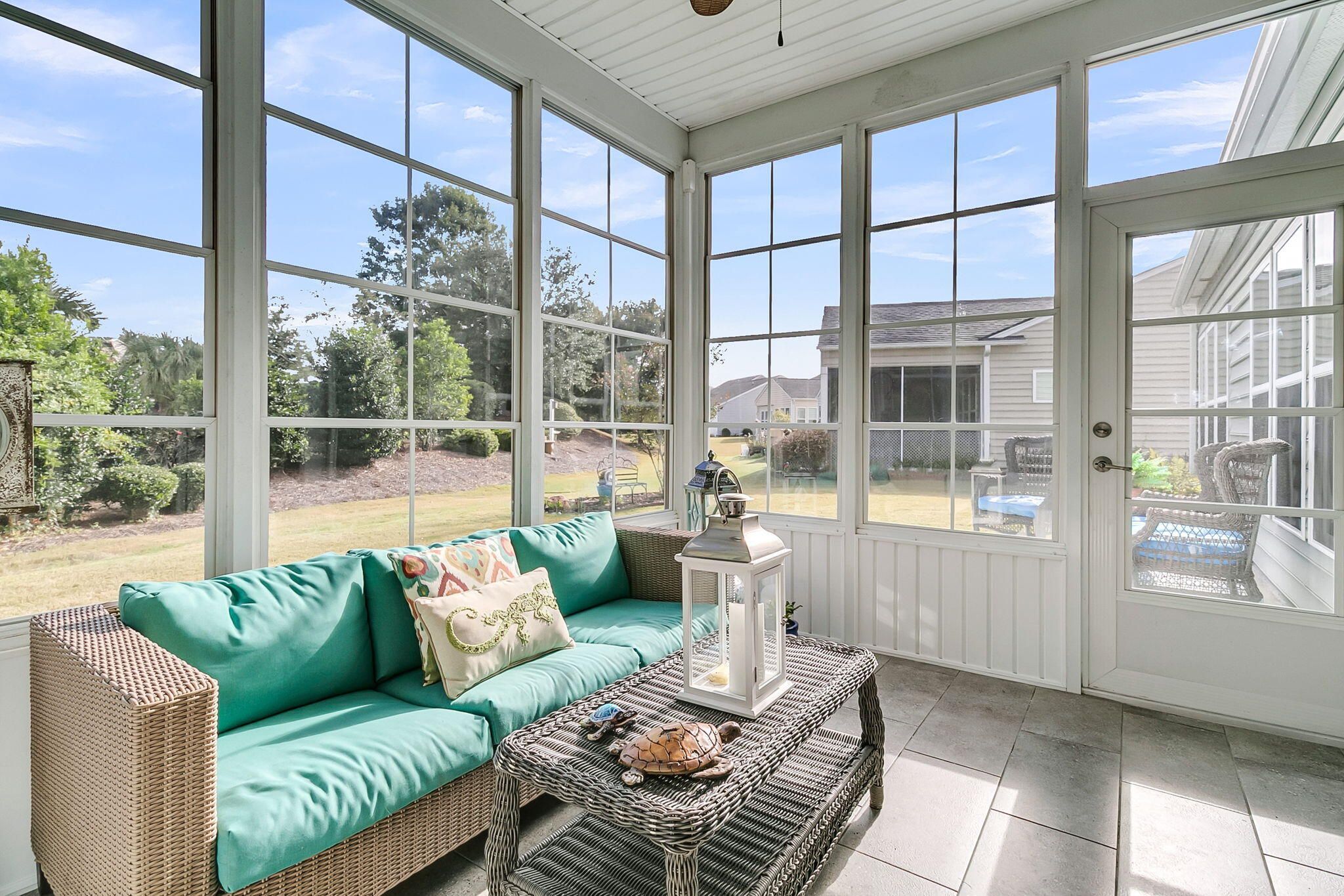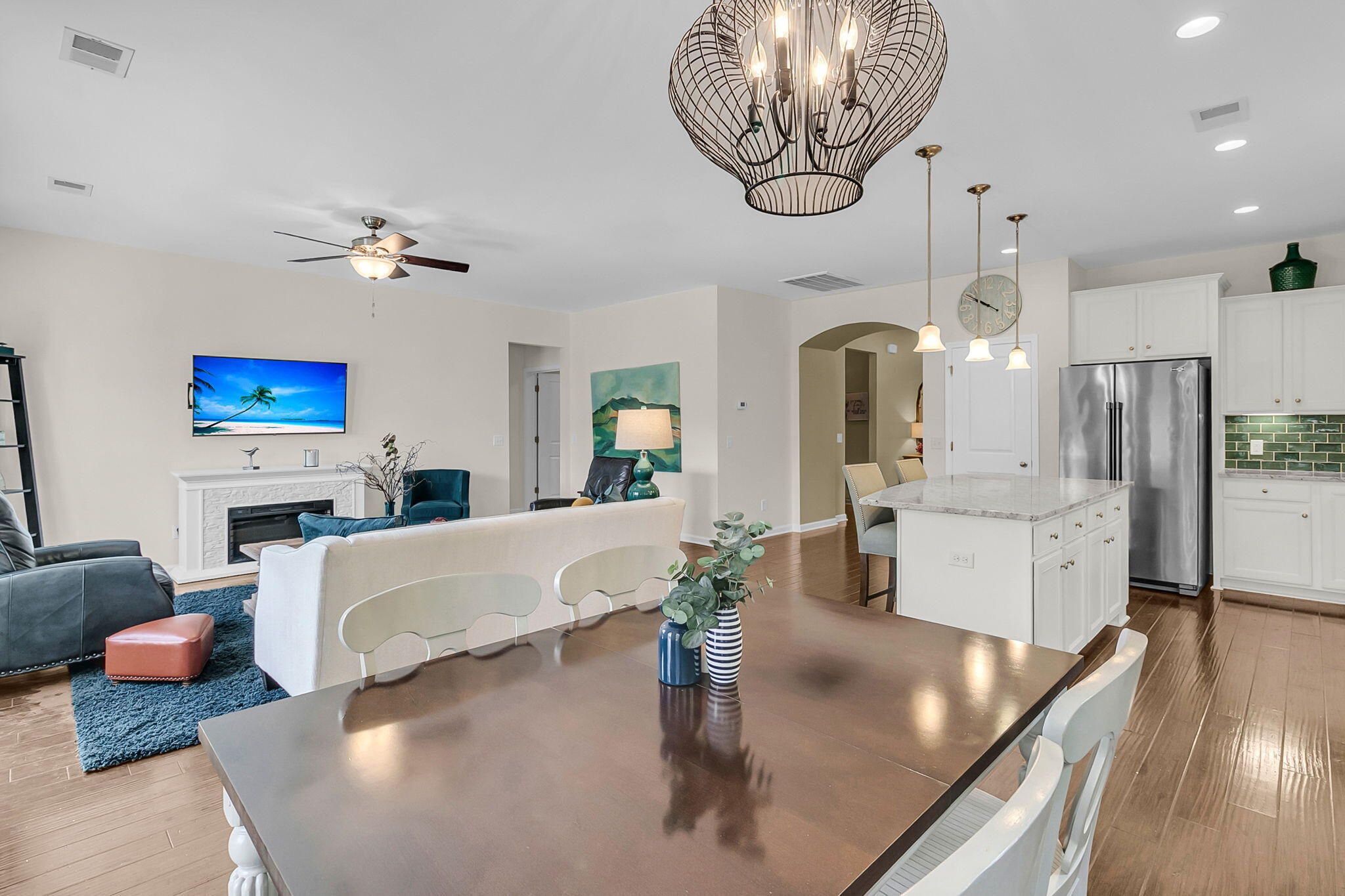 Beautiful Abbeyville home with 2 bedrooms, 2 baths, and French door office situated on a lovely private lot and offering many high-end upgrades. Just two blocks from the 20,000 sf amenities center, you'll have easy access to this award-winning community's social center. The neighborhood's mature landscaping provides a welcome difference from new construction. An inviting curb appeal with enhanced landscaping and flagstones welcomes you. Step inside to find five-inch hand scraped wood floors extending throughout all living areas and bedrooms - NO CARPET in home! The open concept floor plan is highlighted by the island kitchen with white cabinetry, granite countertops, stainless steel appliances with five-burner gas cooktop, built-in wall oven & microwave, and included refrigerator, customsubway tile backsplash, pendant & under-cabinet lighting, and adjacent breakfast nook. The spacious living area sits directly in front of the kitchen, making a great entertaining space. Step outside to find a three-season room - with tile floors and retractable vinyl windows added to the screened-in porch, this is an incredible space to enjoy year round! This room and the outdoor patio overlook your own private oasis, with trees and privacy landscaping both directly behind and to one side. Back inside, the Owner's Suite includes an ensuite bath with double sink granite vanity and built-in ladies vanity, a brand new custom walk-in shower installed in 2025 with 12" x 24" tile walls, penny-tile floors, and frameless shower door, and a spacious walk-in closet. The guest bedroom and a full bath sit down their own hallway on the opposite side of the home, providing ample privacy for guests and owners alike. A French door office is a great third space that can be used as an office, den, or third bedroom. The laundry room offers tile floors, included washer & dryer, overhead cabinetry, a built-in sink, and extra storage area. A mudroom leads to the garage, which is extended four additional feet in length and has overhead storage. Don't miss out on this incredible opportunity to own a move-in ready home in the area's premier 55+ neighborhood! The 20,000 square foot amenities center includes includes indoor and outdoor pools and hot tubs, a fitness center, ball room, activity rooms, pickle, tennis, and bocce courts, concert pavilion area, fishing pier, fully stocked ponds throughout the neighborhood, and a dog park. With a full-time lifestyle director, over 100 chartered clubs, and busy calendar of events, you'll be living your BEST retired life in Del Webb Cane Bay! Del Webb Cane Bay is privately gated and located just minutes from a Publix grocery store, medical facilities and hospital, restaurants and shops. Don't miss out on this incredible home and neighborhood opportunity!