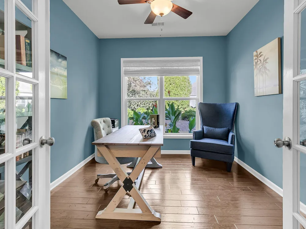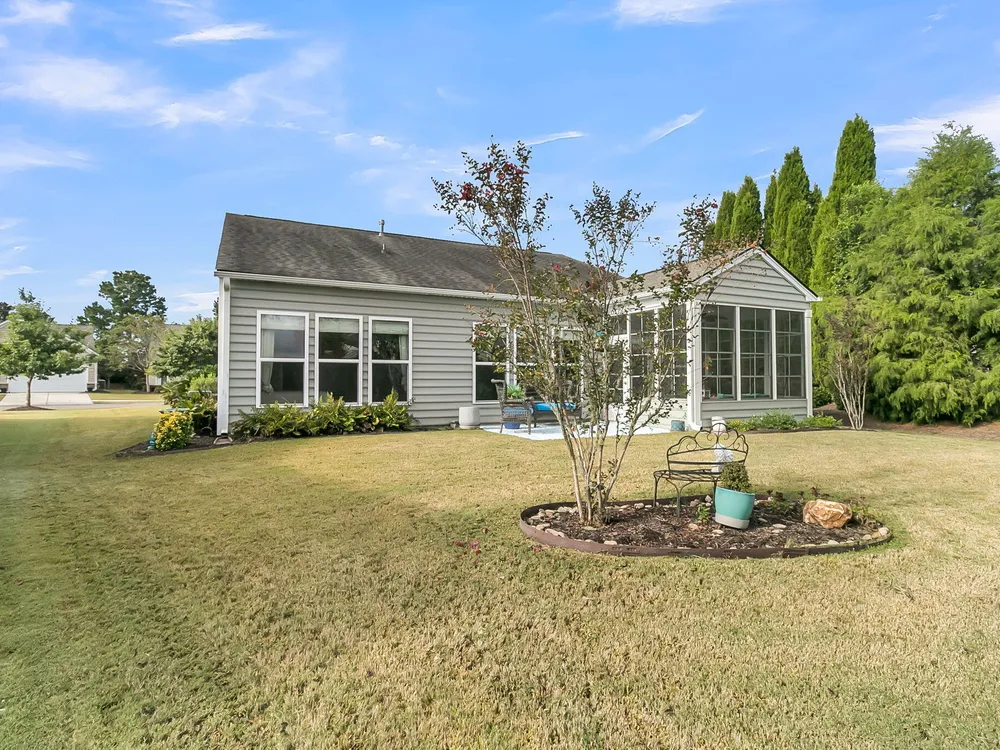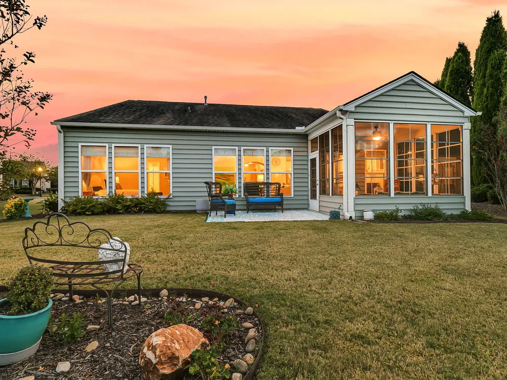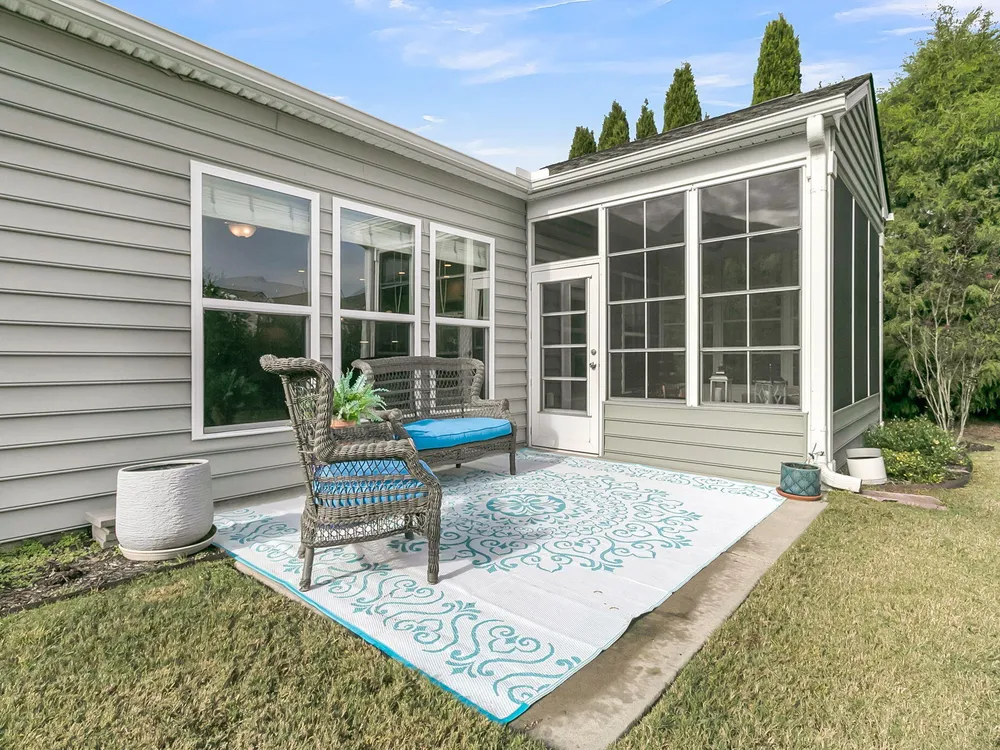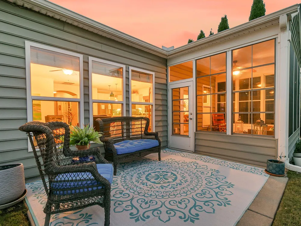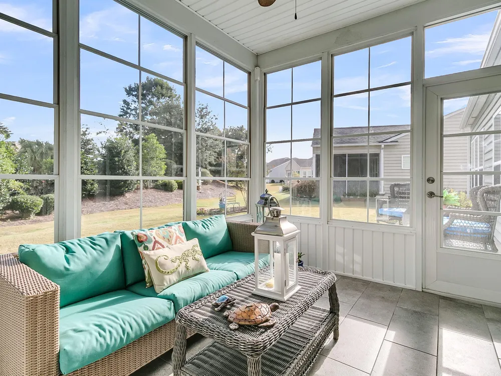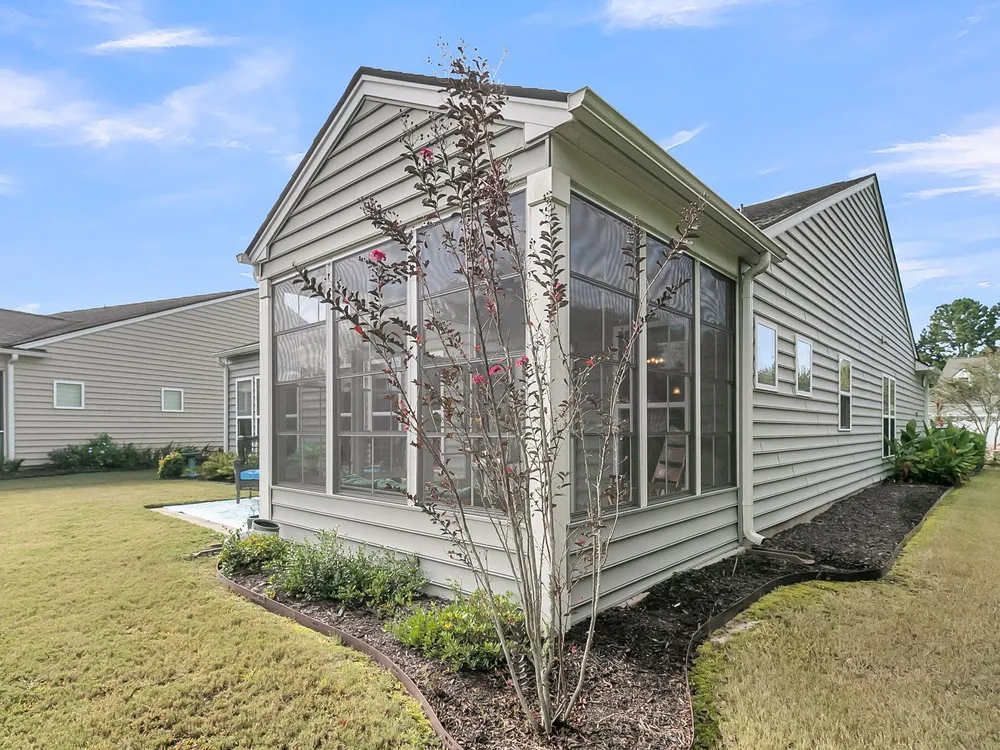 Beautiful Abbeyville home with 2 bedrooms, 2 baths, and French door office situated on a lovely private lot and offering many high-end upgrades. Just two blocks from the 20,000 sf amenities center, you'll have easy access to this award-winning community's social center. An inviting curb appeal with enhanced landscaping and flagstones welcomes you. Step inside to find five-inch hand scraped wood floors extending throughout all living areas and bedrooms - NO CARPET in home! The open concept floor plan is highlighted by the island kitchen with white cabinetry, granite countertops, stainless steel appliances with five-burner gas cooktop, built-in wall oven & microwave, and included refrigerator, custom subway tile backsplash, pendant & under-cabinet lighting, and adjacent breakfast nook. Thespacious living area sits directly in front of the kitchen, making a great entertaining space. Step outside to find a three-season room - with tile floors and retractable vinyl windows added to the screened-in porch, this is an incredible space to enjoy year round! This room and the outdoor patio overlook your own private oasis, with trees and privacy landscaping both directly behind and to one side. Back inside, the Owner's Suite includes an ensuite bath with double sink granite vanity and built-in ladies vanity, a brand new custom walk-in shower installed in 2025 with 12" x 24" tile walls, penny-tile floors, and frameless shower door, and a spacious walk-in closet. The guest bedroom and a full bath sit down their own hallway on the opposite side of the home, providing ample privacy for guests and owners alike. A French door office is a great third space that can be used as an office, den, or third bedroom. The laundry room offers tile floors, included washer & dryer, overhead cabinetry, a built-in sink, and extra storage area. A mudroom leads to the garage, which is extended four additional feet in length and has overhead storage. Don't miss out on this incredible opportunity to own a move-in ready home in the area's premier 55+ neighborhood! With a full-time lifestyle director, over 100 chartered clubs, and busy calendar of events, you'll be living your BEST retired life in Del Webb Cane Bay! Del Webb Cane Bay is privately gated and located just minutes from a Publix grocery store, medical facilities and hospital, restaurants and shops. Don't miss out on this incredible home and neighborhood opportunity!