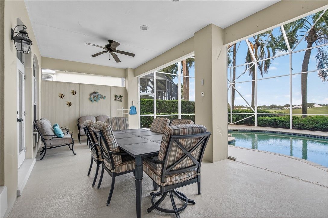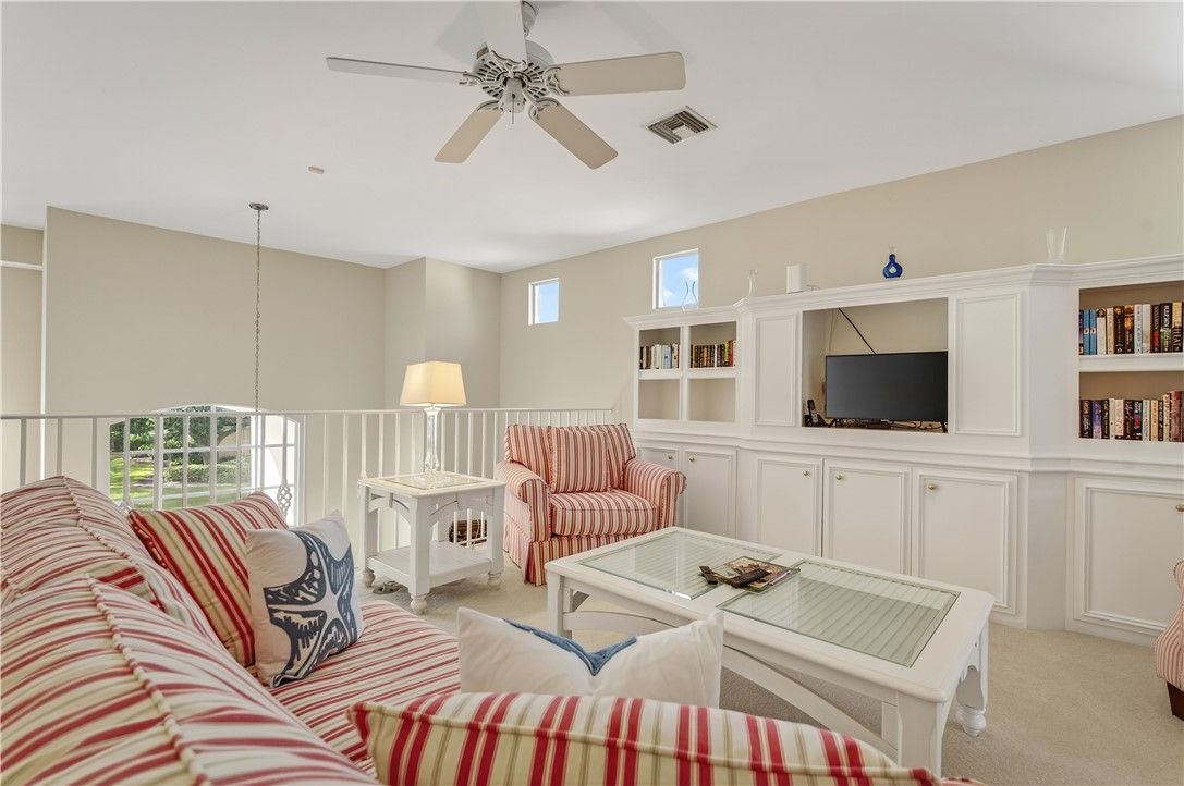 Rarely available family home in one of Grand Harbor's most sought after communities, Coventry Island. There have been many upgrades including re-piping, new roof, remodeled kitchen and bathroom and much more. The second-floor porch is enclosed and serves as an air-conditioned office/den overlooking the golf course. Grand Harbor's spectacular beach club, golf, tennis, and other sports are available with club membership.