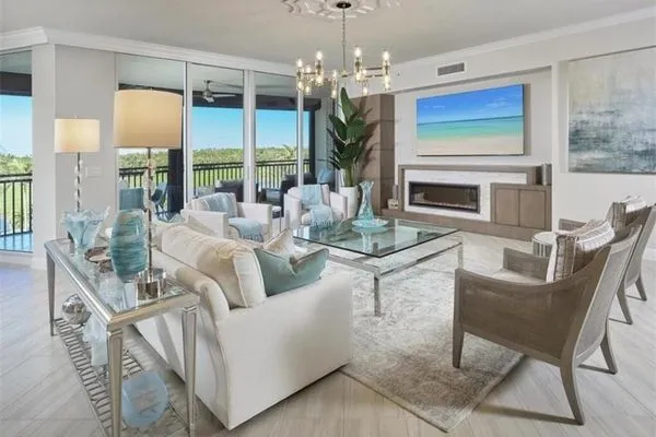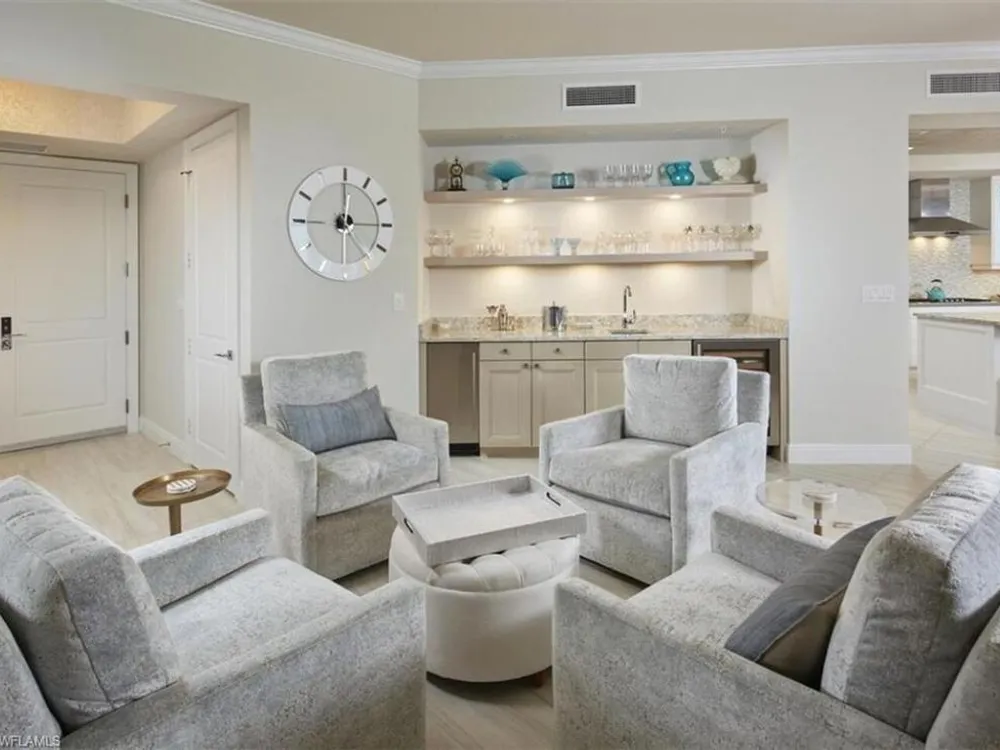 Who needs a decorator?! Beautifully furnished and ready to be enjoyed! Step into the exquisite world of Altaira, The Colony's newest high-rise gem, where opulence meets tranquility at every turn! This stunning residence is bathed in natural light from both east and west, creating a warm and inviting atmosphere that feels like home the moment you step inside. With its light and lovely color palette and an array of custom upgrades—including a sophisticated wet bar and a breathtaking primary suite—this home is not just ready to move into; it’s ready to embrace you in luxury! Imagine the convenience of a private elevator entry, allowing you to ascend to your personal oasis with ease. As you unwind, let the refreshing bay breezes and spectacular sunsets wash over you, painting your evenings in vibrant hues. Don’t miss the chance to experience this unique lifestyle at a superb value; Altaira is calling your name! Automatic storm shutters and 2 spaces in the enclosed garage. Altaira amenities include: 24-hour front desk service, lavish infinity edge pool, pavilion and cabanas, 3 guest suites, impressive fitness facility, 3,000 sq. ft. social room, designated dog walk area, fire pit and roof top observatory. A wide array of Colony at Pelican Landing amenities include private waterfront dining at The Bay Club, a 34-acre island beach park with boat shuttle and canoe/kayak parks, pickle ball, a huge tennis program, sailing, bocce and many social activities to boot! Elective golf memberships. Located within minutes of shopping, restaurants, sports arenas, performing art centers, world-renowned beaches, and SWFL international airport.