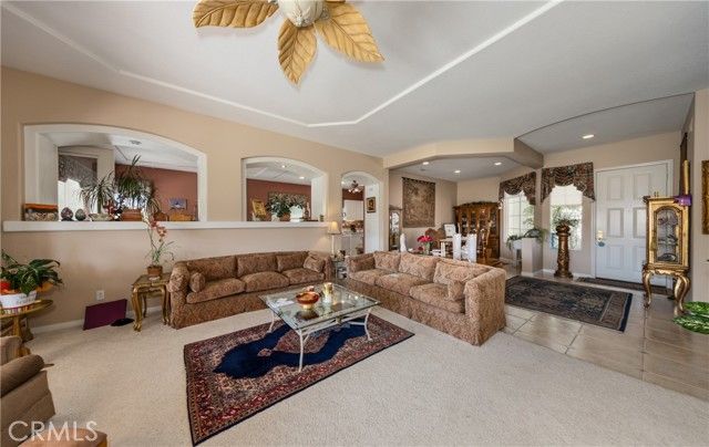 Step into one of the most prestigious and sought-after single-story models in Sun Lakes Country Club—the spacious Wisteria floorplan. This rare home has been thoughtfully enhanced with structural additions to the laundry room and the primary closet, making it truly one of a kind. Lovingly cared for by its original owner since 1998, the home radiates pride of ownership. The open and inviting layout welcomes you with a formal living and dining room off the main entrance, showcasing large windows with stunning mountain views. The floorplan offers 2 spacious bedrooms plus a den, a separate family room with a cozy fireplace, and multiple exits leading to the backyard. The primary suite is generously sized, featuring a large bedroom retreat, an extended walk-in closet, and a spa-like bathroom with both a shower and a relaxing soaker tub. The backyard is an entertainer’s dream, with a large covered patio and panoramic views where you can enjoy breathtaking sunrises and sunsets over the mountains. The front porch and courtyard add even more charm and curb appeal. Inside, you’ll find a clean and bright kitchen with white cabinets, large tile flooring, upgraded carpet throughout, and new windows that enhance natural light and energy efficiency. This lovely home is located in the 55+ Sun Lakes Country Club, a premier guard-gated community offering an unmatched active lifestyle. Residents enjoy two golf courses, three pools (including one indoors), tennis courts, a clubhouse with a private restaurant and lounge, fully equipped exercise facilities, and a variety of clubs and organizations to complete your resort-style living experience.
