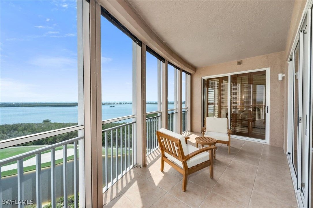 Turnkey-Furnished Modern Zen Retreat with Gulf & Bay Views. Welcome to Estancia 1201 in Bonita Bay—a serene 3-bedroom, 3-bath Zen-inspired retreat designed to help you reset, reconnect, and embrace nature’s rhythm. This beautifully furnished 12th-floor residence combines minimalist design with rich textures and natural materials for a warm, sophisticated feel. Enjoy breathtaking views of Estero Bay and the Gulf of Mexico through expansive floor-to-ceiling windows. The open-concept layout features Brazilian walnut flooring, bespoke millwork, sleek lighting, and a soothing neutral palette. The modern kitchen is both functional and inviting, with high-end appliances, wood cabinetry, and a sunlit breakfast nook. The primary suite is a spa-like haven with ambient lighting, a soaking tub, and dual closets. A private second en-suite bedroom with plantation shutters and a reading chaise offers comfort for guests, while the third bedroom doubles as a media room with a built-in Murphy bed. Unwind on the screened lanai, perfect for sunset views or outdoor entertaining. Residents enjoy luxury amenities: a resort-style pool and spa, saunas, a fitness center, guest suites, and 24-hour security. Located in Bonita Bay, this home includes access to 12+ miles of walking trails, a private beach park, marina, and optional club membership with championship golf, tennis, dining, and wellness. Modern luxury meets nature’s embrace—your retreat awaits.
