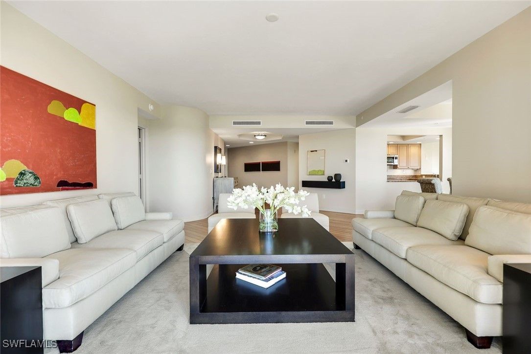 Experience elevated luxury living from this beautifully maintained 12th-floor residence in Estancia at Bonita Bay. With floor-to-ceiling windows framing sweeping views of the golf course, Estero Bay, the Gulf, and the lush natural preserve, this turnkey THREE-bedroom, THREE-bath home offers an inviting, light-filled retreat in one of Southwest Florida’s most coveted communities. The spacious open layout features Ipe wood flooring, an elegant living and dining area, and seamless access to a generous terrace—perfect for enjoying soft breezes and vibrant sunsets. The well-appointed kitchen includes wood cabinetry, granite countertops, a new microwave and oven, and an effortless flow to both the breakfast nook and the main dining room. The serene primary suite features direct lanai access, electric shades, plantation shutters, two custom walk-in closets, and a spa-like bath with dual sinks, a jetted soaking tub, and walk-in shower. A versatile guest bedroom/media room offers a mini fridge, sink, Murphy bed, and custom built-ins, while the second guest suite enjoys its own full bath, walk-in closet, and beautiful natural light. Additional features include electric storm shutters and Estancia’s planned exterior painting (December 2025) for added peace of mind. Residents of Estancia enjoy resort-style amenities, including a sparkling pool and spa, fitness center, guest suites, and club room. Bonita Bay enhances the lifestyle with a private beach park, miles of walking and biking trails, pickleball, tennis, kayaking, canoeing, multiple community parks, and a full-service marina and waterfront restaurant. Optional memberships offer access to five championship golf courses, fine dining, and an expansive sports complex. Perfect as a seasonal escape or a year-round home, this exceptional residence captures the very best of luxury living in Southwest Florida.