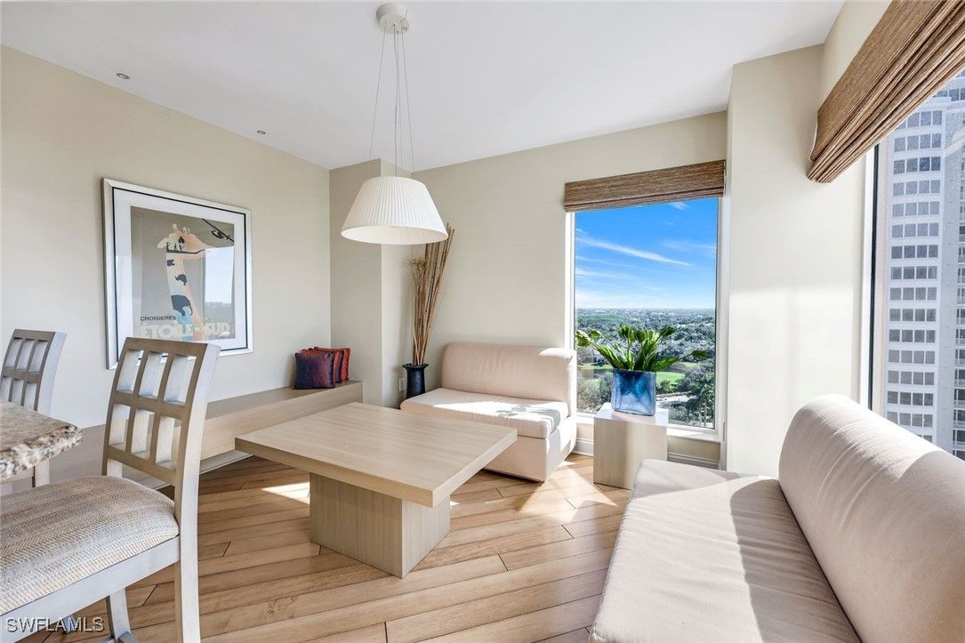 TURNKEY WINTER ESCAPE IN BONITA BAY. Experience elevated luxury living from this beautifully maintained 12th-floor END UNIT residence in Estancia at Bonita Bay. Available for immediate occupancy. With floor-to-ceiling windows framing sweeping views of the golf course, Estero Bay, the Gulf, and the lush natural preserve, this THREE-bedroom, THREE-bath home offers an inviting, light-filled retreat in one of Southwest Florida’s most coveted communities. The spacious open layout features Ipe wood flooring, an elegant living and dining area, and seamless access to a generous terrace—perfect for enjoying soft breezes and vibrant sunsets. The well-appointed kitchen includes wood cabinetry, granite countertops, a new microwave and oven, and an effortless flow to both the breakfast nook and the main dining room. The serene primary suite features direct lanai access, electric shades, plantation shutters, two custom walk-in closets, and a spa-like bath with dual sinks, a jetted soaking tub, and walk-in shower. A versatile guest bedroom/media room offers a mini fridge, sink, Murphy bed, and custom built-ins, while the second guest suite enjoys its own full bath, walk-in closet, and beautiful natural light. Additional features include electric storm shutters and Estancia’s planned exterior painting (December 2025) for added peace of mind. Residents of Estancia enjoy resort-style amenities, including a sparkling pool and spa, fitness center, guest suites, and club room. Bonita Bay enhances the lifestyle with a private beach park, miles of walking and biking trails, pickleball, tennis, kayaking, canoeing, multiple community parks, and a full-service marina and waterfront restaurant. Optional memberships offer access to five championship golf courses, fine dining, and an expansive sports complex. Perfect as a seasonal escape or a year-round home, this exceptional residence captures the very best of luxury living in Southwest Florida.
