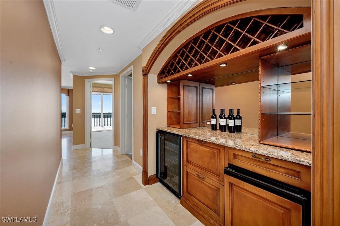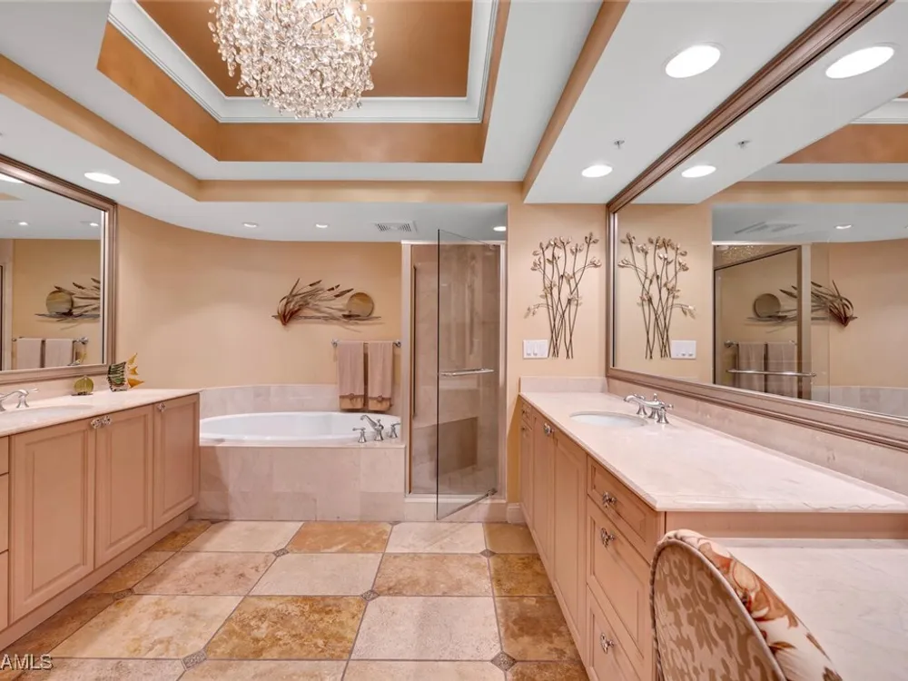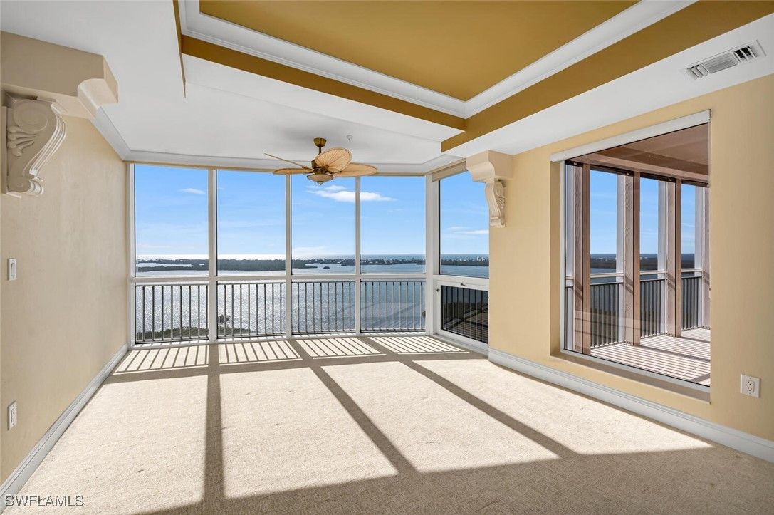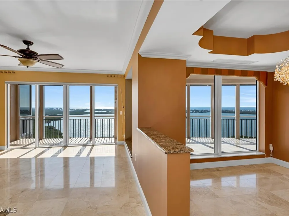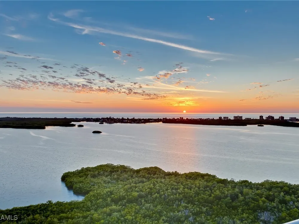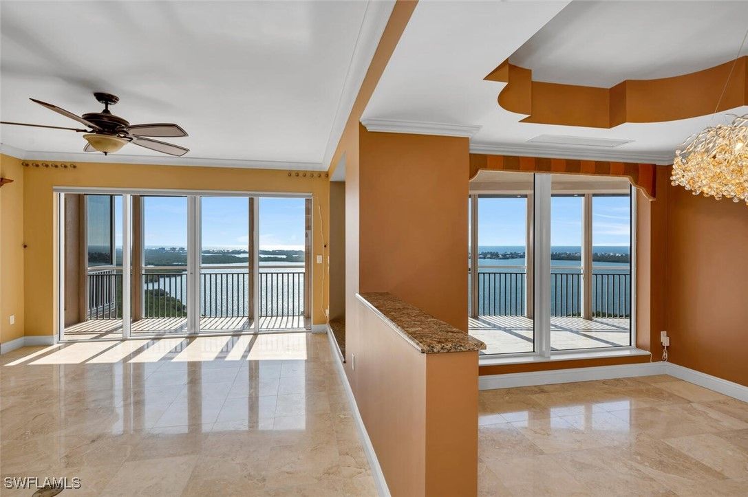 Step into luxury with one of the largest typical floor plans available in the prestigious Estancia high rise. This spacious residence on the 20th floor offers breathtaking, uninterrupted views of the Gulf of Mexico and the Bonita Bay golf courses. With its east/west orientation, you’ll enjoy spectacular sunrises and sunsets right from your home. This elegant 3 Bed/3 Bath residence boasts expansive terraces and well-designed features that embody the casual yet sophisticated lifestyle of Southwest Florida. For wine enthusiasts, there's a custom-designed wine storage and serving area. Aspiring chefs will love the spacious, centrally located kitchen with stunning views in both directions. Estancia provides unparalleled amenities including a live-in building manager, two guest suites, a fitness center, a massage room, club and card rooms, a large pool and spa, and two gas grills. Bonita Bay extends your luxury living with five golf courses, an 18-court tennis center, an 18,000 sq. ft. fitness center, an 8,000 sq. ft. lifestyle spa & salon, a full-service marina, a Gulf front beach park, six restaurants, 10 pickleball courts, croquet, bocce ball, canoeing, a life enrichment center, three parks, and more.