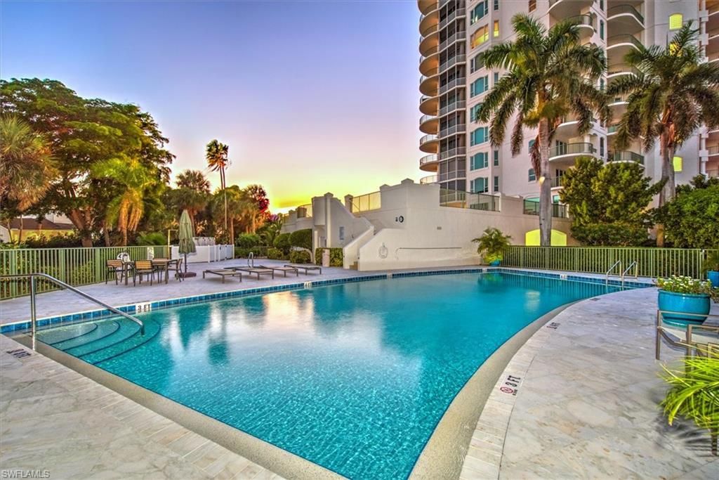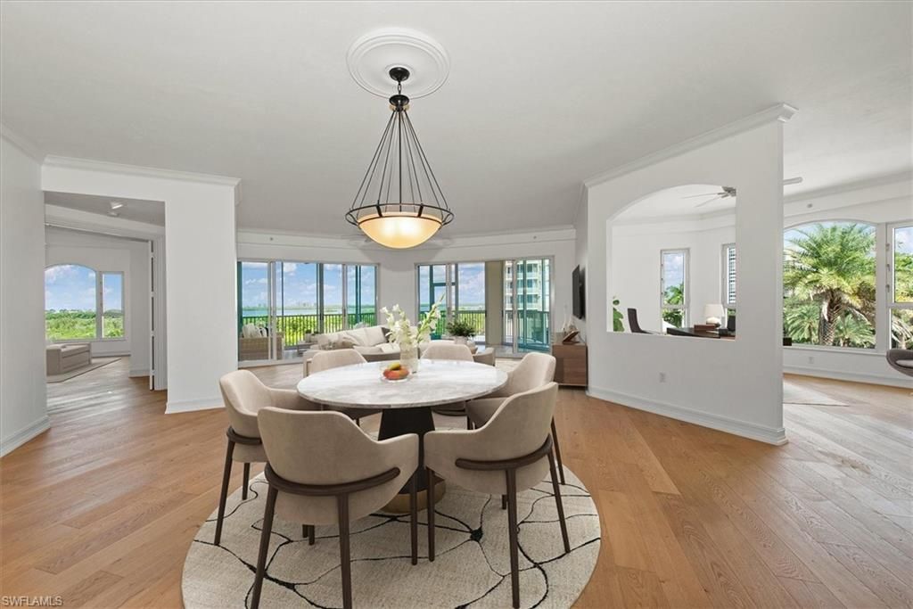 Experience resort-style living in Bonita Bay from this elegant 4th-floor corner residence, offering panoramic Western views and spectacular sunsets over Estero Bay. This expansive 3-bedroom+ versatile study, 3-bathroom home is designed with an open floor plan, enclosed lanai providing extra square footage and three private balconies that seamlessly blend indoor and outdoor living.The grand living area features wide-plank wood flooring, soaring ceilings, and walls of glass sliders that fill the space with natural light and frame serene vistas of lush greenery and sparkling water. A spacious kitchen serves as the heart of the home, appointed with granite countertops, center island, brand-new stainless-steel appliances, and abundant cabinetry, making it ideal for both casual dining and entertaining.Retreat to the luxurious primary suite, large windows showcase breathtaking views. The spa-inspired bathroom offers dual vanities, a soaking tub, and separate walk-in shower for ultimate relaxation. Additional en-suite bedrooms provide comfort and privacy for family or guests. One of the guest bedrooms is equipped with a built-in Murphy bed, allowing the space to effortlessly transition between a comfortable sleeping area and a versatile home office or flex roomAdditional highlights include a private under-building 2-car garage with extra storage, freshly painted interiors, and a neutral palette ready for customization.The lifestyle at Bonita Bay is truly unrivaled. Residents enjoy exclusive amenities including a resort-style pool, fitness center, tennis and pickleball courts, a full-service marina, and over 12 miles of scenic walking and biking trails. A private beach shuttle whisks you away to Bonita Bay’s own beach park, while dining at the popular Backwater Jack’s and access to world-class golf further elevate the experience.This is a rare opportunity to own a residence in one of Southwest Florida’s most sought-after communities—perfectly blending elegance, convenience, and a coveted coastal lifestyle.