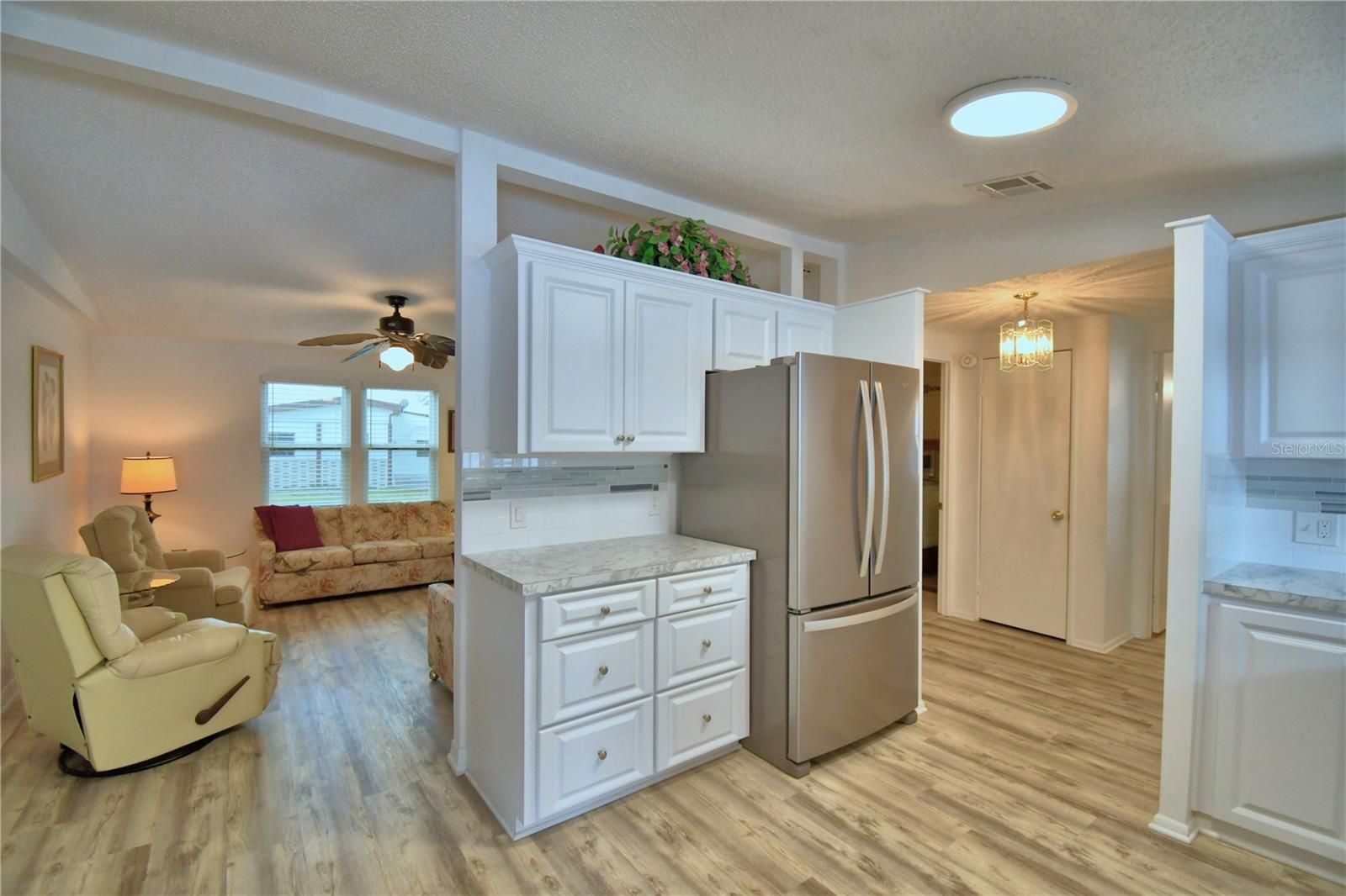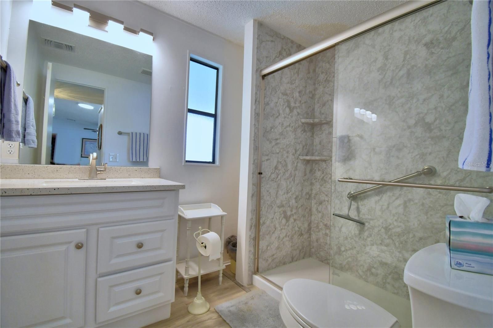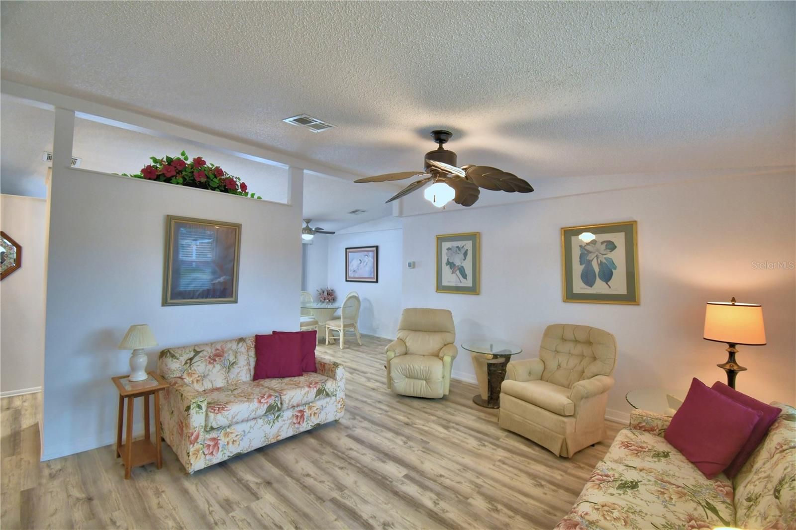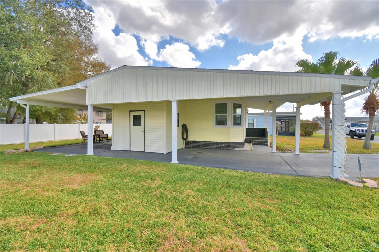 Immaculate two-bedroom, two-bath manufactured home located in a 55+ gated community offering an exceptional lifestyle and resort-style amenities. This home has been exceptionally well maintained and thoughtfully updated. The newly updated kitchen features modern appliances, an eat-in dining area, and two pantries providing excellent storage. One bathroom has been beautifully remodeled with a large walk-in shower, while the spacious primary suite includes an en suite bath, walk-in shower, and generous vanity space. The oversized second bedroom includes a walk-in closet, making it ideal for guests, an office, or hobby room. The open-concept living area is filled with abundant natural light, enhanced by nine brand-new windows along the front and south side of the home. Additional features include indoor washer and dryer, a huge sunroom/lanai, and a covered rear patio perfect for relaxing or entertaining. Carport roof wraps around the home keeping you under roof at you large, connected storage shed and all that extra carport gives plenty of space to park your golf cart. Major updates include a new roof (2021), updated sprinkler system, and new ductwork and insulation beneath the home. Residents enjoy access to outstanding community amenities, including an Olympic-size swimming pool, saunas, hot tub, shuffleboard courts, and more—all within a secure, gated 55+ community. This move-in-ready home offers comfort, quality, for a low maintenance an active Florida lifestyle! Low HOA fee includes lawn care, Internet, and cable!!