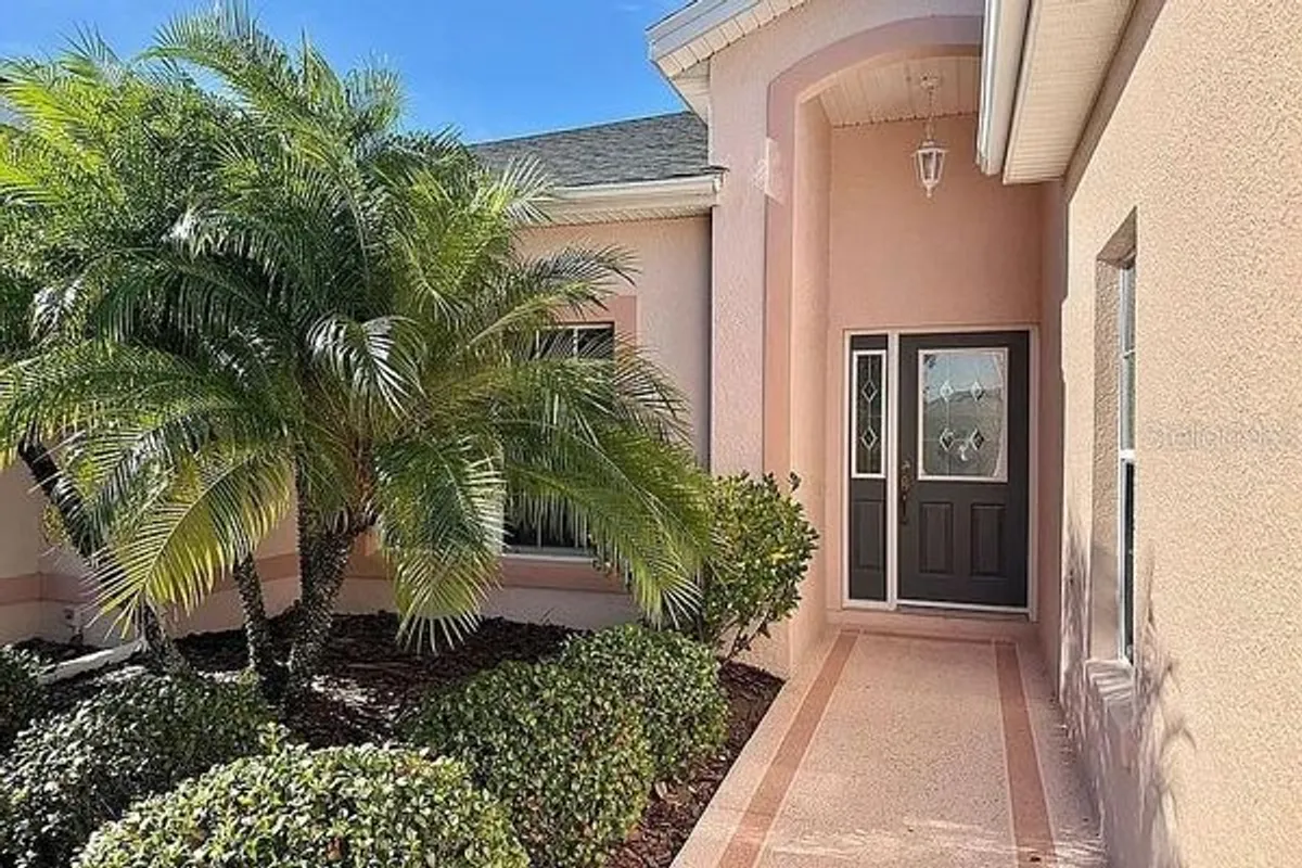 This beautiful 3BR,2B plus Air Conditioned Florida room has a BRAND NEW PROFESSIONALLY DESIGNED KITCHEN. The NEW ROOF, AC and HOT WATER TANK were just installed in JULY 2025. It has great curb appeal featuring xeriscape landscaping around the entire home. When you enter through the covered front porch and leaded glass door with matching side lite you will be delighted with spacious view of this open floor plan enhanced by the high ceilings and laminate flooring. The formal dining room and living room flow together and the oversized sliding glass doors with glass panels on each side extend your view to the air conditioned Florida Room and even beyond to the unique large circular patio. This entire area provides luxurious living for quiet private times as well as opportunities for entertaining. There is a sliding glass door that allows you to include the lovely eating area off the kitchen which has bay windows. You MUST SEE, the beautiful NEW KITCHEN with all new cabinets and quartz countertops, a pantry and lots of workspace. The large master suite has Jack and Jill walk-in closets. The master bath has Jack and Jill vanities, a linen closet, garden tub and separate shower. The split floor plan of this home provides privacy for both you and your guests. The front guest bedroom has double French doors. The current owner has decorated it as a study/den/music room. The 3rd bedroom has sliding glass doors to the FL room. The guest bath has been completely updated and has a shower/tub combination. The two guest bedrooms could be combined to create a SECOND SUITE. The garage has pulldown stairs to the attic. New Paint throughout, including ceilings and garage, new lighting, ductwork and dryer vent recently professionally cleaned makes it MOVE IN READY and perfect for you to start the life you deserve in the Florida sunshine at The Plantation a 55+ community with two 18 hole golf courses, a driving range, 3 activity centers, 3 heated pools with spas, men's and women's softball, tennis and pickle ball courts, horseshoes and many more amenities and special interest groups including art and crafts. DON’T MISS THIS OUSTANDING OPPORTUNITY!