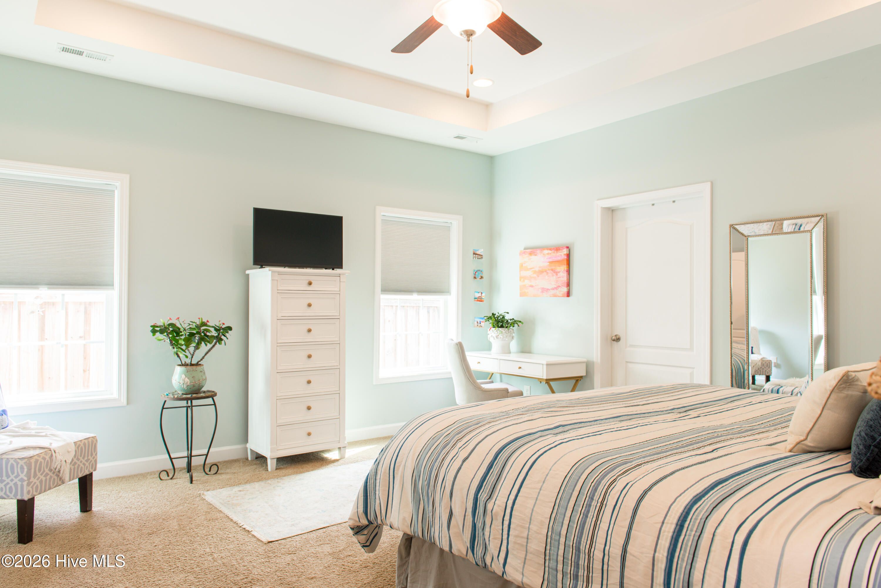 - Walk-In Closet(s), Tray Ceiling(s), High Ceilings, Entrance Foyer, Kitchen Island, Ceiling Fan(s), Pantry, Walk-In Shower, Blinds
