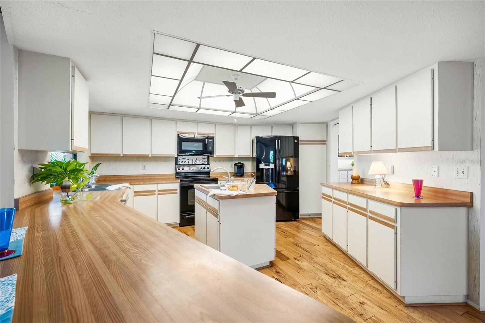 - Built-in Features, Cathedral Ceiling(s), Ceiling Fan(s), Eat-in Kitchen, Kitchen/Family Room Combo, Split Bedrooms, Thermostat, Walk-In Closet(s), Window Treatments