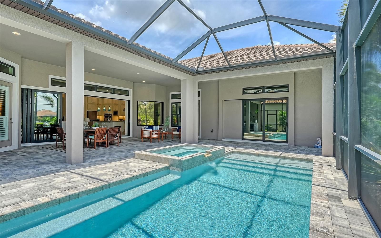 Esplanade Golf Home with Bundled Country Club Membership + Luxury Upgrades! Situated in Lakewood Ranch’s sought-after Esplanade Golf & Country Club, this standout residence includes a bundled Golf & Country Club membership—a rare and highly sought-after inclusion in Lakewood Ranch’s premier resort-style community, Esplanade Golf & Country Club. Not all homes in Esplanade offer this benefit, which grants exclusive access to the private championship golf course, tennis and pickleball courts, resort pool, full-service spa, fitness center, on-site dining, and year-round social lifestyle programming. Set on an oversized 0.279-acre lot with southwest front exposure, this 2019-built home offers 3,662 square feet of elevated living space with high ceilings, an open-concept layout, and private views along the 8th hole—without being directly on the tee box. Enjoy a rare combination of privacy, golf course living, and resort access all in one. Inside, the chef’s kitchen impresses with stainless steel appliances, double-stacked solid-wood cabinetry, granite countertops, a walk-in pantry, and a large eat-in island with storage on both sides. The light-filled great room flows effortlessly to a covered lanai, where a gas-heated pool and spa (16x10) invite relaxation. The expansive outdoor living space features a built-in grill and beverage fridge—the perfect stage for alfresco dining and memorable celebrations. The spacious primary suite features clerestory windows, direct lanai access, two custom walk-in closets, and a spa-style bath with jetted tub and walk-in shower. Two additional bedrooms, a den, a bonus room, and 3.5 baths offer flexibility for guests, hobbies, or working from home. This is one of the most extensively upgraded homes currently on the market in Esplanade. Premium enhancements include a whole-house generator, hurricane impact windows, a tankless water heater, and a climate-controlled 3-car garage with a split A/C system. Located in a gated section of the award-winning Lakewood Ranch community—ranked the #1 best-selling multi-generational master-planned community in the U.S. for six consecutive years—this home offers proximity to scenic nature trails, Main Street and Waterside Place, where residents enjoy a vibrant mix of boutique shops, local restaurants, farmers markets, and community events. All just a short drive from Sarasota’s world-famous beaches and cultural attractions.