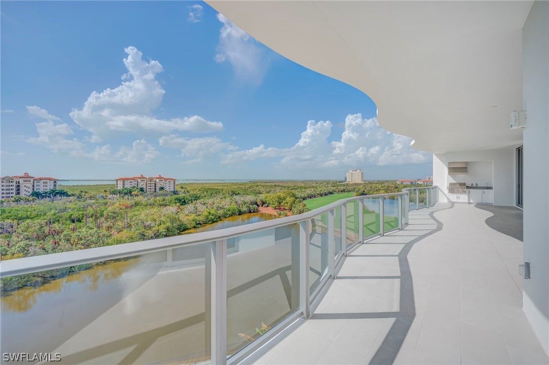 Luxury new construction high-rise just opened in The Colony Golf & Bay Club, ideally located near the Hyatt Regency Coconut Point and Coconut Point Mall. This brand-new, never-lived-in residence is located on the 7th floor of Infinity I and features a spacious 3-bedroom plus den floor plan with 3,075 square feet under air, designed to maximize natural light and seamless indoor-outdoor living. Floor-to-ceiling glass fills the residence with sunlight while showcasing sweeping views toward the Gulf and surrounding preserve areas, creating beautiful sunset backdrops throughout the home. Expansive terraces extend the living space outdoors and include an outdoor kitchen with a gas grill, ideal for entertaining, sunset dining, or relaxing while overlooking the amenity deck. Developed by the renowned Ronto Group, Infinity I offers elevated luxury living with gated entry, full-service front desk reception, private elevator access, air-conditioned storage, and a private gated two-car garage. Resort-style amenities include a rooftop sunset terrace with grilling stations, beach-entry resort pool, lap pool with two dedicated lanes, hot and cold plunge pools, on-site café with food and bar service, pickleball courts, par-3 putting course, fire pit gathering areas, day cabanas, bocce lawns, yoga lawn, state-of-the-art fitness center, private movie theater, game room, social and entertainment spaces, dog park, and guest suites. Residents enjoy the exceptional Colony lifestyle with private-island beach park access, a kayak and canoe launch along Estero Bay, scenic walking and biking paths, and optional membership opportunities at The Colony Golf Club, featuring championship golf and luxury clubhouse amenities. Ideally located just minutes from Coconut Point shopping and dining, the Hyatt Regency Coconut Point Resort, and a short drive to Southwest Florida International Airport and the area’s beautiful Gulf beaches.