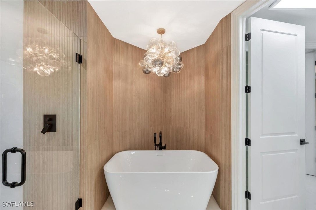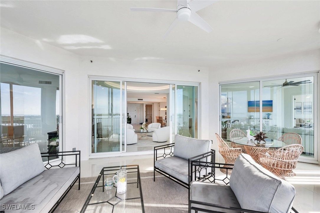 COMPLETELY TRANSFORMED WATERFRONT SKY HOME with sought after breathtaking PANORAMIC VIEWS of GULF AND BAY! Prepare to FALL IN LOVE AT FIRST SIGHT because it's all about the view! Welcome in to this exquisite 11th floor beauty. The stunning open concept offers 3195 square feet of living space displaying luxurious 36"x36" porcelain tile throughout. As you enter the alluring formal living area which boasts an elegant, lighted dome ceiling, notice how the same flooring flows in alignment into the large, glass enclosed lanai. Indulge in this additional living space whether entertaining guests or simply relaxing. Notice how the dining area flows effortlessly into the huge great room and kitchen with more magnificent views through the expansive windows. For a breath of fresh air, enter the open air balcony from this room or the guest suite. The well designed kitchen features quartz countertops, a peninsula and dining bar with seating for six, accent lighting, lovely cabinetry with accent molding, pantry and a sleek cooktop. The additional prep counter and extra cabinetry is beautifully enhanced by floating shelves with accent lighting. The large master suite will WOW you with it's views and elegance! As you pass through the lovely arched hallway with 2 spacious walk-in closets, feel the tranquil atmosphere while entering the stunning bath featuring a spacious, glass enclosed shower, private commode, dual sinks surrounded by eye-catching quartz countertops and elegant wall-sconce lighting. The alluring soaking tub is surrounded by a tasteful custom tile wall and boasts a unique light above to dim as you set a spa-like atmosphere for shear indulgence. From the bath, enter a separate all purpose room with magnificent storage space for most anything, then enter through a connected doorway to the separate laundry room with more storage. A buyer's delight is that all 3 beautiful ensuites include their own bath! One suite includes a sleeper sofa which offers versatile function as an office, bedroom or quiet sitting room and also includes entry to the balcony with more magnificent views. Bay View offers a secure entry door, elevator and shared, open air common area. Ownership includes use of the fitness & community rooms, community pool and a private, 1.5 car garage under the building. Bonita Bay's over the top amenities include a marina, clubhouse, private beach club, walking trails, 5 golf courses, beach shuttle, luxury spa and salon, 3 serene parks, sports and racquet center with a resort style community pool. Wonderful location! Close to Promenade, Coconut Mall, shopping, restaurants, RSW airport. This building has passed the Milestone Structure Inspection. Reserves are already in place and slated for exterior painting of the building and a new roof in the near future. No current assessments & no increase in HOA fees for 2026. Staging items, some furnishings and wall art do not convey. Hurry to make this MOVE IN READY home your own!