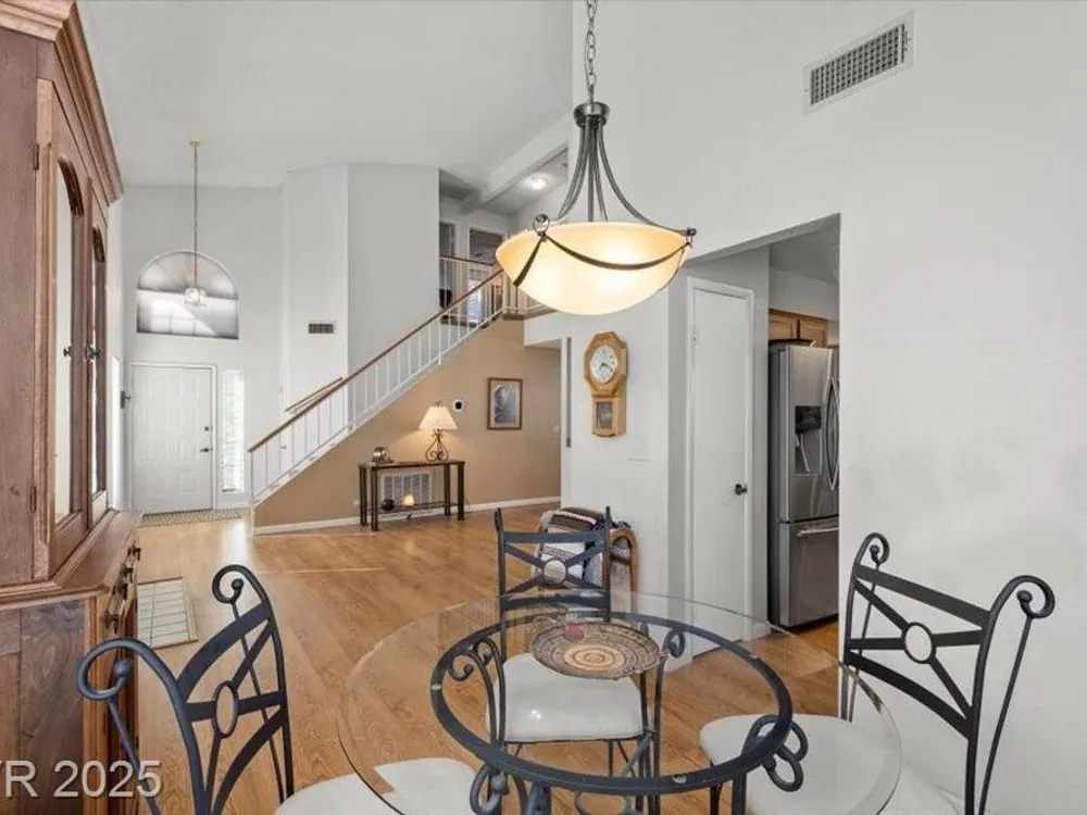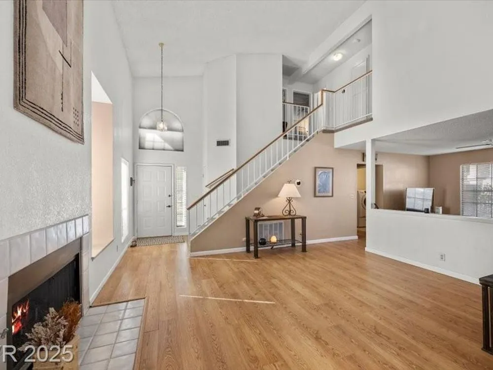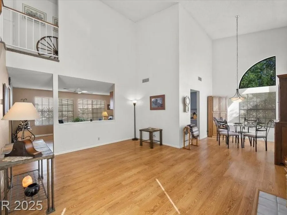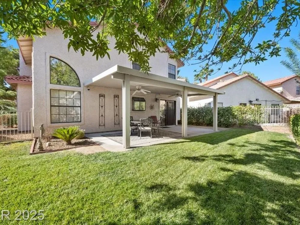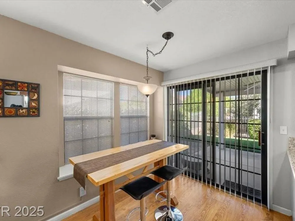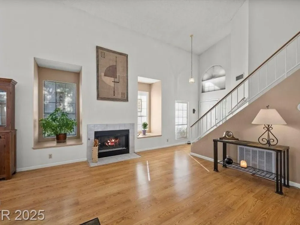 ASK about the 2-1 Buydown opportunity on this property - for 2 years of lower monthly payments!! Through Bill Gaylord NMLS 680603 | NMLS 3029. Welcome to this charming two-story home in the coveted guard-gated Los Prados community. The kitchen boasts granite counters, stainless appliances, a garden window and a cozy breakfast nook. Three bedrooms upstairs keep the main living area open for entertaining or relaxing by the fireplace. Beautiful laminate wood flooring adds elegance and easy care. A separate laundry room with abundant cabinetry offers extra storage. Enjoy low-maintenance desert landscaping, a covered backyard patio for unwinding, and a garage complete with workbench and ceiling storage. This home blends style and functionality in one of Las Vegas’ most desirable communities—don’t miss your chance to see it!