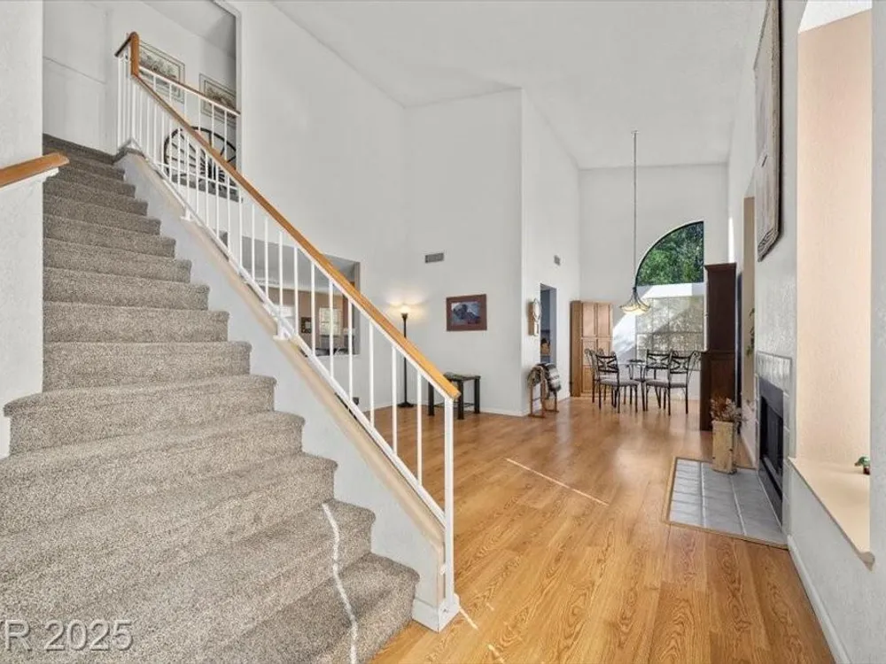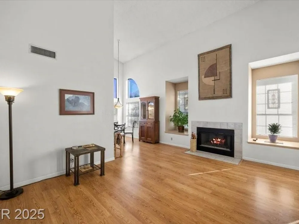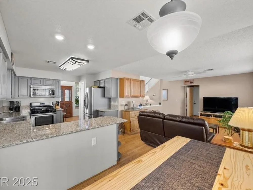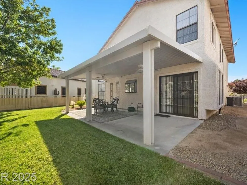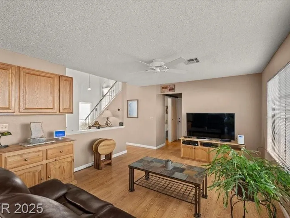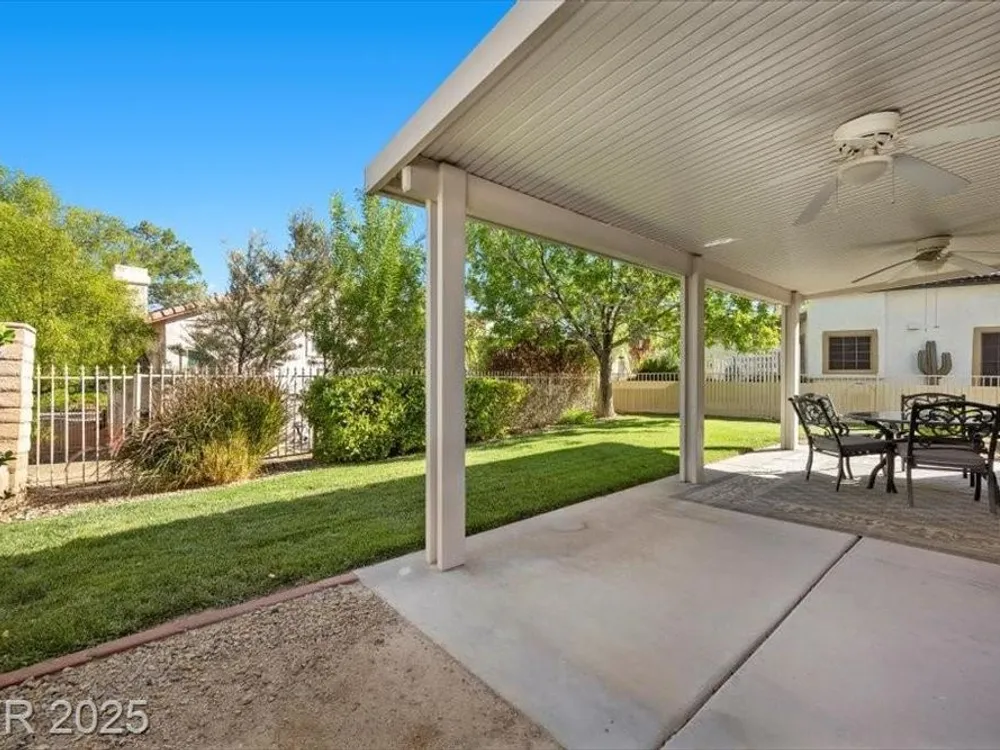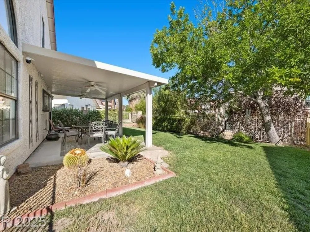 ASK about the 2-1 Buydown opportunity on this property - for 2 years of lower monthly payments!! Through Bill Gaylord NMLS 680603 | NMLS 3029. Welcome to this charming two-story home in the coveted guard-gated Los Prados community. The kitchen boasts granite counters, stainless appliances, a garden window and a cozy breakfast nook. Three bedrooms upstairs keep the main living area open for entertaining or relaxing by the fireplace. Beautiful laminate wood flooring adds elegance and easy care. A separate laundry room with abundant cabinetry offers extra storage. Enjoy low-maintenance desert landscaping, a covered backyard patio for unwinding, and a garage complete with workbench and ceiling storage. This home blends style and functionality in one of Las Vegas’ most desirable communities—don’t miss your chance to see it!