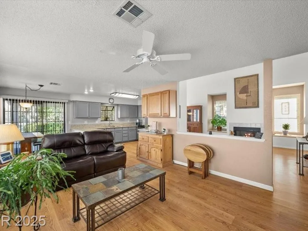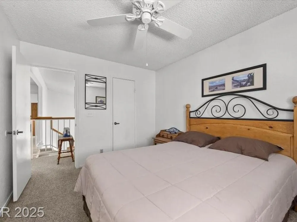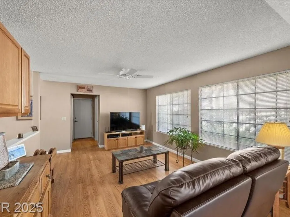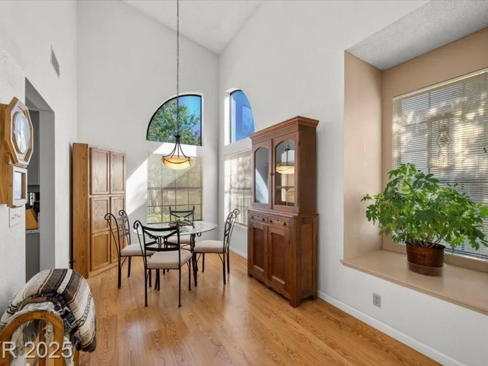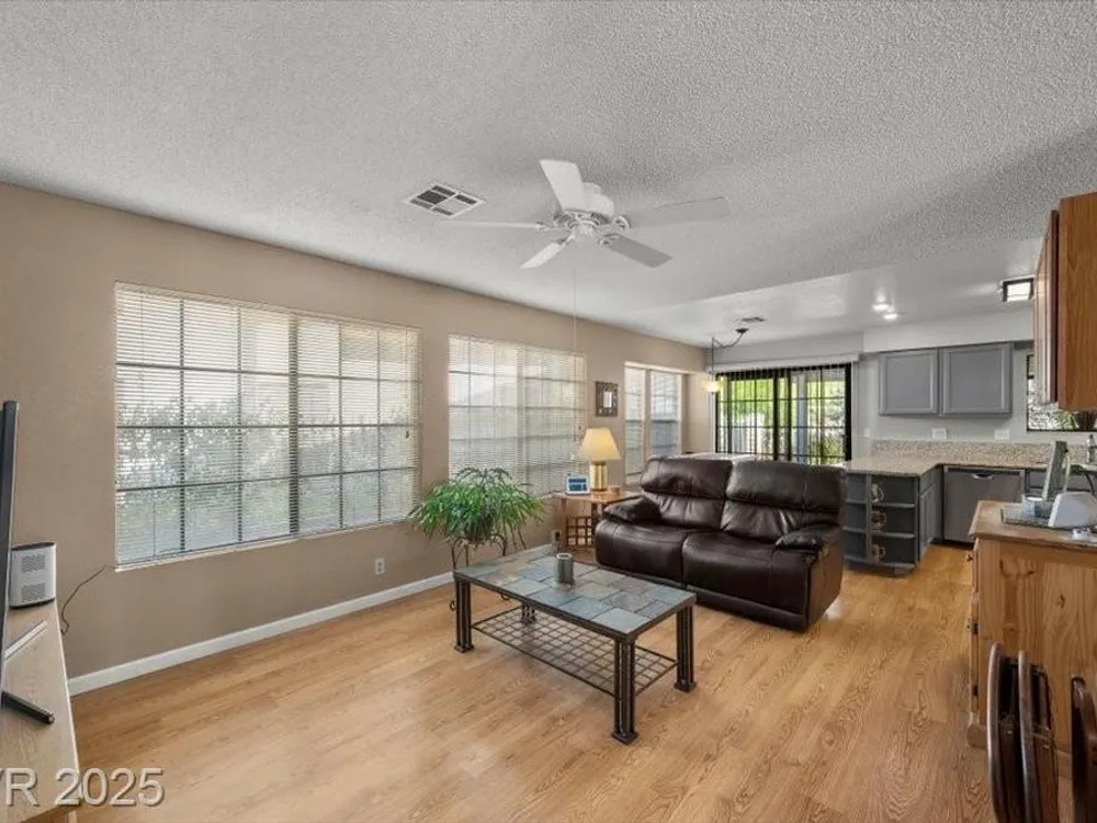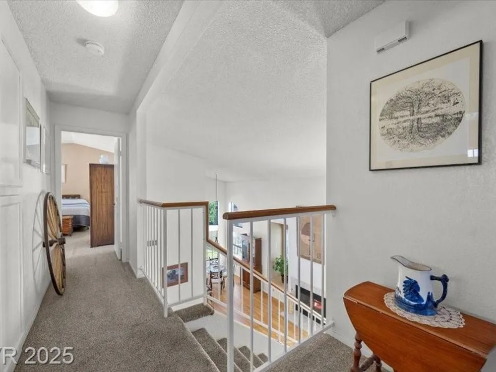 ASK about the 2-1 Buydown opportunity on this property - for 2 years of lower monthly payments!! Through Bill Gaylord NMLS 680603 | NMLS 3029. Welcome to this charming two-story home in the coveted guard-gated Los Prados community. The kitchen boasts granite counters, stainless appliances, a garden window and a cozy breakfast nook. Three bedrooms upstairs keep the main living area open for entertaining or relaxing by the fireplace. Beautiful laminate wood flooring adds elegance and easy care. A separate laundry room with abundant cabinetry offers extra storage. Enjoy low-maintenance desert landscaping, a covered backyard patio for unwinding, and a garage complete with workbench and ceiling storage. This home blends style and functionality in one of Las Vegas’ most desirable communities—don’t miss your chance to see it!