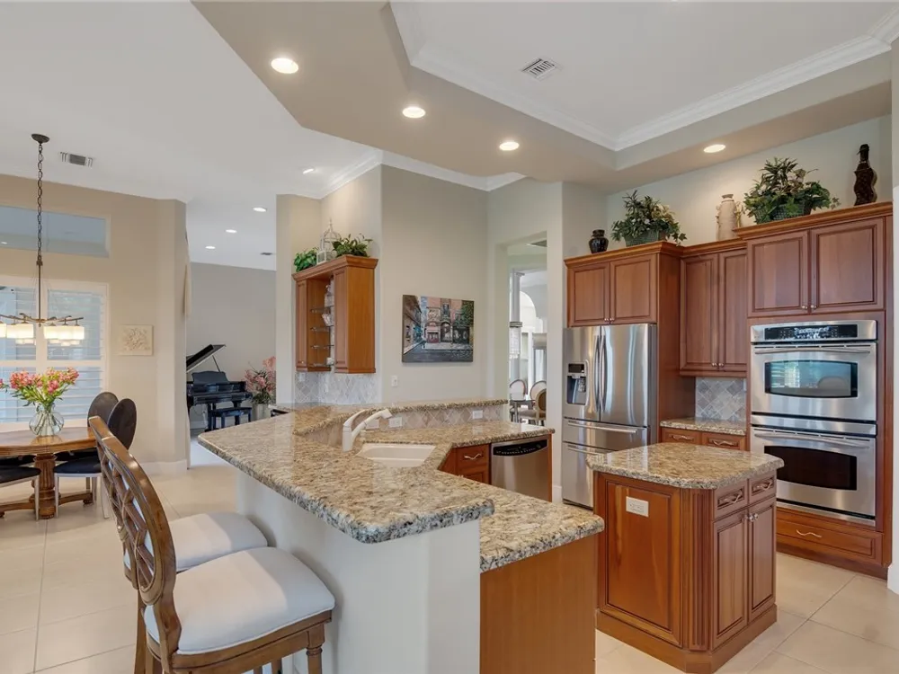 - Wet Bar, Built-in Features, Closet Cabinetry, Crown Molding, High Ceilings, Kitchen Island, Pantry, Walk-In Closet(s), Central Vacuum