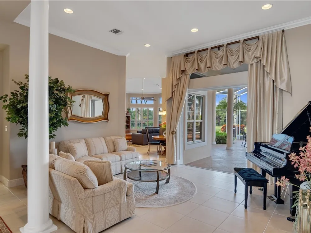 Welcome to 4817 River Village Drive, Grand Harbor Elegance, Fully Furnished and Move-In Ready. Nestled in the heart of the prestigious Grand Harbor River Village, this beautifully appointed 3/2.5 residence w/a den & 3-car GA offers refined coastal living w/timeless sophistication. Offered fully furnished, this meticulously maintained home is a rare opportunity, ideal for those seeking elegance, comfort, & a vibrant resort lifestyle. Step inside & experience a flowing, open floor plan adorned with high ceilings, refined finishes, & expansive living spaces.