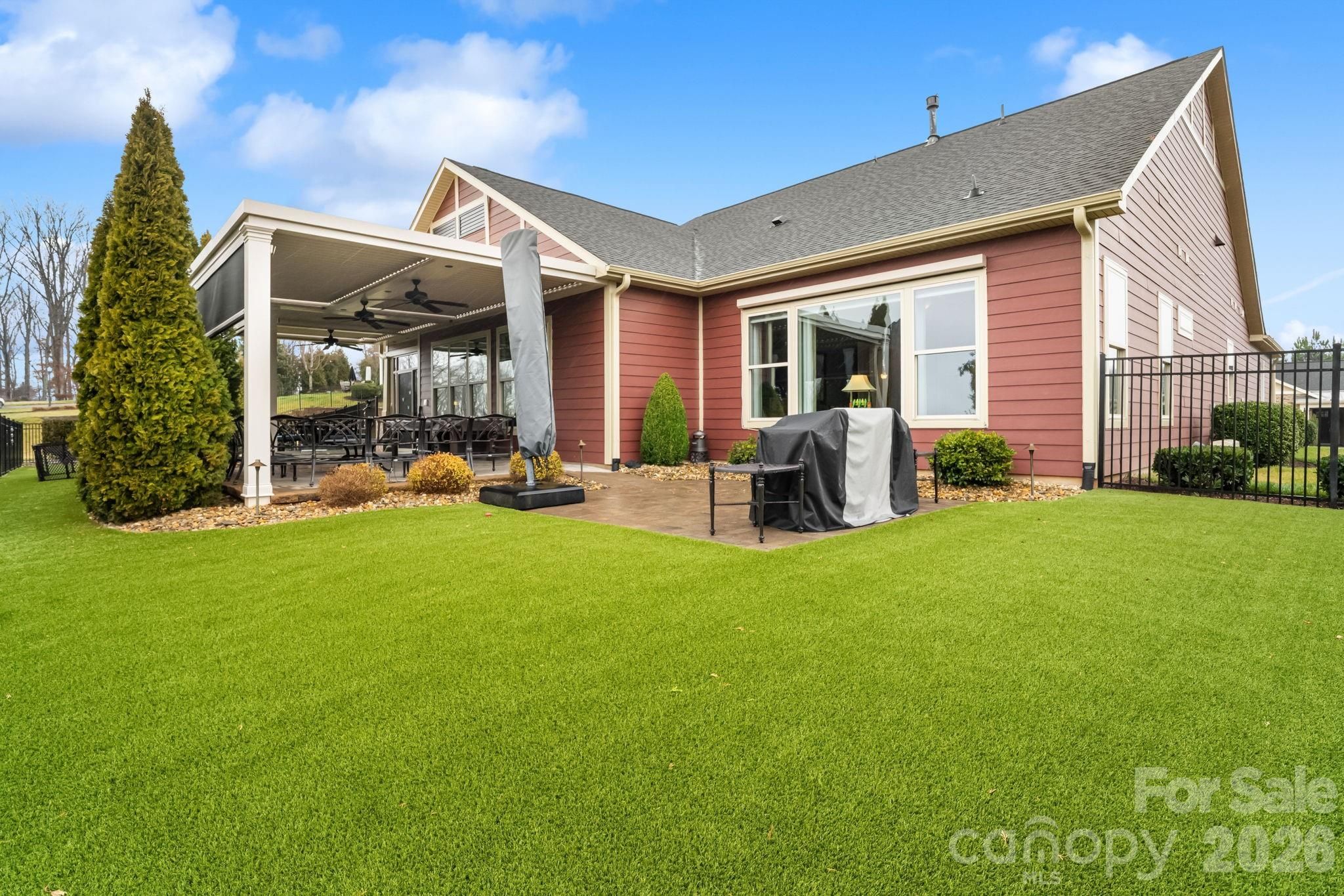 Experience luxury resort-style living in the highly sought-after community of Trilogy Lake Norman. This beautifully appointed and popular Captivate ranch floor plan sits on a premium large corner lot and is loaded with high-end upgrades designed for comfort, style, and easy living. Step inside to find 10-foot ceilings creating an open, airy feel filled with natural light. The great room is a true focal point, featuring a cozy fireplace and built-in cabinetry for both style and function. The upgraded chef’s kitchen is an entertainer’s dream, showcasing two spacious islands, GE Café appliances, abundant custom cabinetry, and a seamless flow into the main living spaces. The primary suite offers a private retreat with a spacious bedroom and luxurious en-suite bath featuring dual vanities, a walk-in shower, and custom closet system. A versatile office/den flex space provides the perfect work-from-home or hobby area, while the spacious guest bedroom includes its own full private bath for added comfort and privacy. Outdoor living truly shines with extensive landscaping and thoughtful backyard improvements, including two patio areas, a high-end retractable awning system, low-maintenance artificial turf, and a fully fenced backyard that is perfect for year-round enjoyment with minimal upkeep. Additional highlights include a large, enclosed sunroom complemented by rolling walls of glass windows and doors that provide enhanced indoor-outdoor living. Also included are electric window treatments and blinds that provide privacy while still welcoming natural light. Epoxy-coated garage floor with a mini-split HVAC system installed for maximum year-round use. Residents enjoy access to the exceptional Twin Mills Club amenities including a restaurant, fitness center, and resort-style pools as well as Freedom Boat Club access, all with HOA-included lawn maintenance. This move-in ready home offers the perfect blend of luxury, functionality, and low-maintenance living in one of the area’s premier active lifestyle communities.