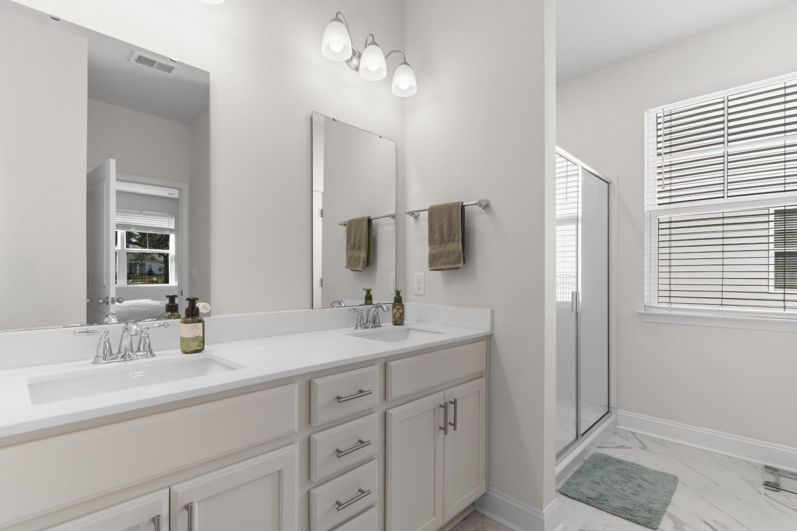 - Attic Access, Dual Sinks, LinenCloset, Main Level Primary, Pull Down Attic Stairs, Permanent Attic Stairs, Split Bedrooms, Separate Shower, Vanity, Walk-In Closet(s), Window Treatments, Breakfast Bar, Bedroom on Main Level, Entrance Foyer, Kitchen Island, Stainless Steel Appliances, Solid Surface Counters