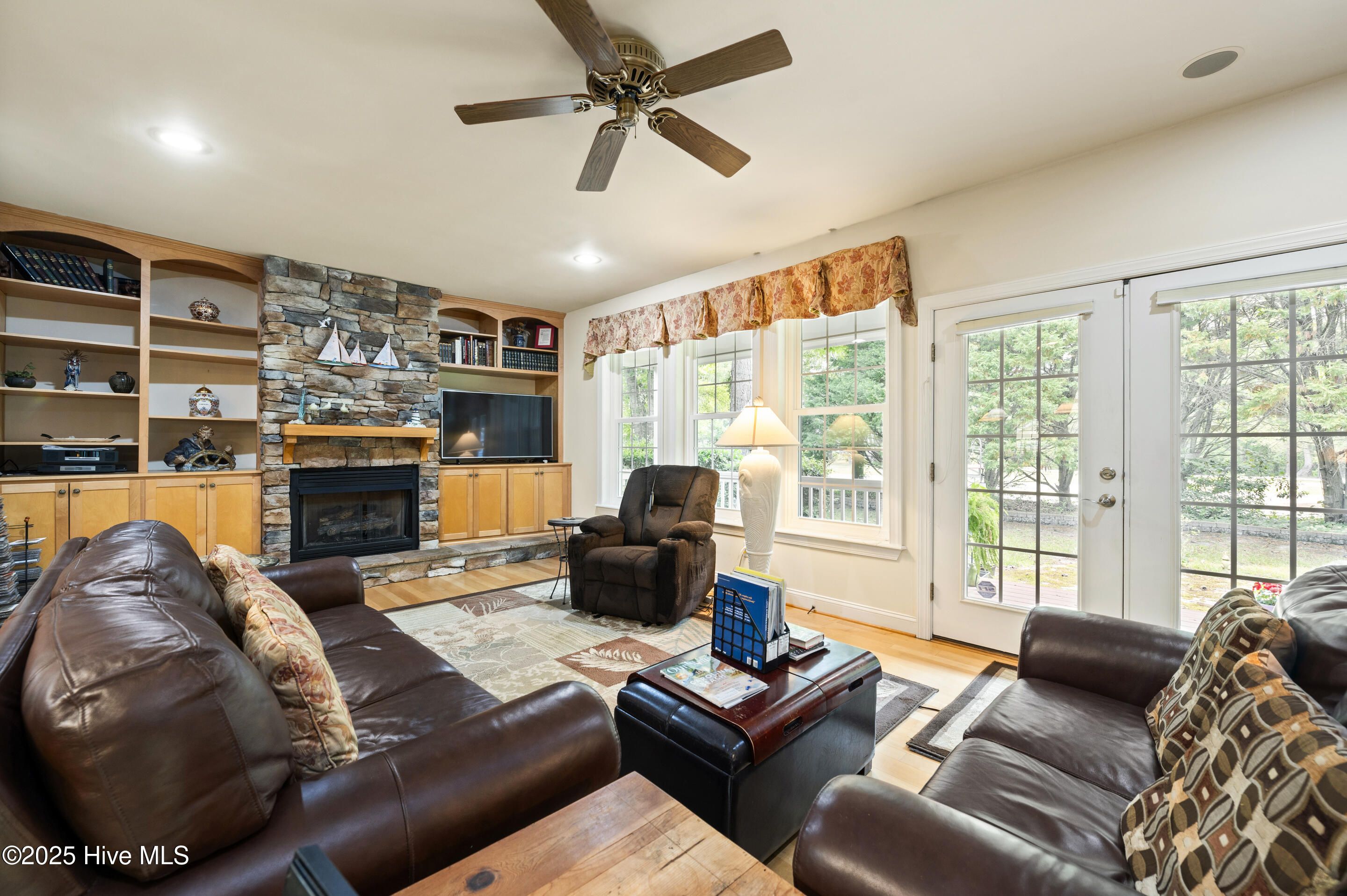 - Bookcases, Solid Surface, Whole-Home Generator, Walk-In Closet(s), Walk-in Shower, Entrance Foyer, Pantry, Master Downstairs, Kitchen Island, High Ceilings, Gas Log, Ceiling Fan(s)