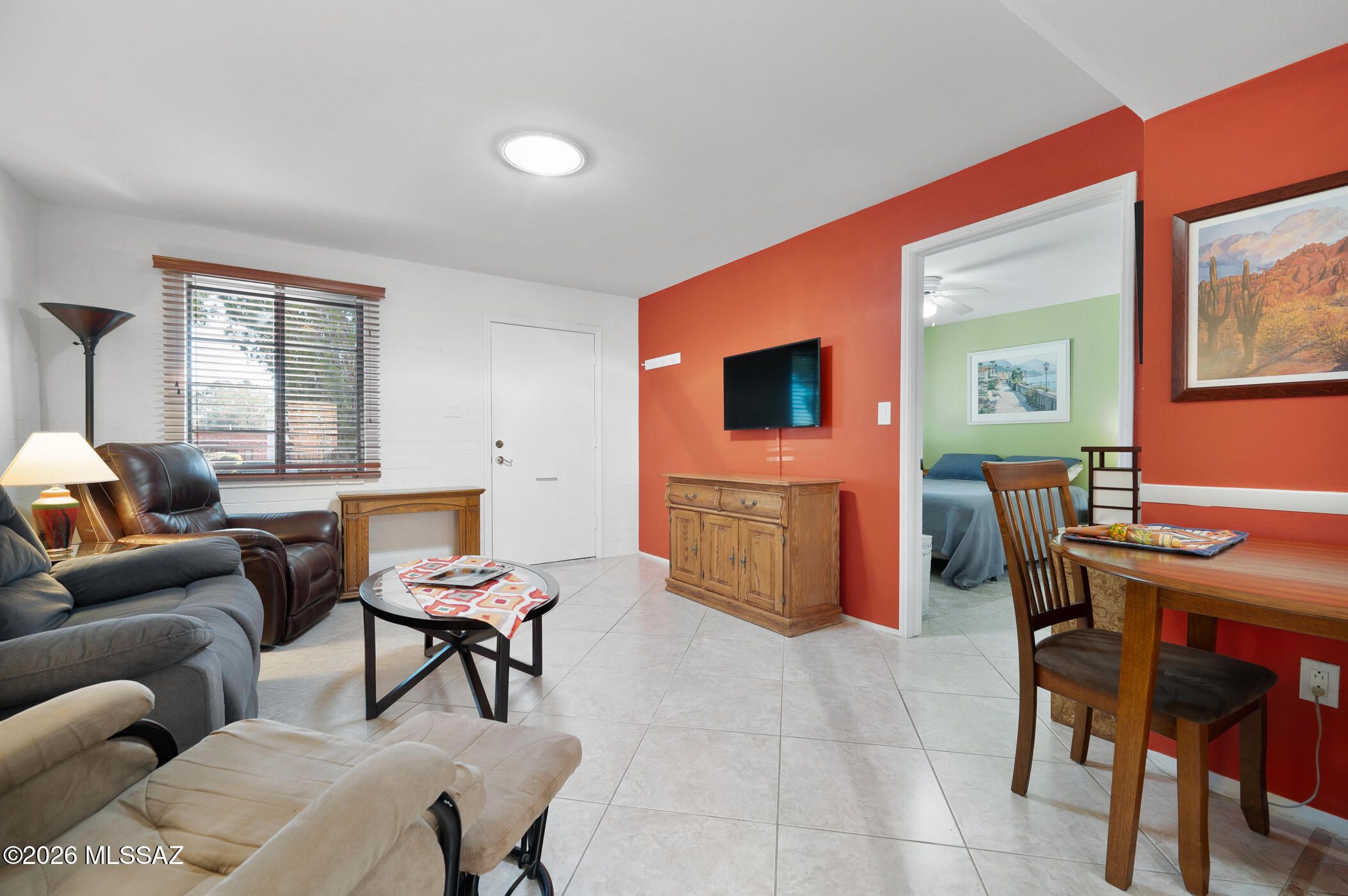 Tucked away at the end of Paseo Pena, this fully furnished and truly unique 1-bedroom home offers privacy, convenience, and beautiful mountain views from the raised front patio -- the perfect spot for morning coffee or evening sunsets.Located in a desirable two-unit building, this property lives larger than expected. Inside, you're welcomed by a bright, open living area that flows seamlessly into the updated kitchen featuring abundant pantry storage and a built-in desk area ideal for hobbies or a home workspace. In-unit laundry adds everyday convenience, and with the home being fully furnished, you can simply bring your suitcase and start enjoying the Green Valley lifestyle immediately.This is a true lock-and-leave community with extensive HOA coverage including the roof, HVAC system,