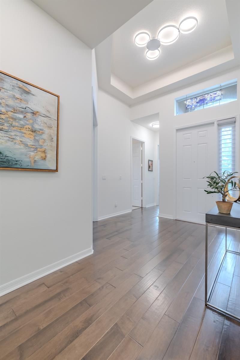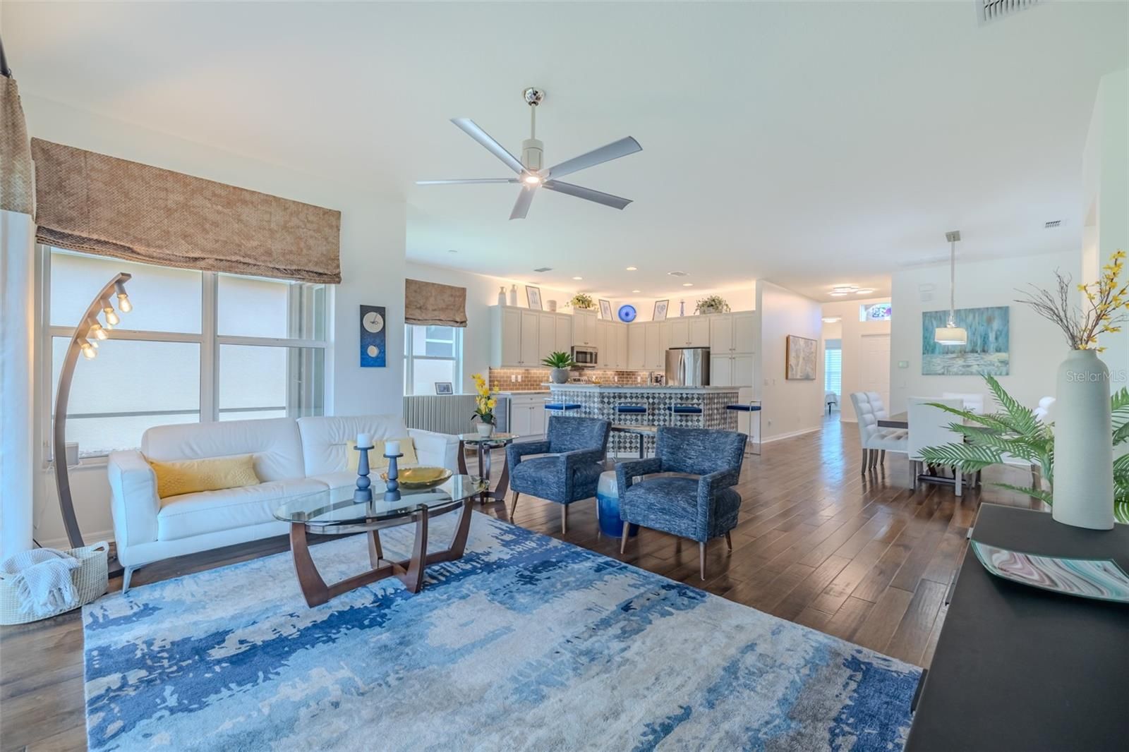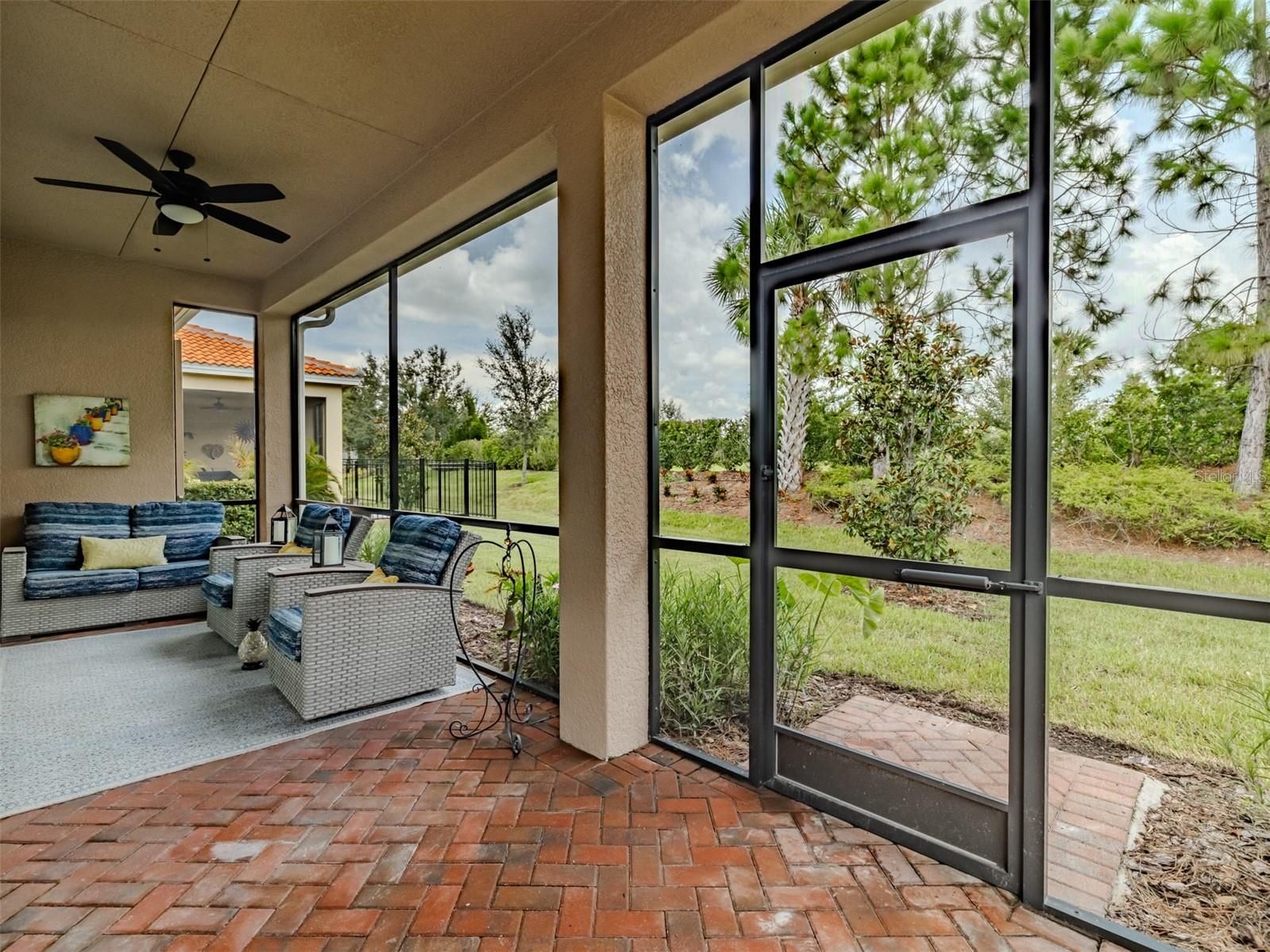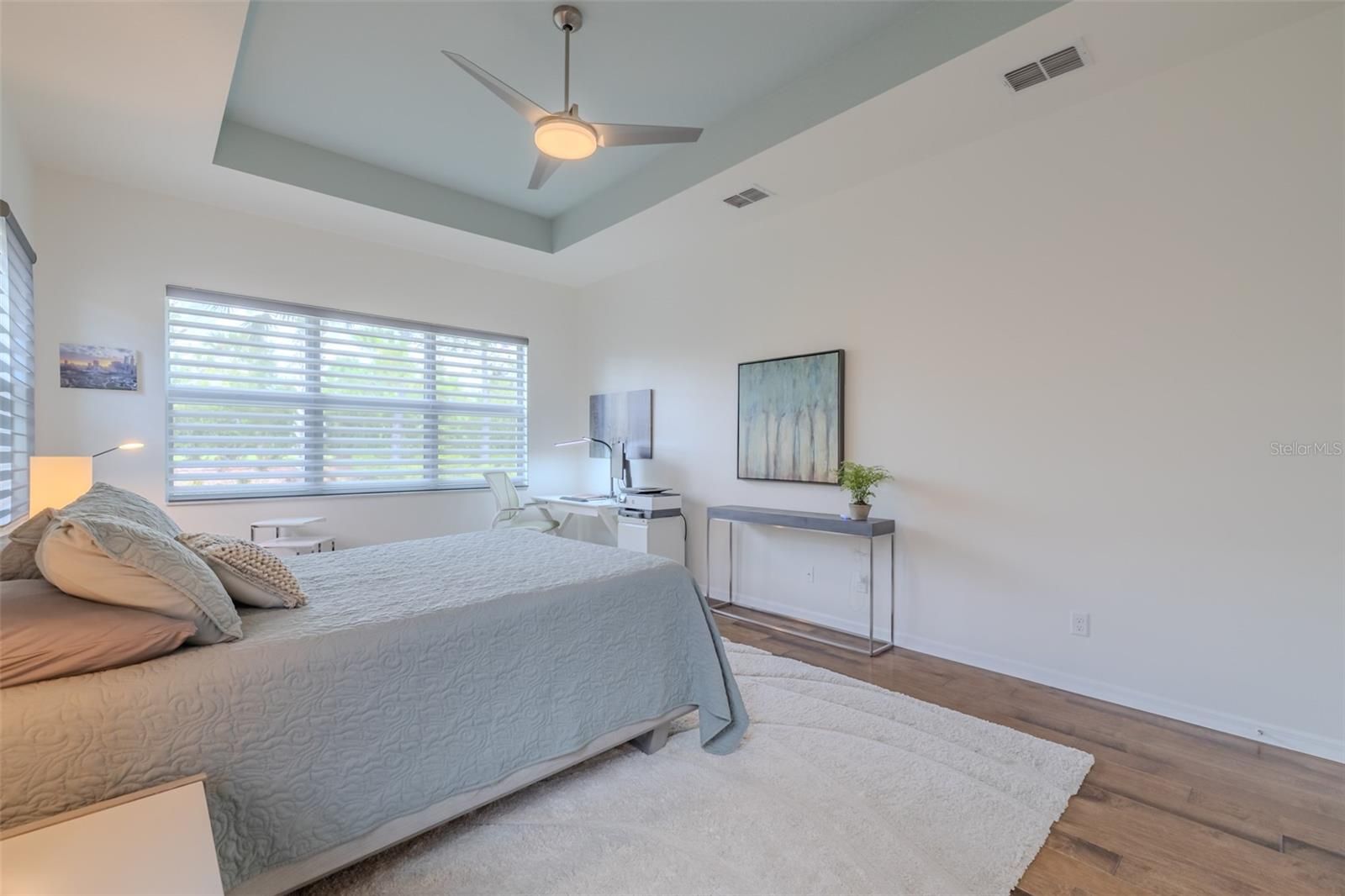 Seize the day! This beautiful GENOVA is now available in Valencia Lakes, Tampa Bay's premier 55+ Active Adult Community. Built in 2018, this GENOVA is 2,107SF under air, and features 2 Bedrooms, an Office, 2 full Bathrooms, an expansive 18’ x 15’ Great Room, Chef's Kitchen, Dining Room, Dinette, an L-shaped screened in Lanai and a 2-car Garage. As you enter, you will be welcomed into a large Foyer with a 14'-to-'15' tray ceiling and gorgeous engineered hardwood flooring throughout, save for the wet areas. Right of the Foyer and at the front of the home is the Guest Bedroom with a double closet and Hunter-Douglas shades offering your guests comfort and privacy. The Guest Bathroom features a with a walk-in shower, granite countertops, and the window has privacy glass. The Laundry Room offers an LG Washer and Dryer, a cabinet utility sink, lower cabinets and storage racks above. Forward of the Foyer is the inviting open floorplan. The Dining Room features a Cosmopolitan Linear chandelier and will comfortably accommodate 8 persons. The Chef’s Kitchen features stainless-steel appliances, a double-sink with a RO faucet, Pantry, 42” solid-wood chiffon white cabinetry capped by granite counters and a glass subway tile backsplash. Just off the kitchen, the Dinette is a great spot to enjoy a leisurely meal and has access to the lanai via two sliding glass doors. The 15’x18’ Great Room features a 60” Minka ceiling fan and it feels expansive and cozy at the same time. Abundant windows and a 4-panel 12’ sliding-glass door leads to the Lanai providing a bright living space when desired and the custom Hunter-Douglas silhouette shades ensure privacy. The sprawling L-shaped Lanai with 2 ceilings fans allows you to bring the outdoors, indoors. The Primary Bedroom with Ensuite Bathroom is at the rear of the home. It is 20’x13’ with a 10’-to-11’ tray ceiling and has three windows, two walk-in closets, one is finished, and a wonderful Ensuite Bathroom. The Ensuite Bathroom features 18”x18” porcelain tile on the diagonal, separated vanities with granite counters, a Roman Bathtub, a large Walk-In Shower and a Water Closet for the Commode. The home’s interior has been freshly painted throughout. The 2-car Garage has exquisite epoxy flooring, an insulated door powered by a quiet belt-drive opener, a 4’x8’overhead storage racks and three additional wall-mounted storage racks. Interior environmental comforts are assured by a RUUD HVAC (2021). The exterior features Accordion Hurricane Shutters on all openings, and whole-home Gutters. Valencia Lakes is an amazing community that has a 40,000SF Clubhouse offering entertainment shows, dances, myriad clubs, a state-of-the heart 24/7 Fitness Center, resort-style pool, lap pool, two multi-purpose fitness studios, card rooms, craft rooms, pickleball, tennis and much more. Conveniently located near two new hospitals, the brand new Moffit Cancer Center, Downtown Tampa, Tampa airport, and a short drive to Disney, Cruise Ports, Sarasota and some of the best beaches in the country! Seize the day and begin living your idyllic life in this special home.