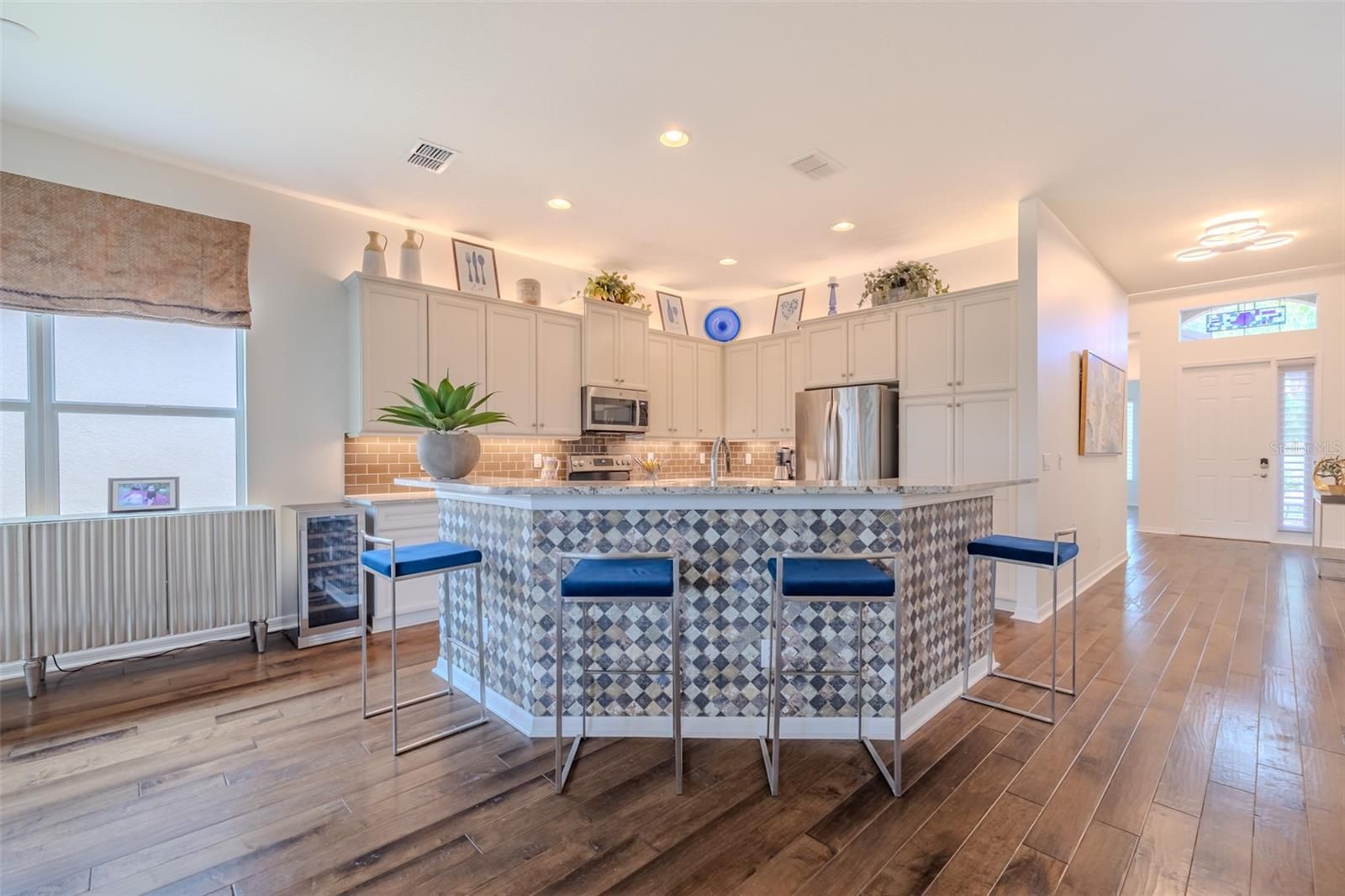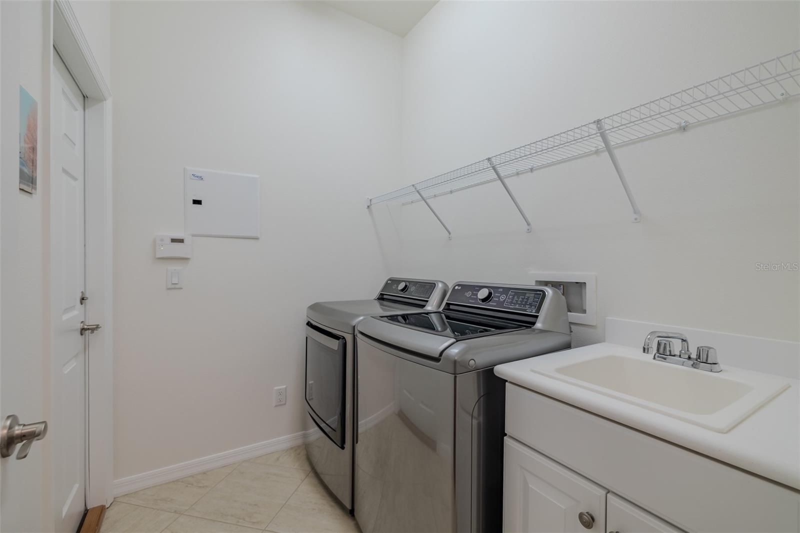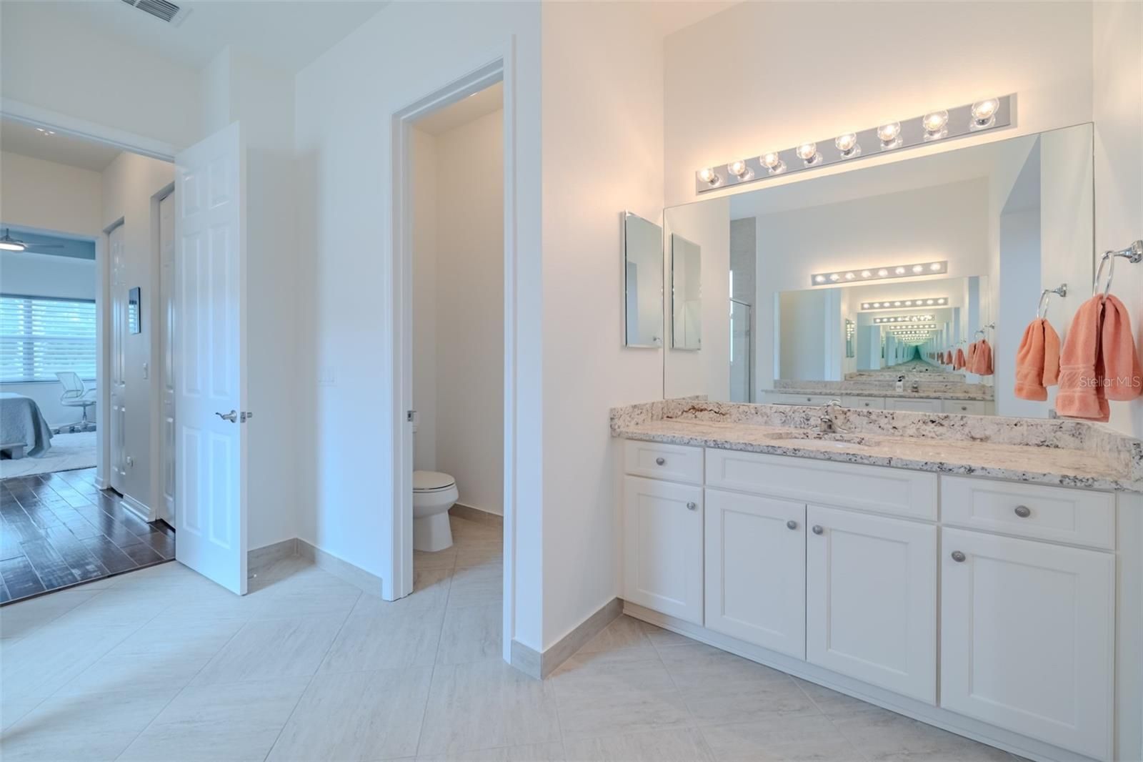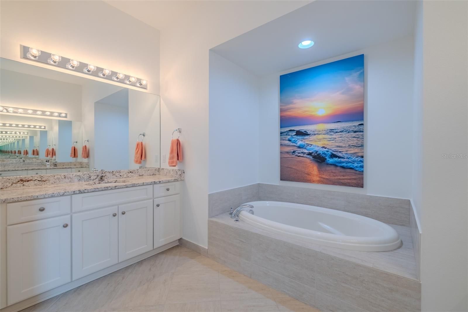 Seize the day! This beautiful GENOVA is now available in Valencia Lakes, Tampa Bay's premier 55+ Active Adult Community. Built in 2018, this GENOVA is 2,107SF under air, and features 2 Bedrooms, an Office, 2 full Bathrooms, an expansive 18’ x 15’ Great Room, Chef's Kitchen, Dining Room, Dinette, an L-shaped screened in Lanai and a 2-car Garage. As you enter, you will be welcomed into a large Foyer with a 14'-to-'15' tray ceiling and gorgeous engineered hardwood flooring throughout, save for the wet areas. Right of the Foyer and at the front of the home is the Guest Bedroom with a double closet and Hunter-Douglas shades offering your guests comfort and privacy. The Guest Bathroom features a with a walk-in shower, granite countertops, and the window has privacy glass. The Laundry Room offers an LG Washer and Dryer, a cabinet utility sink, lower cabinets and storage racks above. Forward of the Foyer is the inviting open floorplan. The Dining Room features a Cosmopolitan Linear chandelier and will comfortably accommodate 8 persons. The Chef’s Kitchen features stainless-steel appliances, a double-sink with a RO faucet, Pantry, 42” solid-wood chiffon white cabinetry capped by granite counters and a glass subway tile backsplash. Just off the kitchen, the Dinette is a great spot to enjoy a leisurely meal and has access to the lanai via two sliding glass doors. The 15’x18’ Great Room features a 60” Minka ceiling fan and it feels expansive and cozy at the same time. Abundant windows and a 4-panel 12’ sliding-glass door leads to the Lanai providing a bright living space when desired and the custom Hunter-Douglas silhouette shades ensure privacy. The sprawling L-shaped Lanai with 2 ceilings fans allows you to bring the outdoors, indoors. The Primary Bedroom with Ensuite Bathroom is at the rear of the home. It is 20’x13’ with a 10’-to-11’ tray ceiling and has three windows, two walk-in closets, one is finished, and a wonderful Ensuite Bathroom. The Ensuite Bathroom features 18”x18” porcelain tile on the diagonal, separated vanities with granite counters, a Roman Bathtub, a large Walk-In Shower and a Water Closet for the Commode. The home’s interior has been freshly painted throughout. The 2-car Garage has exquisite epoxy flooring, an insulated door powered by a quiet belt-drive opener, a 4’x8’overhead storage racks and three additional wall-mounted storage racks. Interior environmental comforts are assured by a RUUD HVAC (2021). The exterior features Accordion Hurricane Shutters on all openings, and whole-home Gutters. Valencia Lakes is an amazing community that has a 40,000SF Clubhouse offering entertainment shows, dances, myriad clubs, a state-of-the heart 24/7 Fitness Center, resort-style pool, lap pool, two multi-purpose fitness studios, card rooms, craft rooms, pickleball, tennis and much more. Conveniently located near two new hospitals, the brand new Moffit Cancer Center, Downtown Tampa, Tampa airport, and a short drive to Disney, Cruise Ports, Sarasota and some of the best beaches in the country! Seize the day and begin living your idyllic life in this special home.