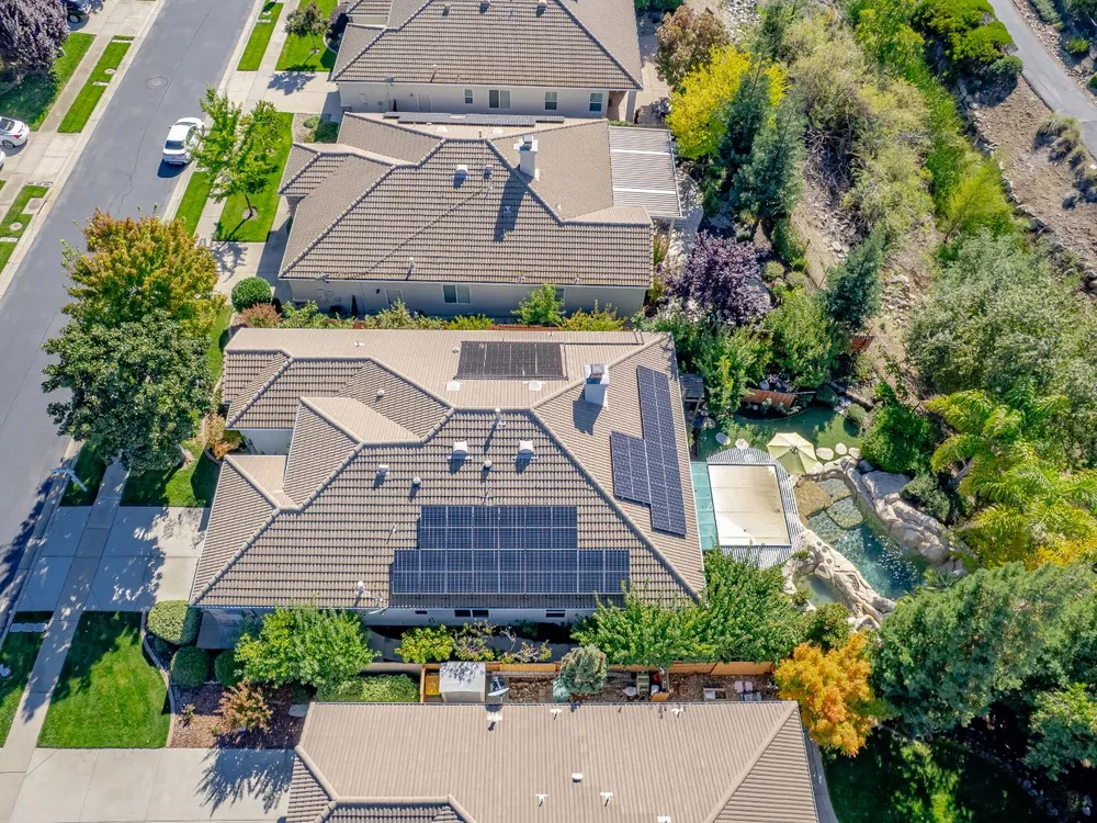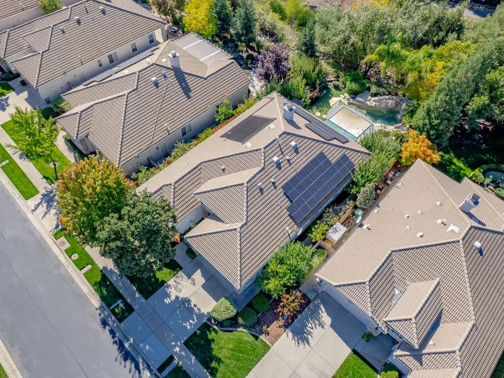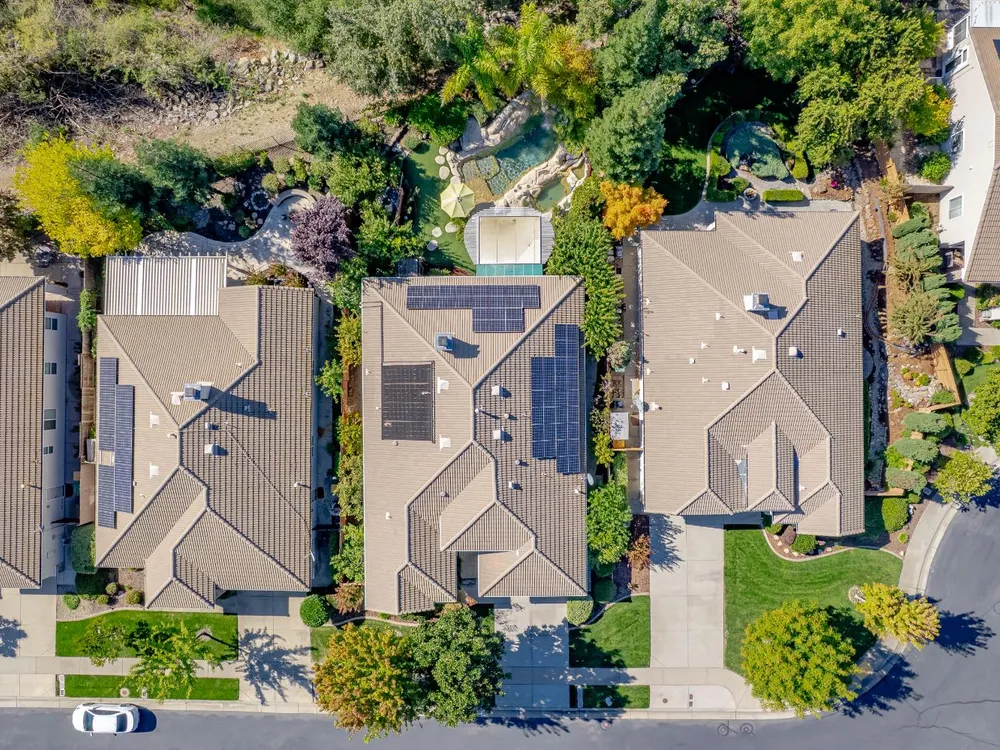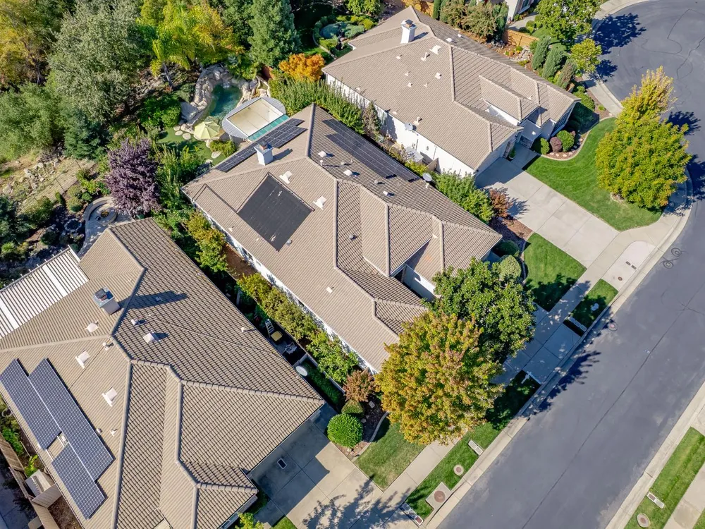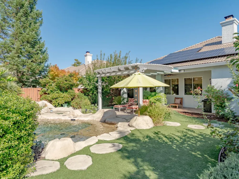Wow! Move now into your "Staycation" home in the California Sierra foothills. Your retirement lifestyle just got REAL! This one story Lake Tahoe plan backs to natural stream /open space! Your own private resort situated in prestigious El Dorado Hills Four Seasons 55+ gated community. Amazing built in swimming pool and waterfalls to enjoy year-round. The pond is perfect for fish lovers. 2 huge bedrooms,2 bathrooms, formal dining,breakfast area, walk in pantry, den/office, great room with cozy fireplace , primary bedroom includes extended backyard access through the glass french doors. Corian counters,deep farm sink in kitchen, upgraded spanish tile floors, solar tubes, surround sound, instant hot water. Newer plumbing, water heater and clear pest work 16k. Two solar units separate for pool and home. Tranquil nature views with easy care landscape. Instant hot water, garage attic storage with pull down steps. Enjoy your fresh apples , pomegranates,oranges , persimmons and roses. No MELLO ROOS TAX. Close to community lodge to meet friends and stay active in pickleball, tennis, bocce, crafts, billiards, fitness , ballroom , computers, library and so much more. Medical, Shopping , Red Hawk Casino, Wineries close!