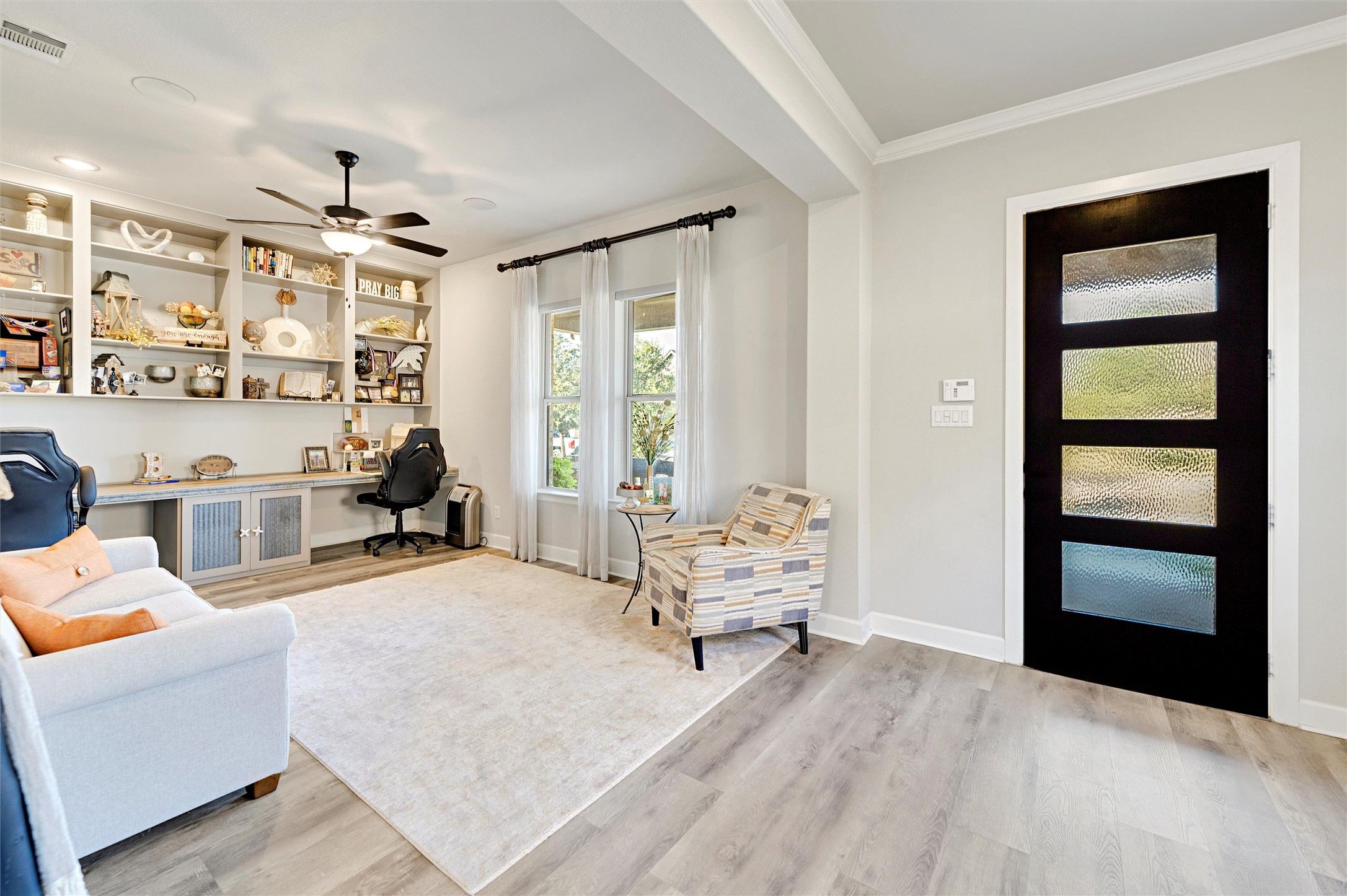OPEN HOUSE THIS SATURDAY (2-21) FROM 12pm-3pm. Welcome to 4825 Beaver Creek Drive—an elegant, highly upgraded retreat in Arlington’s premier 55+ active adult community, Viridian Elements. Built in 2020 and offering just over 2,500 sqft, this 2-bedroom + office, 2 bath home is designed for comfort, style, and easy living. The open-concept layout is filled with natural light and features a designer kitchen with custom white and grey cabinetry, a large island, and a wet bar with wine fridge and sink—perfect for entertaining. A 12-ft custom sliding glass door leads to your expanded covered patio, larger than the standard builder option, complete with stained stone flooring in an elegant design. Enjoy low-maintenance turf, a built-in outdoor kitchen, a custom gas fire pit, and professionally landscaped flower beds with stone borders running along the entire backyard fence. The spacious primary suite overlooks this tranquil oasis and includes a spa-like bath with a super shower and beach-entry design. Additional highlights include a Sonos speaker system throughout, custom stonework on the front porch and columns, and a welcoming front sitting area. This home is loaded with thoughtful upgrades and sits in one of DFW’s most sought-after 55+ communities with trails, pools, pickleball, events, and more. Discover the lifestyle you’ve been waiting for at 4825 Beaver Creek Drive.