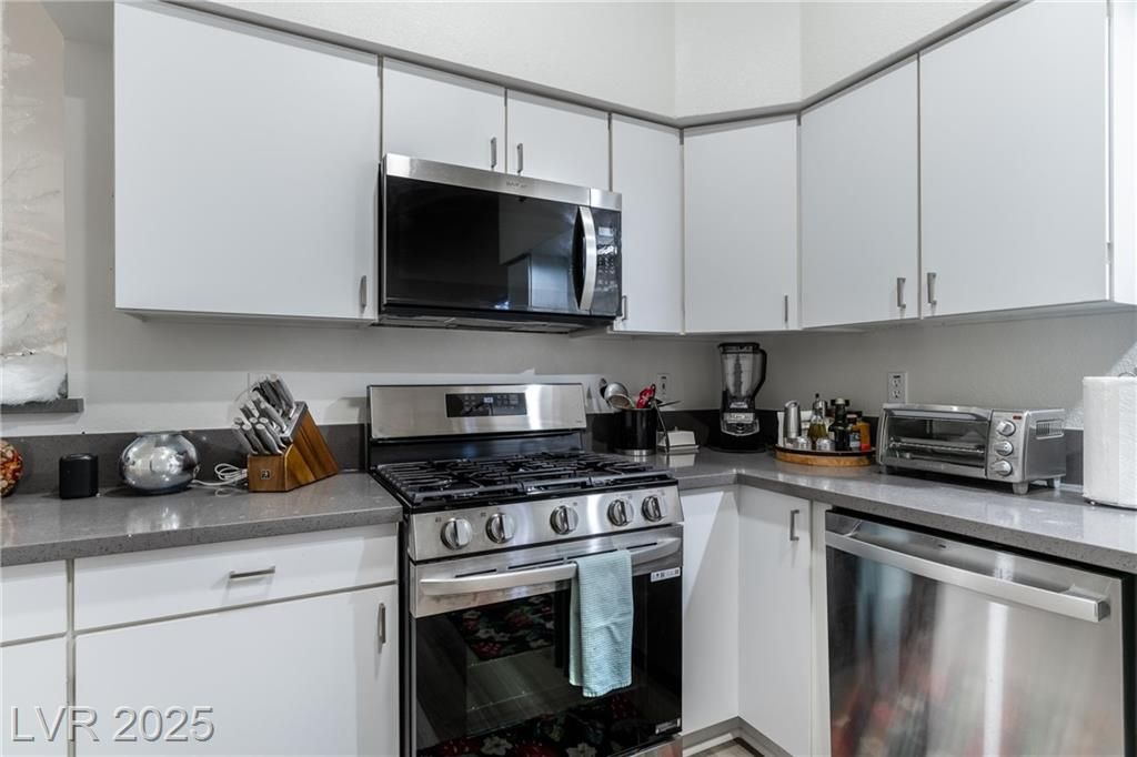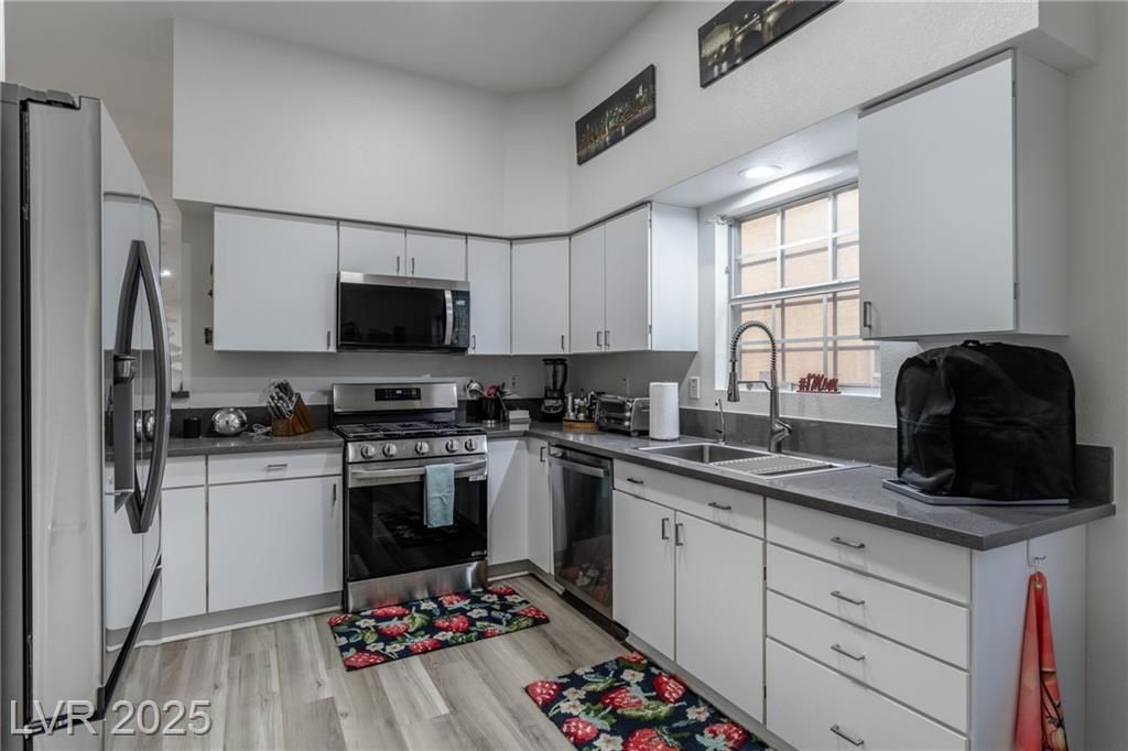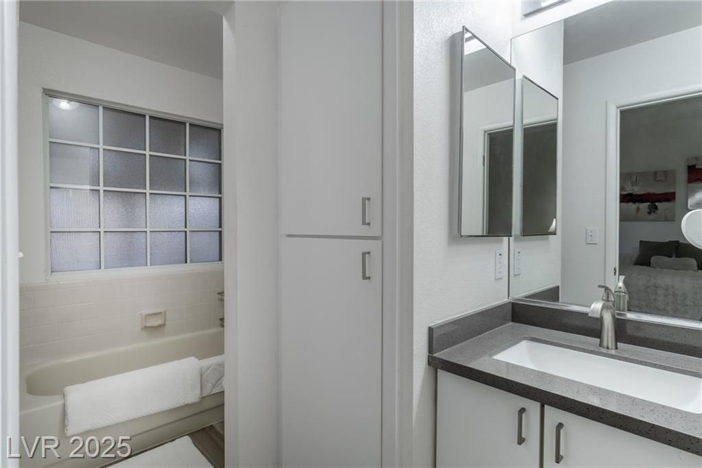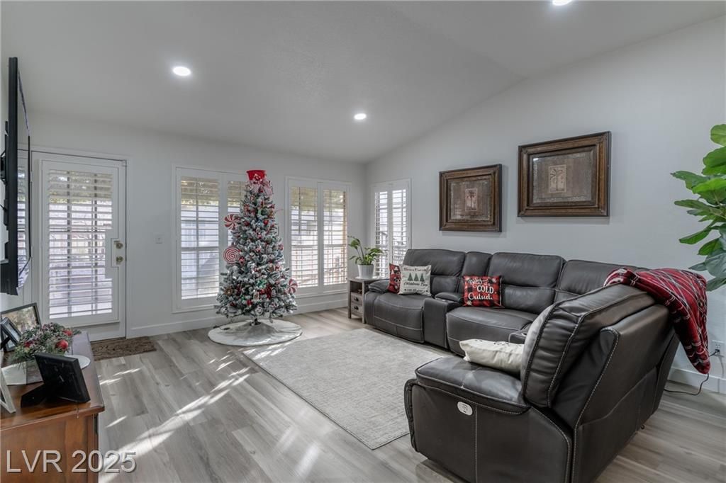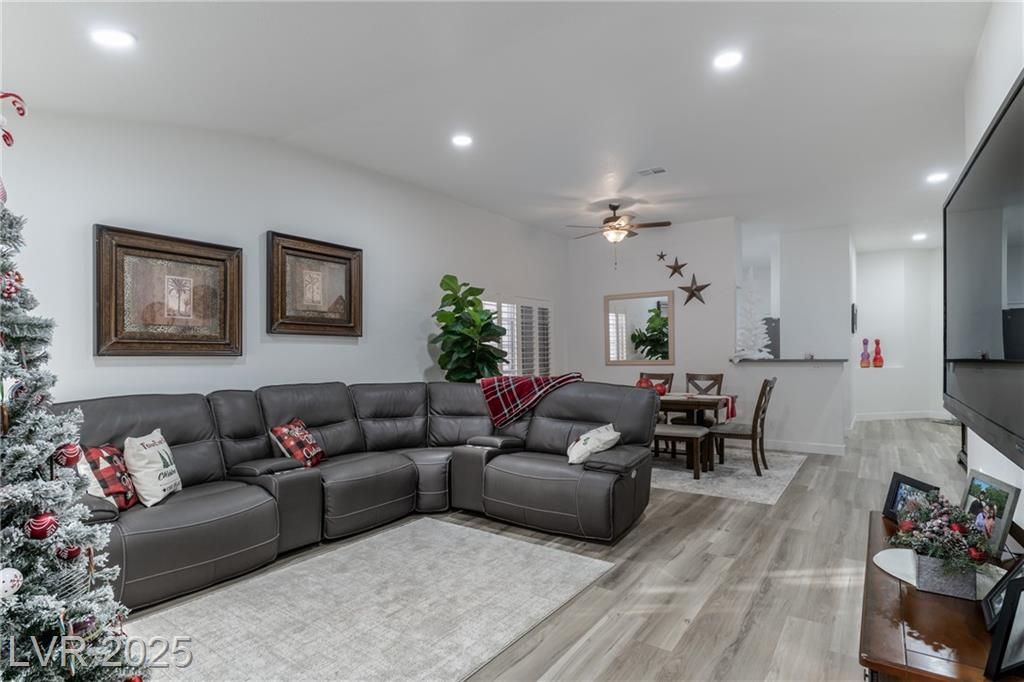 Welcome to resort-style living in this guard-gated 55+ private community in Las Vegas. This beautifully remodeled single-story townhome offers 2 bedrooms and 2 bathrooms with thoughtful upgrades throughout. Enjoy brand-new flooring, baseboards, paint, carpeted bedrooms, shutters on all windows, and a completely repaved concrete driveway. The home features a new HVAC/AC system, new roof, new water heater, updated plumbing, and a newly gated backyard. The kitchen shines with stainless steel appliances and quartz countertops. Community amenities feel like a country club, including a clubhouse, pool, golf, spa, and more—offering comfort, security, and an exceptional lifestyle.