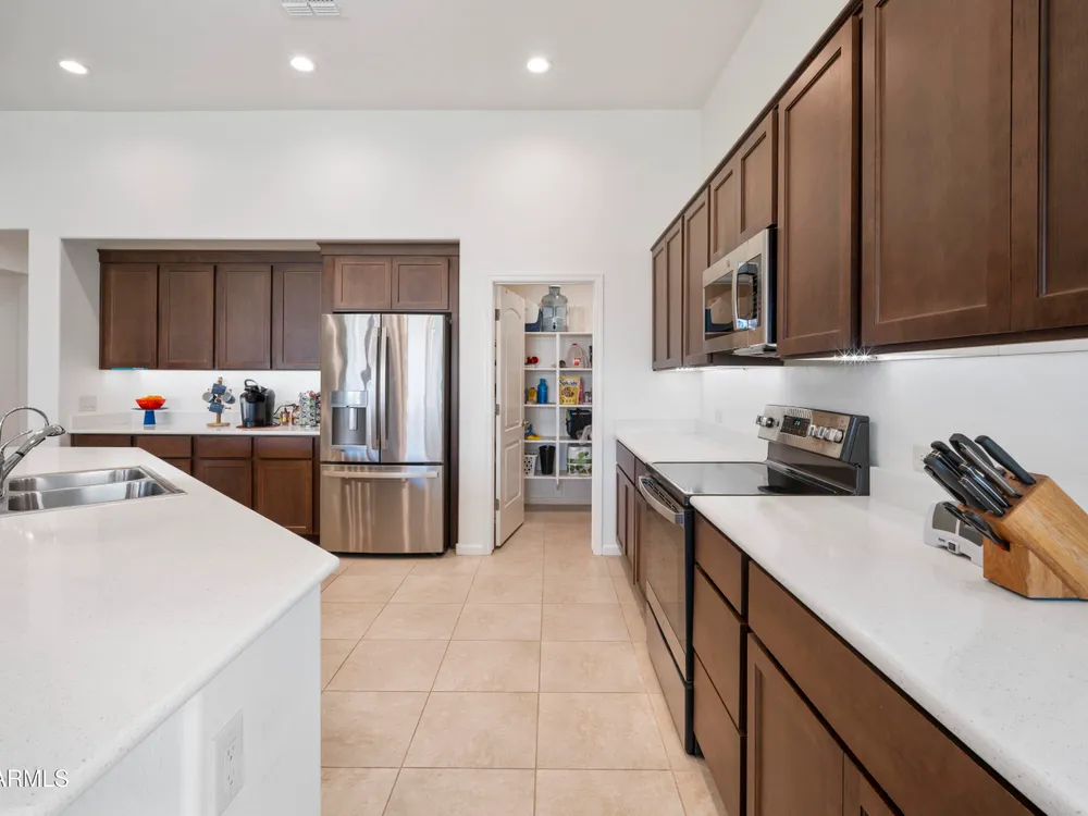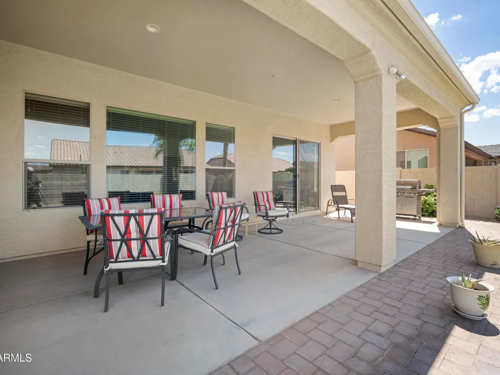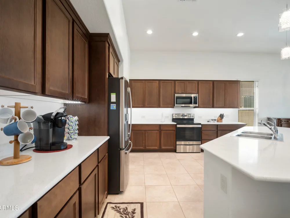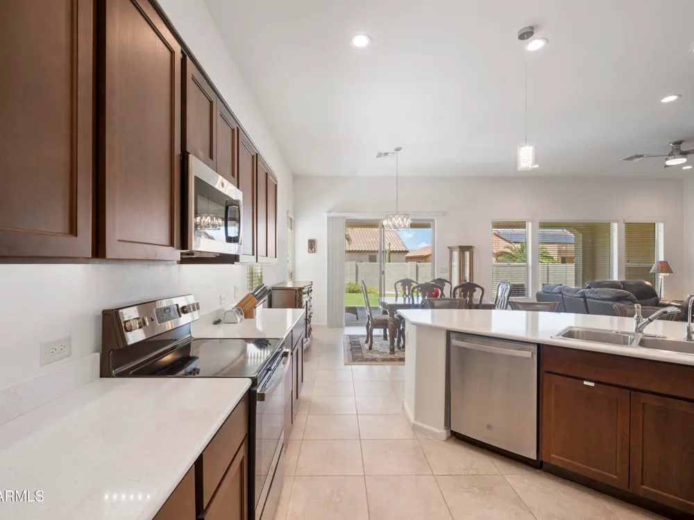 FULLY FURNISHED & MOVE-IN READY! Fall in love with this spacious 2,805 SF home designed for comfort, style, and flexibility! Featuring 3 large bedrooms each with en-suite baths and a 3-car garage with service door, this home is perfect for multigenerational living or anyone who wants extra space. The chef's kitchen is a dream, boasting Quartz countertops, stainless steel appliances, convection range, RO system, and elegant pendant lighting. Step outside to your professionally landscaped backyard oasis. This home has it all—style, space, and upgrades galore! Don't miss your chance to own this gorgeous home!