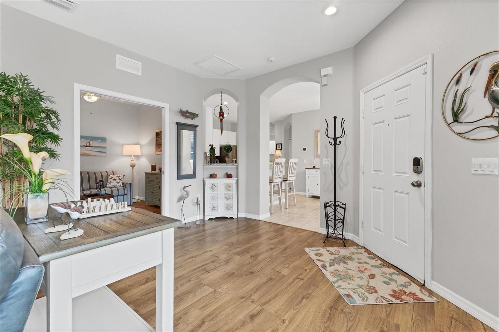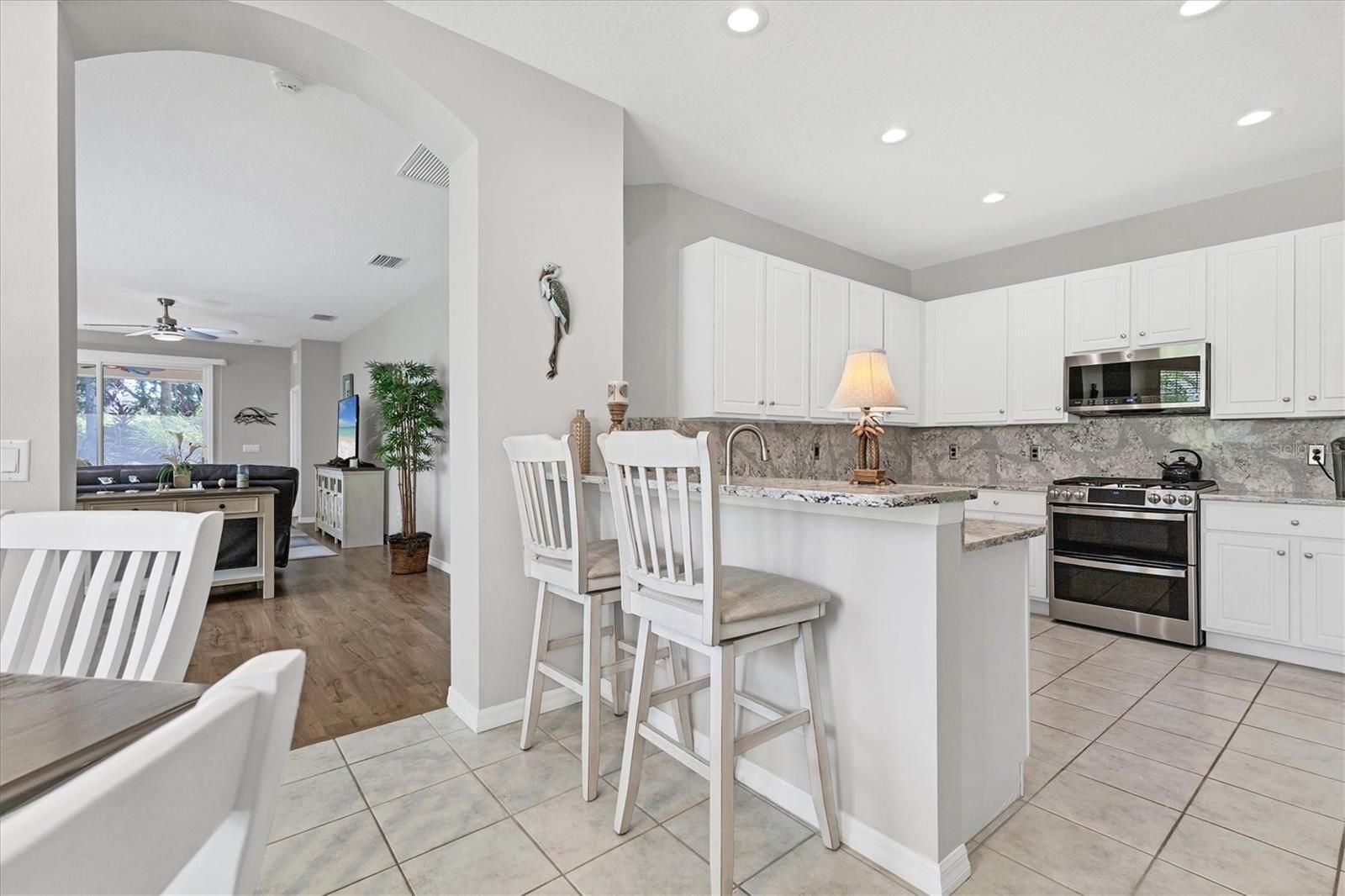 Heron’s Haven — Coastal Charm Meets Carefree Living in Heron Creek Golf & Country Club Welcome to Heron’s Haven, a beautifully refreshed PAIRED-VILLA that captures the spirit of relaxed Florida living. From the moment you step inside, you’ll feel the calm coastal energy — light, airy, and effortlessly inviting. With just over 1,500 sq ft of thoughtfully designed living space, this home lives large yet feels perfectly comfortable. This maintenance-free villa features a NEW TILE ROOF and HURRICANE IMPACT WINDOWS, 50 AMP Generator Hook-Up ,Updated AC and Water Htr giving you peace of mind and carefree living from the start. Inside, soft, nature-inspired hues set the tone — light Agreeable grays flow through the main living areas, Evergreen Fog graces the primary suite, and gentle Lakeside blue tones bring serenity to the guest bedroom, all creating a cohesive, beachy sophistication that feels fresh and alive. The main living area, great room, and den feature easy-care luxury laminate flooring, adding warmth and practicality to the home’s open layout. The cook’s kitchen is a showstopper with on-trend QUARTZ COUNTER-TOPS and backsplash, GE Profile stainless appliances, including a NATURAL GAS RANGE with double oven, abundant cabinetry, generous workspace, and a roomy pantry, it’s designed for both casual living and entertaining. A convertible den with pocket doors offers the flexibility of a home office, cozy media space, or third bedroom. The spacious great room is filled with natural light and opens seamlessly to a screened lanai framed by tropical foliage — a tranquil retreat where morning coffee and evening breezes feel equally at home. Within the gated Heron Creek Golf & Country Club, residents enjoy 27 holes of Arthur Hills–designed championship golf, Har-Tru tennis courts, a resort-style pool, fitness center, and a lively social calendar that celebrates the best of Florida living.NO CDD & LOW HOA FEES INC: High speed fiber optic internet,TV, lawn care, irrigation mulching, exterior painting and guarded gate. Just minutes from Wellen Park, the Cocoplum Shopping District, Costco, and the new $557 million Sarasota Memorial Hospital – North Port Campus just breaking ground, this home offers both everyday convenience and enduring value. Quick access to I-75, U.S. 41, area beaches, and airports keeps you close to everything that makes Southwest Florida so desirable. Heron’s Haven isn’t your typical villa — it’s fresh, coastal, and move-in ready, filled with natural light, color, and charm. Buy now before the snow flies, and come home to your own piece of paradise at Heron Creek, where every day feels like a sunny escape.