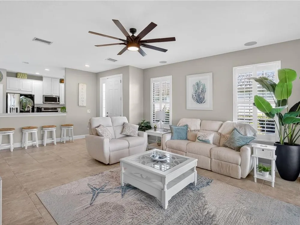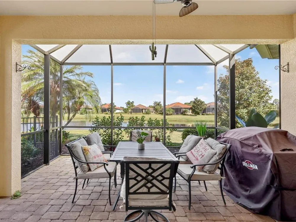Welcome to this beautifully maintained 2-bedroom, 2-bathroom home on a quiet cul-de-sac in the highly sought-after Esplanade at Artisan Lakes. Designed with an open floor plan, this home offers a spacious great room that flows seamlessly into the dining area and modern kitchen, ideal for entertaining and everyday living. The kitchen features sleek countertops, stainless steel appliances, and plenty of cabinetry for storage. The private primary suite includes a spa-like bathroom with dual sinks, a walk-in shower, and a generous walk-in closet. A second bedroom and full bathroom provide comfort for guests or flexible space for a home office. Enjoy serene indoor-outdoor living with a screened-in lanai overlooking a peaceful water view, perfect for morning coffee or evening relaxation. Additional highlights include a dedicated laundry room, neutral finishes throughout, and a thoughtfully designed layout that maximizes both comfort and style. Esplanade at Artisan Lakes is a premier Taylor Morrison resort-style community offering an impressive list of amenities: a clubhouse, community pool, fitness center, spa, tennis and pickleball courts, dog parks, and miles of scenic walking and biking trails. Conveniently located near I-75, this home provides easy access to St. Petersburg, Tampa, Sarasota, and Florida’s world-class Gulf Coast beaches.
