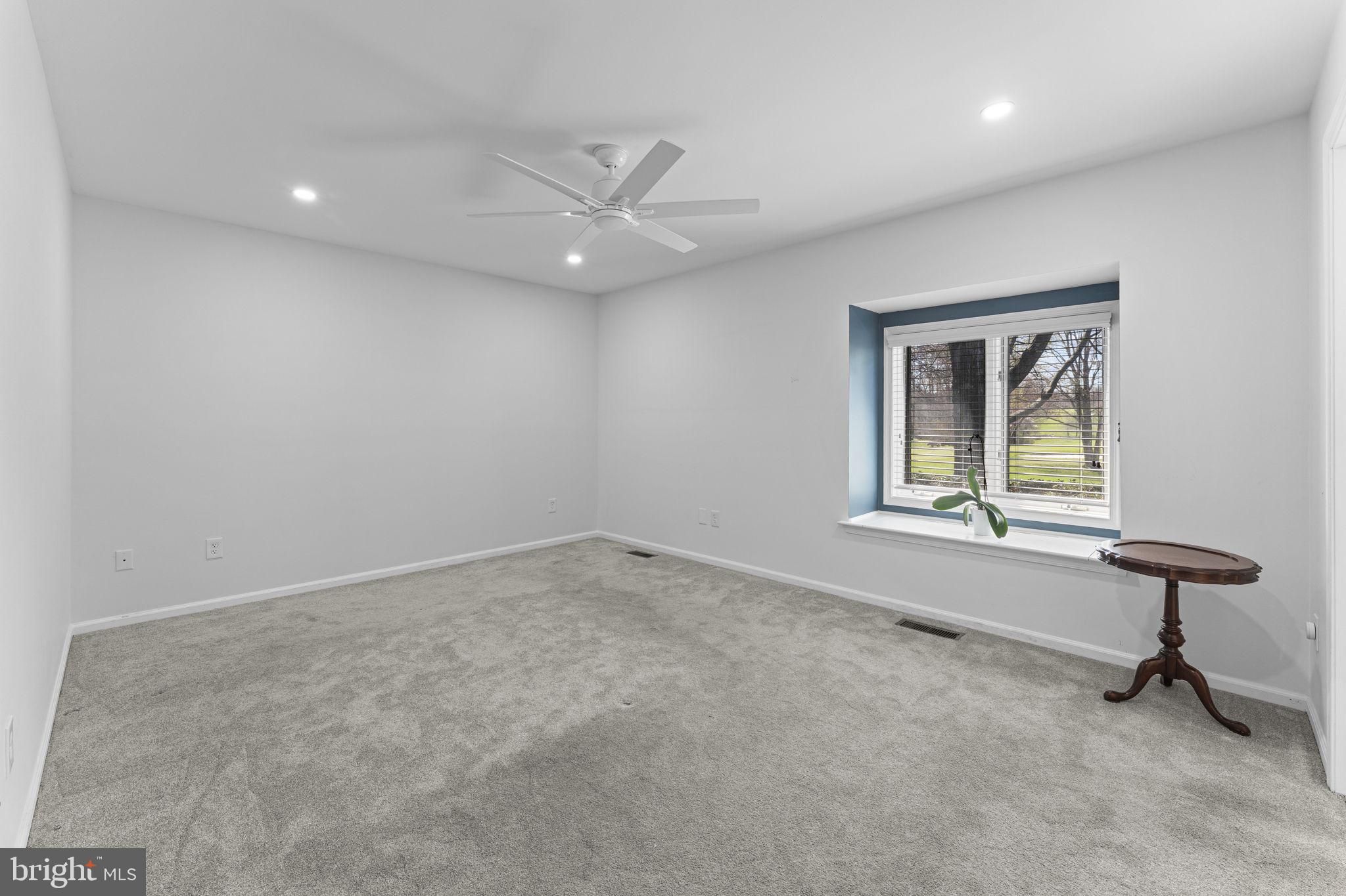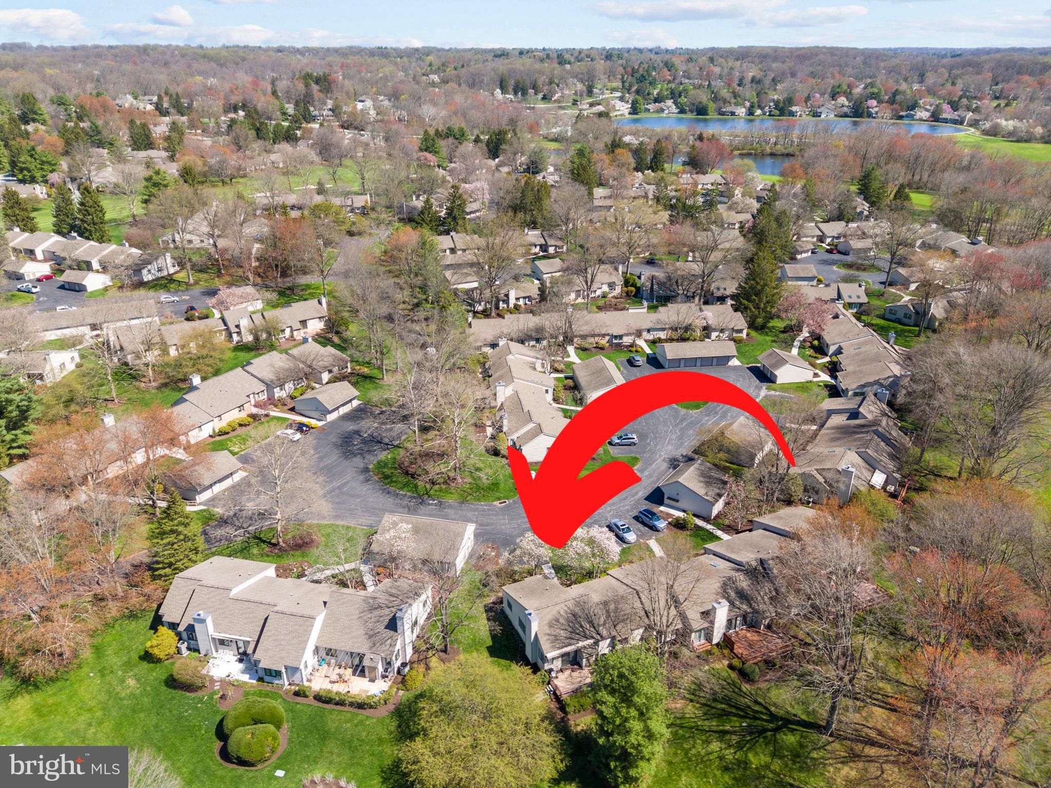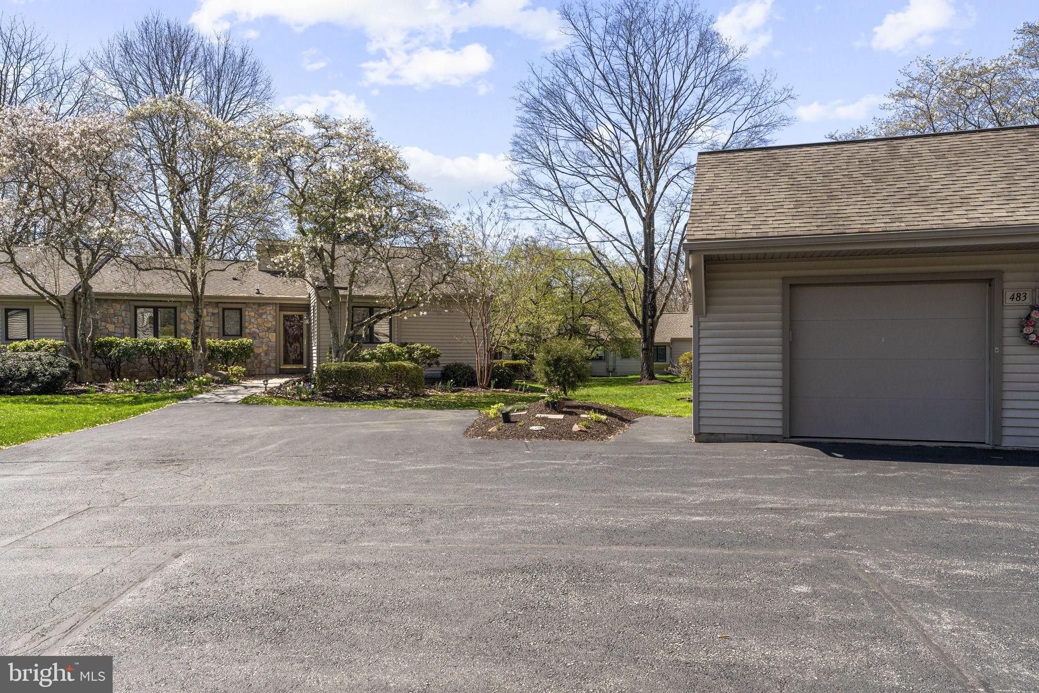 Welcome 483 Eaton Way! This well-maintained end-unit is nestled within the desirable Eaton Village at Hershey’s Mill, which offers the added benefit of the village’s own private pool. Step inside to a bright and inviting main living space where gleaming hardwood floors, recessed lighting, and a classic wood burning fireplace create a warm and welcoming atmosphere. The built-in corner cabinet and sideboard offer storage. Large windows fill the room with natural light, while sliding glass doors lead directly to the new composite deck with views of the mature, well-maintained grounds and the golf course—perfect for effortless indoor-outdoor living, entertaining and enjoying morning coffee or evening relaxation. The spacious eat-in kitchen features abundant cabinetry, newer appliances, generous counter space, and a functional center island ideal for meal preparation or casual gatherings. The laundry is conveniently located in the kitchen. The large primary suite provides a peaceful retreat with a beautifully maintained en-suite bath with glass-enclosed shower and large vanity plus a custom walk-in closet offering excellent organization and storage. The second bedroom provides flexible space for guests, a home office, or hobbies, while the full hall bath adds convenience. The finished lower level expands the home’s versatility with a large recreation room—perfect for movie nights, game days, or visiting family. Built-in cabinetry adds character and functionality, while additional unfinished space provides abundant storage or room for a workshop or fitness area. This unit also offers a one-car detached garage just outside the front door. Living in Hershey’s Mill means enjoying an active, low-maintenance lifestyle with 24-hour gated security, a championship golf course, walking trails, tennis and pickleball courts, community center activities, and beautifully maintained grounds—all just minutes from the shops, dining, and conveniences of West Chester. A wonderful opportunity to enjoy space, comfort, and community in one of Chester County’s most sought-after active adult neighborhoods.