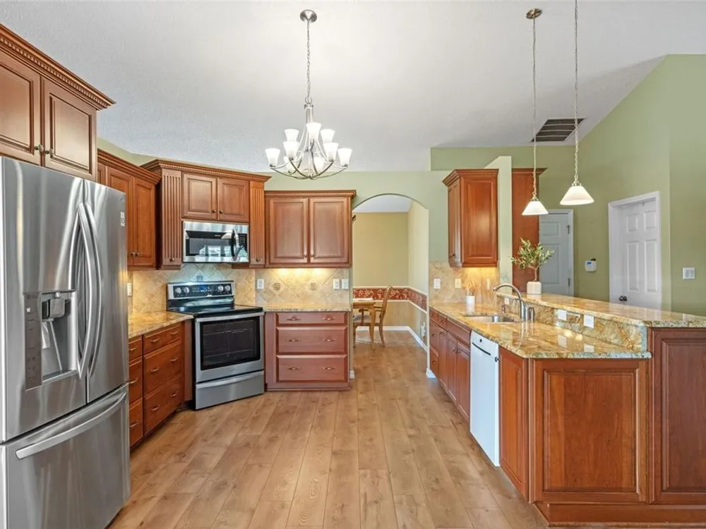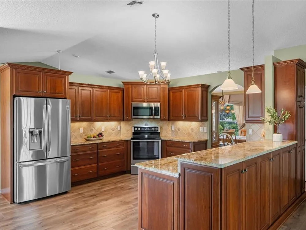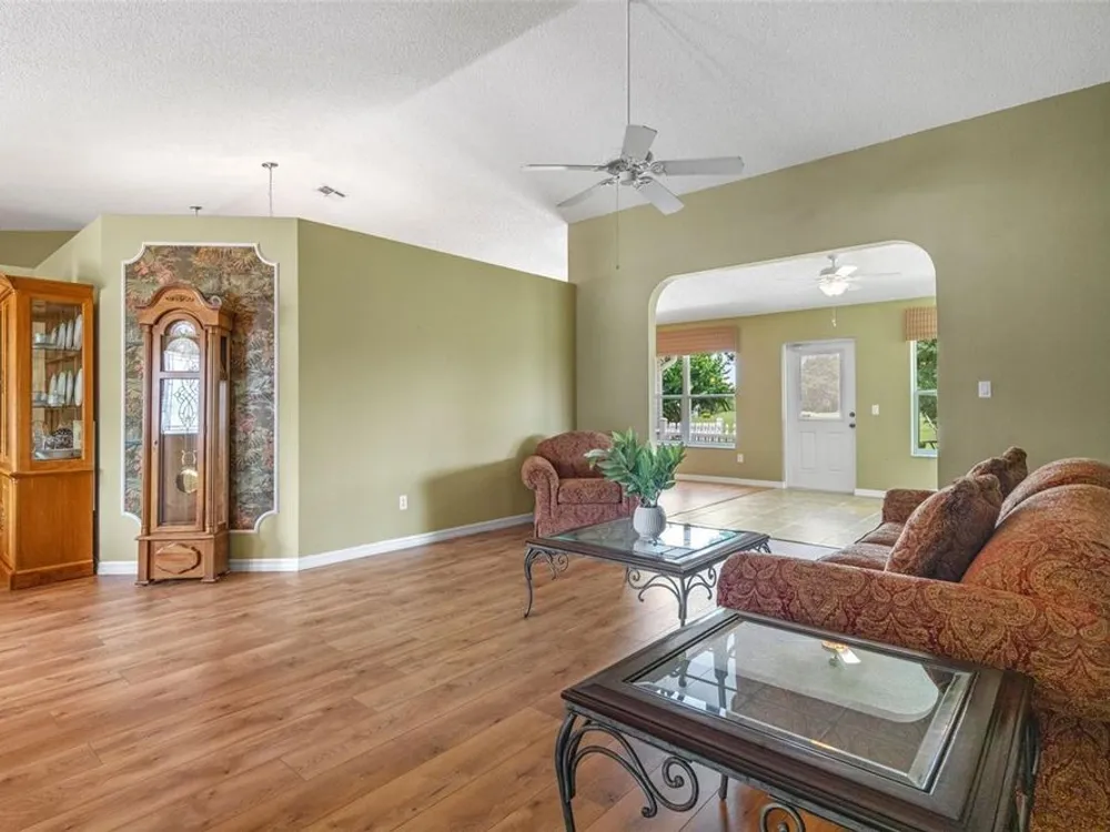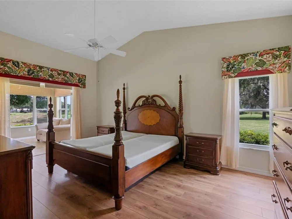 Are you finally ready to live the Florida lifestyle? You've been searching all of the websites for months, patiently waiting for that right home with just the amount of space, on a premium golf course lot and all of the updates you can imagine....and you'll be glad that you waited! Situated with an abundance of privacy at the end of the cul-de-sac, this home offers 3 bedrooms & 2 ½ bathrooms, with over 2,500 square feet, and to top it all off....a 3 car garage (so that you'll finally have a dedicated space to park your golf cart). Greeted by a long pavered driveway and manicured landscaping, this home raises the bar for curb appeal. Once across the threshold you will immediately notice all of the updates that the seller has already completed for you, including the hardwood flooring from wall to wall, and a plethora of light beaming in from every angle with your newly updated windows. A formal dining room is conveniently located adjacent to the kitchen while a separate formal living room is on the opposite side, setting the perfect backdrop for those holiday gatherings. Vaulted ceilings guide your eyes from room to room, and provide exceptional views of your backyard and stunning golf course views. Your primary suite encompasses the right side of the home, with an updated en-suite bathroom, separate shower and soaking tub, and then it's own private entrance with french-doors to your massive Florida room; with countless windows on every wall, and can easily double as your second living room space, but to use year-round. Your second bedroom is a junior suite, with it's own private bathroom and plenty of closet space, making it the perfect room for guests or family who are visiting; while your 3rd bedroom can be used as a home office, crafting room, or simply just another place to sit and read. Do you enjoy having family and friends come to visit and to entertain? Well if you answered yes, your new kitchen will now make you the envy of your circle, adorned with granite countertops, new appliances, cherry cabinets.....and storage as far as the eye can see! As if all of this space wasn't enough, you even have a designated kitchen dinette, so you can enjoy your morning breakfast there while you appreciate your million-dollar views. An updated paver patio in the back makes the perfect spot for those summer BBQ's, or you could enjoy that morning cappuccino or evening cabernet while you gaze at those sunsets. > 24 HOUR GUARD GATED COMMUNITY | NEW HVAC IN 2023 | NEW WATER FILTRATION IN 2023 | ZERO CARPET | 3 CAR GARAGE | GOLF COURSE VIEW | TRANSFERABLE TERMITE BOND | NEWER APPLIANCES < The Plantation at Leesburg is the premier 55+ community in Lake County, and offers something for everyone. An array of amenities to choose from, including two golf courses, heated swimming pools, 3 clubhouses, and a list of daily activities that is thoughtfully curated by an on-site activity director. Don't you deserve to finally live the Florida lifestyle that you have thought about for so long?
