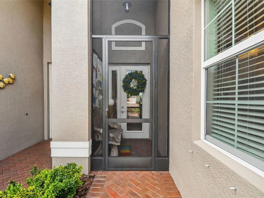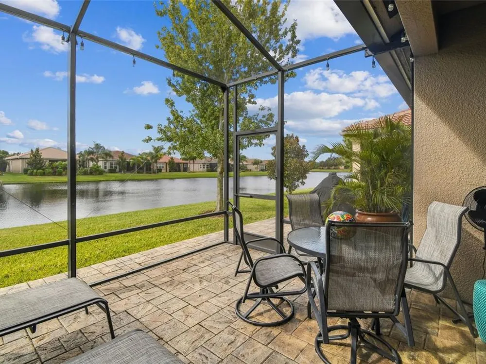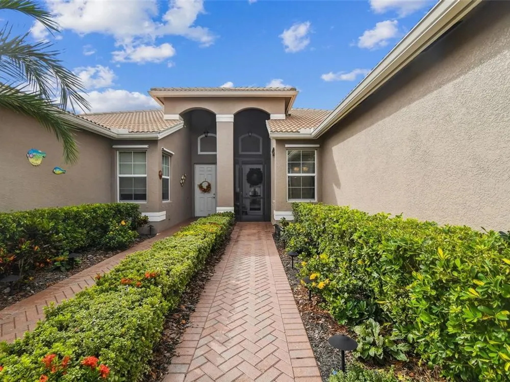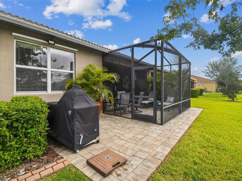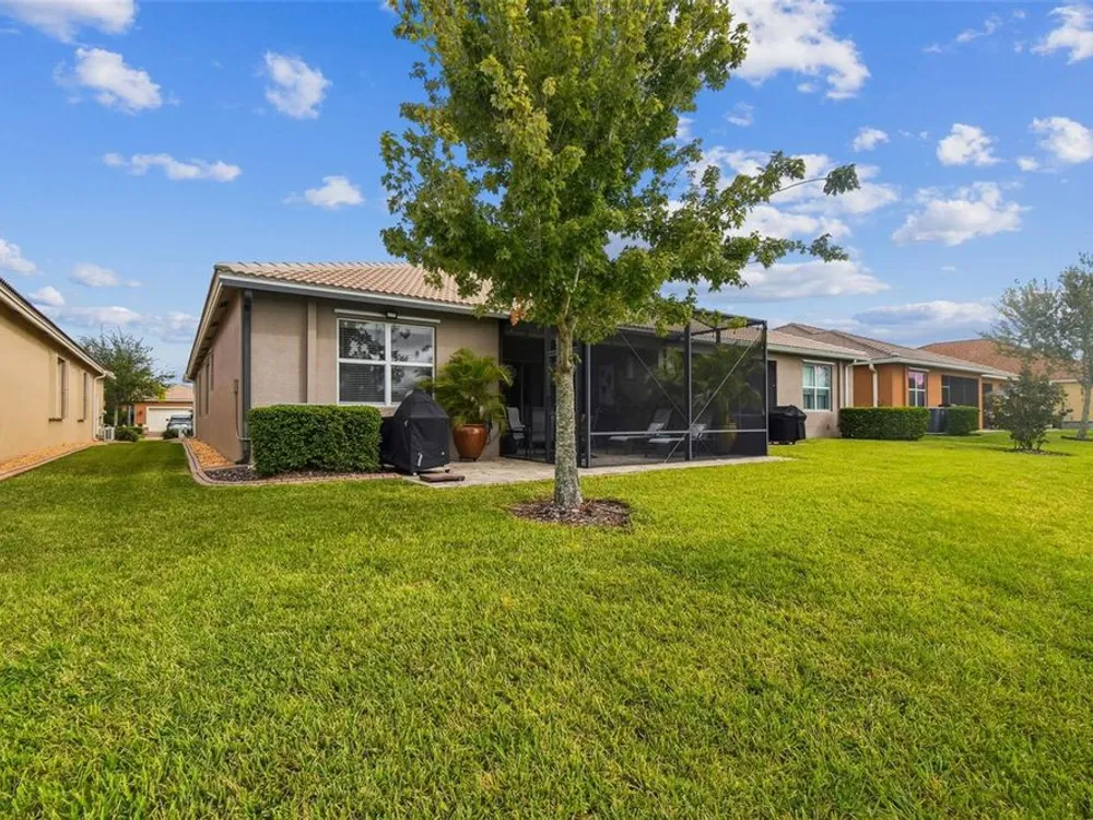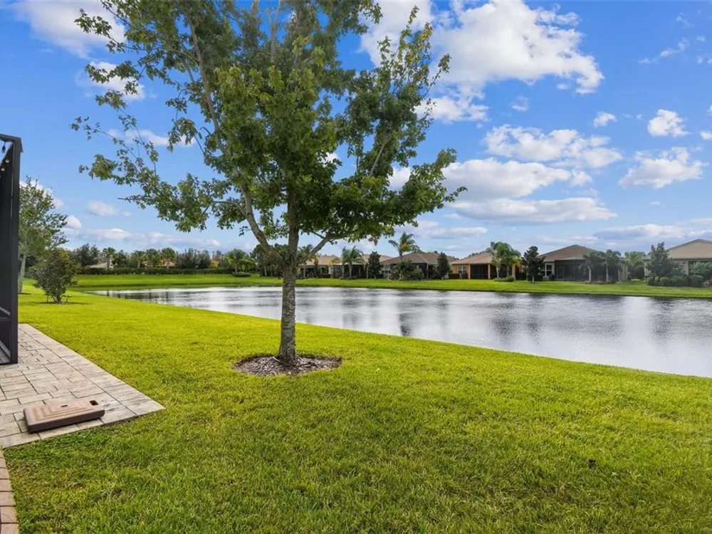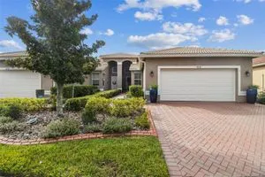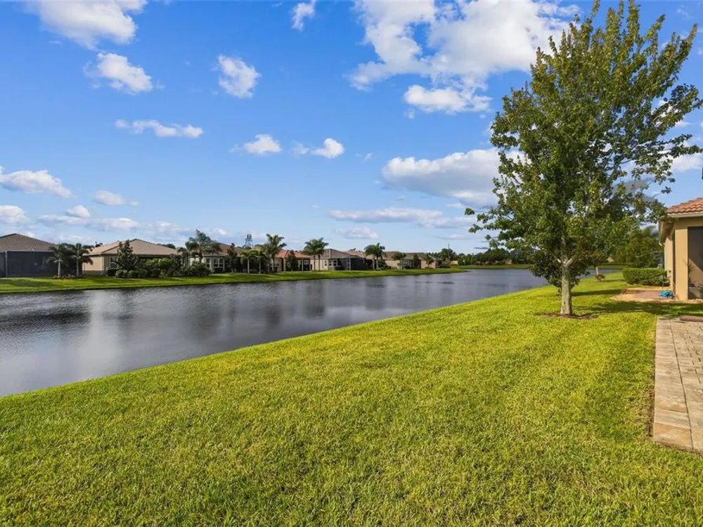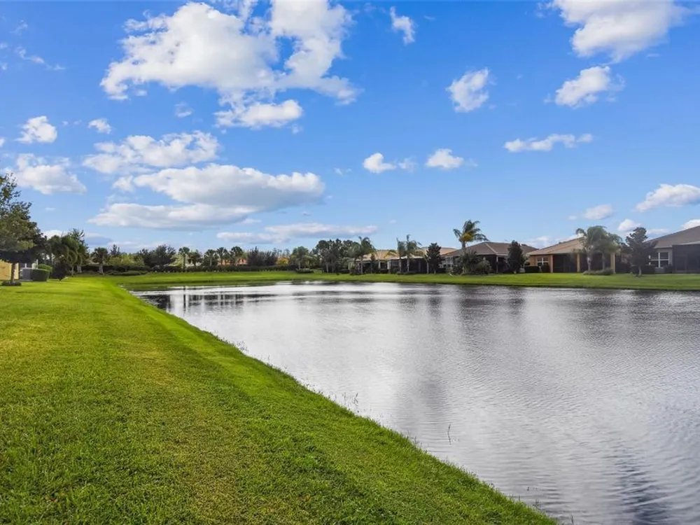 Nestled in one of the newest sections of Valencia Lakes, this exceptional Isabella Grande Model villa offers a serene, sought-after water view and that unmistakable “new home feel”—even though it was built just a few years ago! This is a rare opportunity, as villas on Marble Springs rarely come on the market. Your experience begins before you even step inside. The inviting, manicured landscaping and ornamental borders framing the walkway create superb curb appeal. The extended driveway easily accommodates two cars, and the sealed pavers add a polished touch. A screened front patio offers a private outdoor retreat to enjoy Florida’s beautiful days. Designed with exceptional care and taste, this home combines premium GL Homes upgrades with thoughtful owner enhancements to create a showcase of quality and comfort. Inside, an open split-bedroom floor plan and 9-foot ceilings welcome you with an airy, elegant ambiance. The hurricane-resistant glass front door allows soft natural light to fill the entryway, and 18x18 ceramic tiles, laid diagonally throughout (including both bedrooms), provide seamless sophistication. Elegant crown molding, 5¼-inch baseboards, and custom window valances accent every room. The gourmet kitchen is a chef’s delight, featuring quartz countertops, a high-quality infusion glass backsplash, and an extended raised breakfast bar offering additional seating. Upgraded GE stainless steel appliances include a range, microwave, double-door refrigerator, whisper-quiet dishwasher, and a recently replaced garbage disposal. The 42-inch wood cabinetry features soft-close drawers, pullout shelving, crown molding, under- and over-cabinet lighting, and a custom built-in pantry with rollout drawers. A cozy breakfast nook provides space for informal dining, and a Culligan reverse osmosis system ensures pure, crystal-clear water for drinking and cooking. The formal dining room easily accommodates large gatherings, perfect for entertaining. The primary suite is a tranquil retreat, offering a spacious walk-in closet designed by Closets by Design, and a fully remodeled ensuite bath with a double vanity, maple cabinetry, pullout shelving, and quartz countertops. The walk-in shower features a frameless glass door, floor-to-ceiling tile, a decorative infusion glass listello, and a built-in corner bench for comfort and accessibility. 2nd bdrm, currently used as an office/art studio, includes custom built-in cabinetry and a Murphy bed—both included in the sale. The second bath features a quartz countertop with an elegant banjo-style extension. The spacious living room opens through triple 8-foot sliding glass doors to an extended screened lanai, offering breathtaking water views and spectacular sunsets. Enjoy peaceful moments watching birds and wildlife from the privacy of your own home. Behind the lanai, extended pavers create the perfect grilling area for outdoor dining. Additional upgrades include: additional lighting and upgraded ceiling fans throughout, water softener system, hurricane shutters, rain-flow gutters, epoxy-coated garage flooring, separate A/C unit in the garage, extra shelving in the laundry, new water heater, well-maintained HVAC system, recently power-washed roof. It is move-in-ready home truly stands out for its quality, style, and attention to detail. Enjoy resort-style living in Valencia Lakes —where comfort, community, and Florida’s natural beauty come together perfectly.