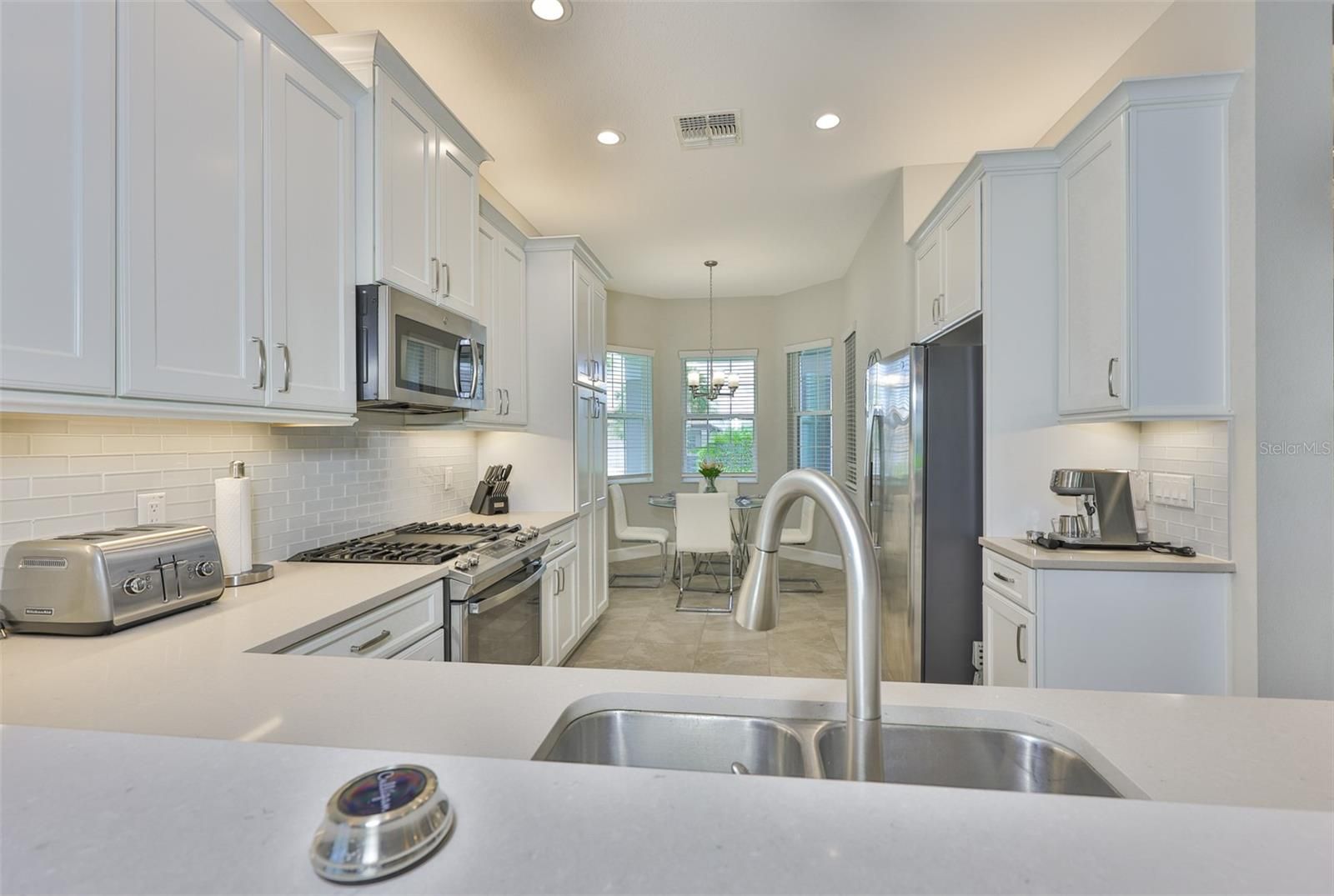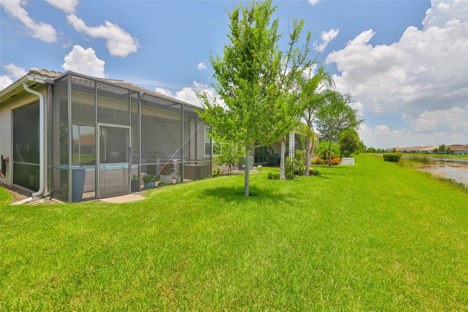 Step into a home where thoughtful upgrades and effortless elegance meet at 4836 Sevilla Shores Drive. Offering 1,890 square feet of beautifully finished living space and more than $50,000 in upgrades, this residence presents a truly turnkey opportunity. The open floor plan is designed for both everyday comfort and entertaining, with a well-appointed kitchen anchoring the space. Features include stainless steel GE appliances, a gas range, and quartz countertops that seamlessly overlook the dining and living areas. Throughout the home, attention to detail shines with custom lighting, recessed lighting, custom window treatments, ceiling fans, and a premium water softener and filtration system. French doors lead to a versatile den, ideal as a home office or third bedroom. The main living area opens to a private covered lanai, furnished with a sectional, dining table, and storage cabinet for year-round enjoyment. Enhancing the outdoor space is a custom kitchen with granite countertops, a tile backsplash, and ample prep space, perfect for entertaining or relaxed evenings at home. Additional features include a full-size washer and dryer and a built-in security camera system. Located within the gated Valencia Del Sol community, residents enjoy a resort-style clubhouse, pool, fitness center, pickleball, tennis, and bocce courts, an on-site restaurant, and a full calendar of clubs and social activities. Furniture is negotiable. Schedule your private showing today.