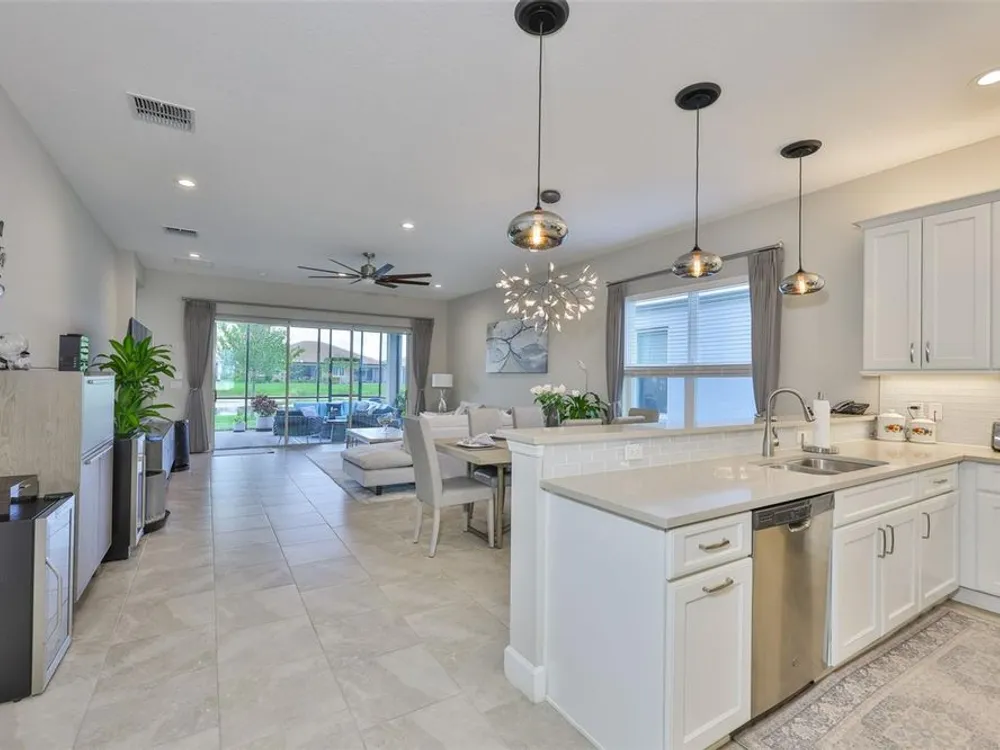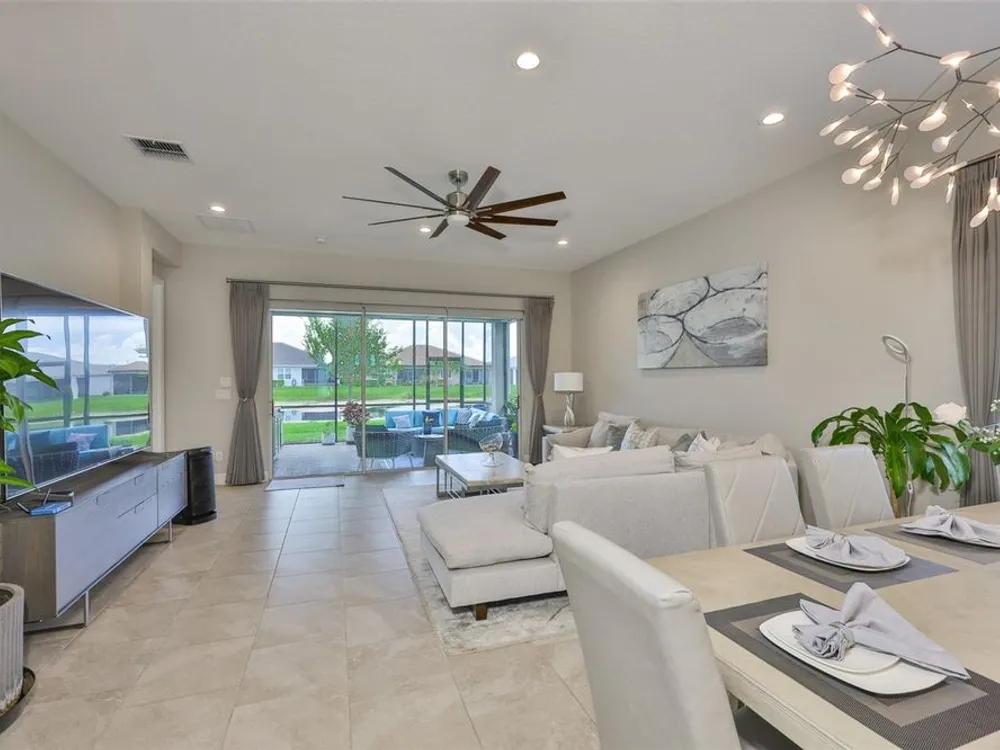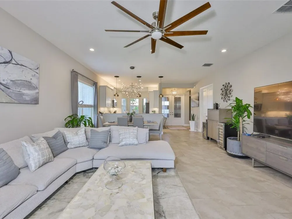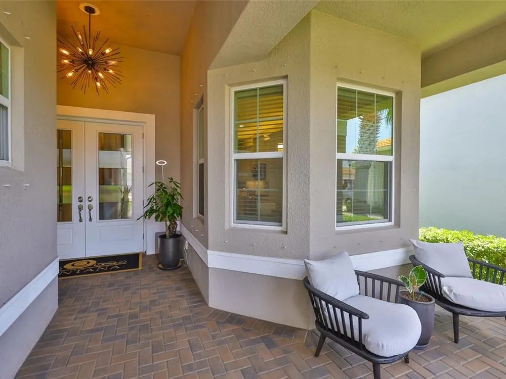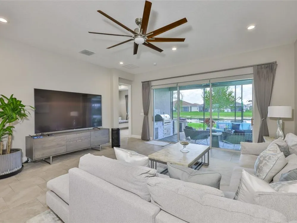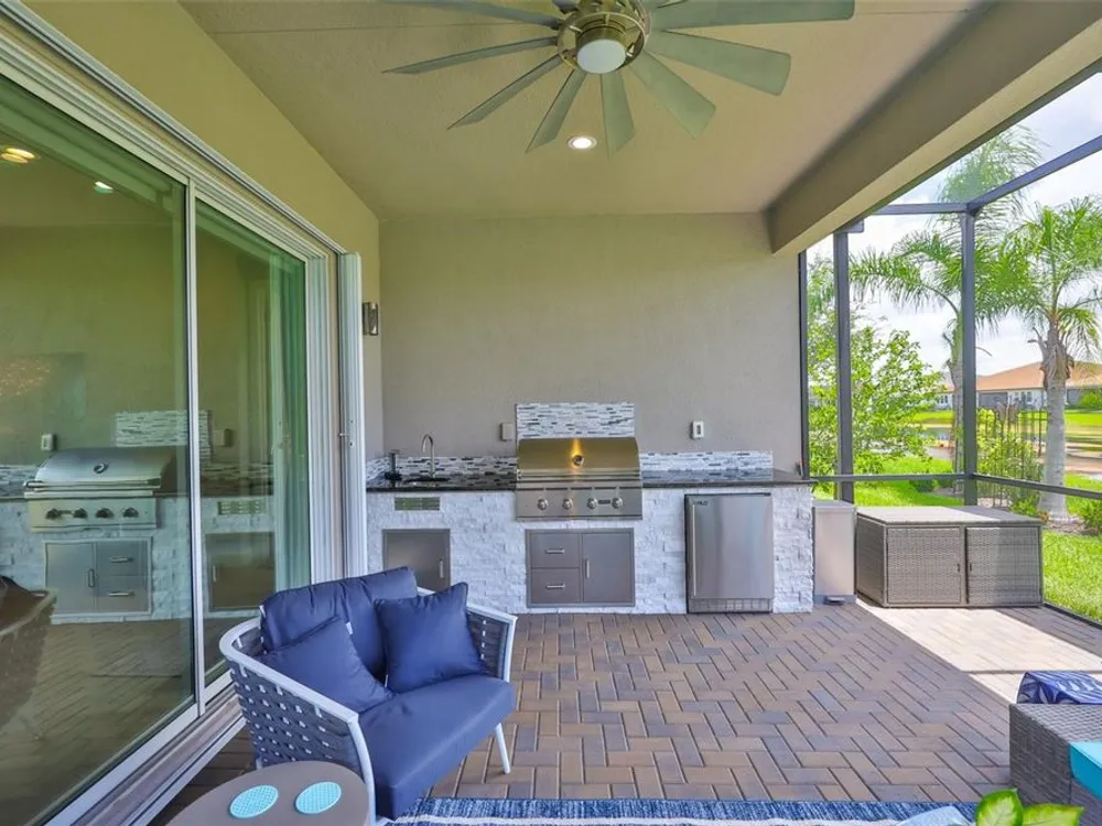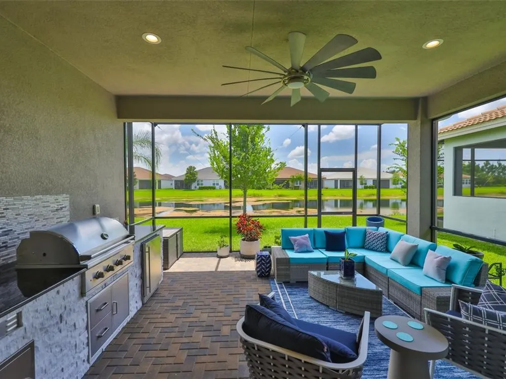 Offering $5,000 towards closing cost! Welcome to 4836 Sevilla Shores Drive in Valencia Del Sol, a premier 55+ gated community, designed for those who value comfort, connection, and a vibrant lifestyle. Offering 1,890 sq. ft. of thoughtfully upgraded living space and over $50,000 in enhancements, this home invites you to enjoy a luxury lifestyle. Step inside to a bright, open layout that flows seamlessly from room to room. The gourmet kitchen features stainless steel GE appliances, a gas range, sleek quartz countertops, and overlooks the dining and living areas, ideal for entertaining or relaxing evenings at home. Throughout the home, you’ll find designer lighting, custom window treatments, recessed lighting, ceiling fans, and a premium water softener and filtration system. French doors lead to a spacious den, perfect as a third bedroom, office, or creative retreat. Additional highlights include a full-size washer and dryer, a built-in security camera system, and countless upgrades for convenience and peace of mind. Step outside to your private outdoor oasis! Sellers spared no expense on the outdoor kitchen, featuring granite countertops, a beautiful tile backsplash, and ample prep space. It’s designed with both style and functionality in mind for effortless entertaining. The covered lanai comes fully furnished with a stylish sectional, dining table, and storage cabinet, creating the perfect setting to enjoy Florida living year-round. Living in Valencia Del Sol means more than just owning a home, it’s a true resort-style lifestyle. Enjoy a state-of-the-art clubhouse, resort-style pool, fitness center, pickleball, tennis, and bocce courts, plus an on-site restaurant and a full calendar of clubs, events, and activities. This home can be offered fully furnished. just pack your bags and move right in! Contact us today to schedule a private showing!