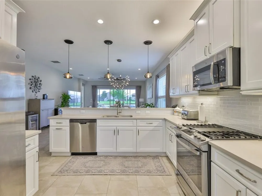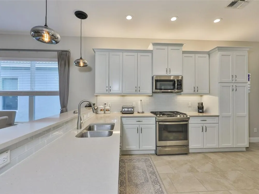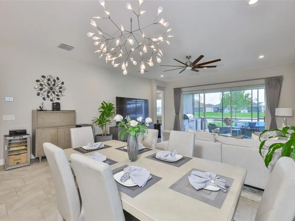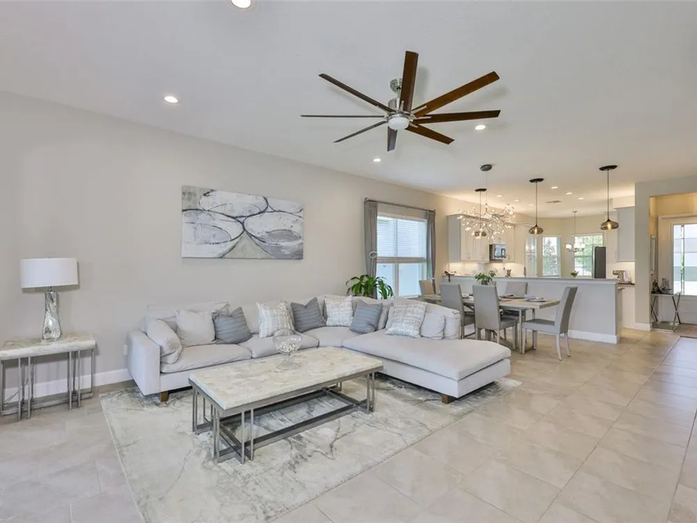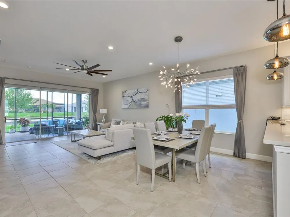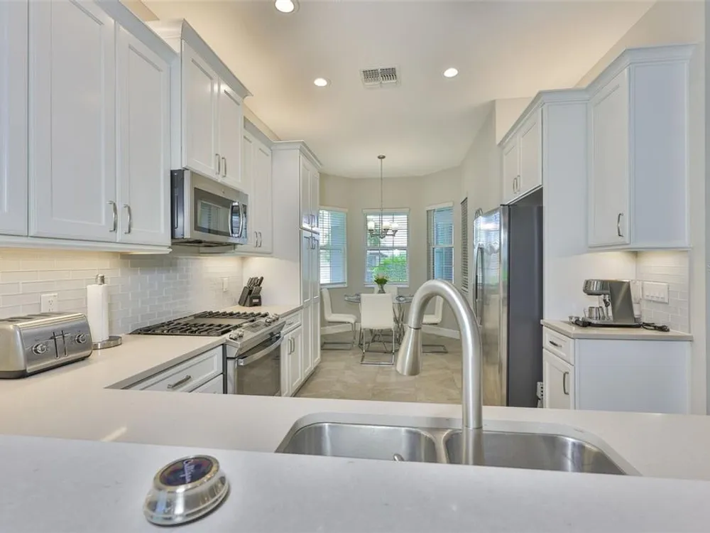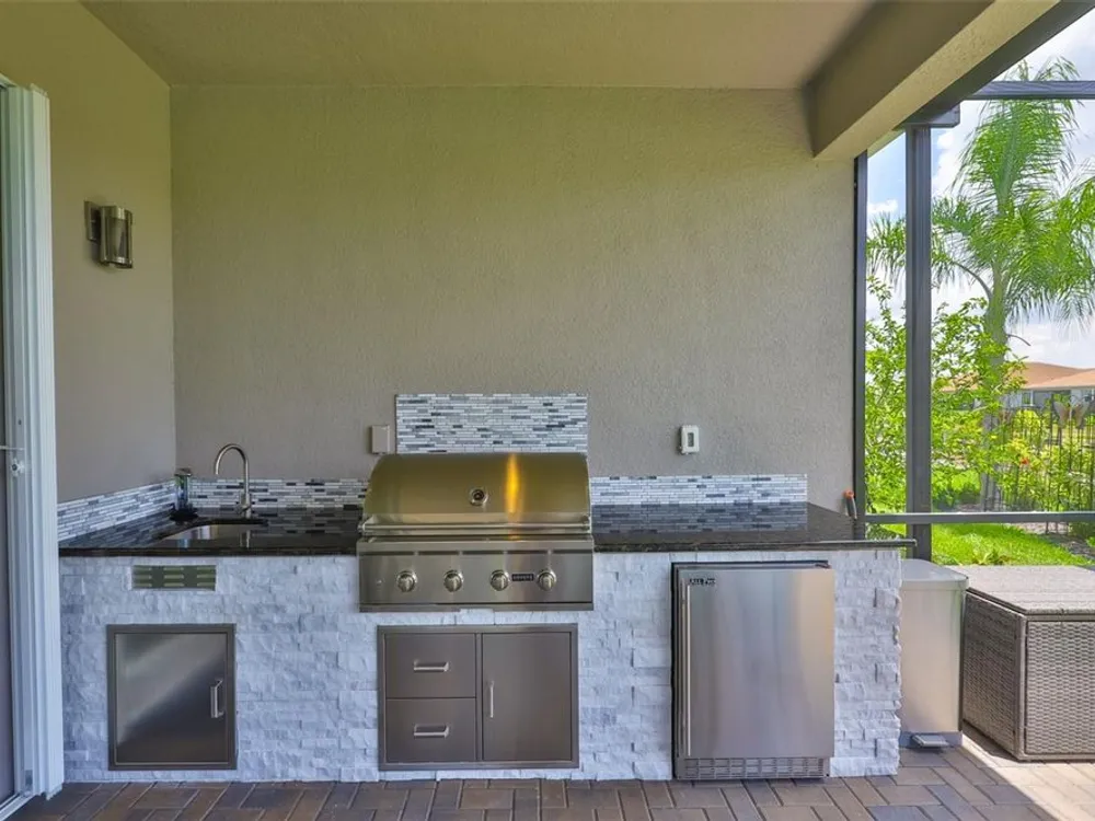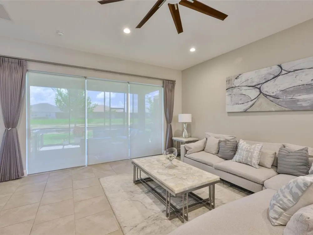 Offering $5,000 towards closing cost! Welcome to 4836 Sevilla Shores Drive in Valencia Del Sol, a premier 55+ gated community, designed for those who value comfort, connection, and a vibrant lifestyle. Offering 1,890 sq. ft. of thoughtfully upgraded living space and over $50,000 in enhancements, this home invites you to enjoy a luxury lifestyle. Step inside to a bright, open layout that flows seamlessly from room to room. The gourmet kitchen features stainless steel GE appliances, a gas range, sleek quartz countertops, and overlooks the dining and living areas, ideal for entertaining or relaxing evenings at home. Throughout the home, you’ll find designer lighting, custom window treatments, recessed lighting, ceiling fans, and a premium water softener and filtration system. French doors lead to a spacious den, perfect as a third bedroom, office, or creative retreat. Additional highlights include a full-size washer and dryer, a built-in security camera system, and countless upgrades for convenience and peace of mind. Step outside to your private outdoor oasis! Sellers spared no expense on the outdoor kitchen, featuring granite countertops, a beautiful tile backsplash, and ample prep space. It’s designed with both style and functionality in mind for effortless entertaining. The covered lanai comes fully furnished with a stylish sectional, dining table, and storage cabinet, creating the perfect setting to enjoy Florida living year-round. Living in Valencia Del Sol means more than just owning a home, it’s a true resort-style lifestyle. Enjoy a state-of-the-art clubhouse, resort-style pool, fitness center, pickleball, tennis, and bocce courts, plus an on-site restaurant and a full calendar of clubs, events, and activities. This home can be offered fully furnished. just pack your bags and move right in! Contact us today to schedule a private showing!
