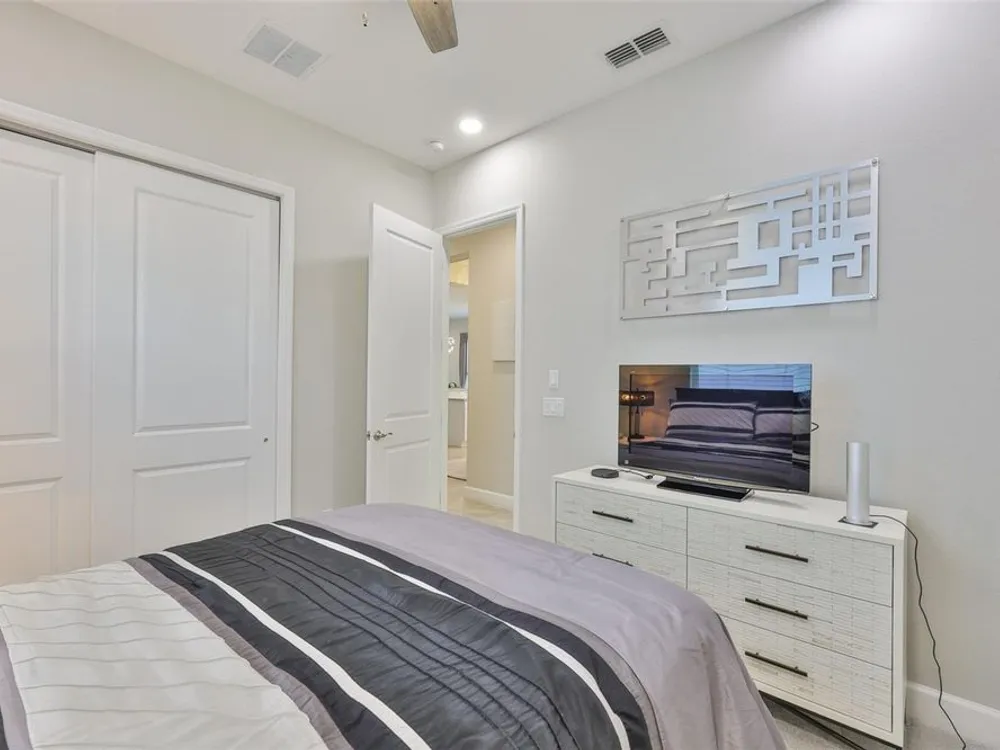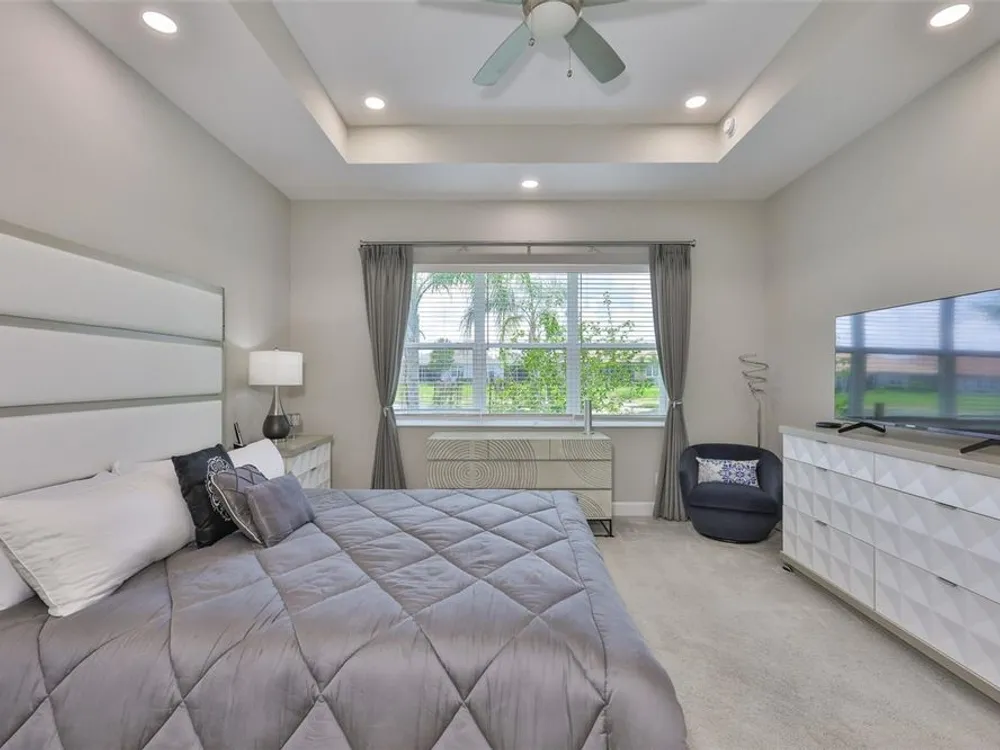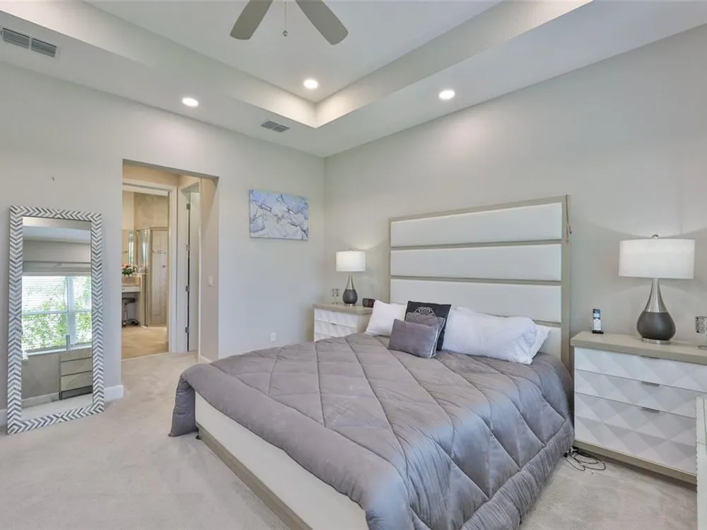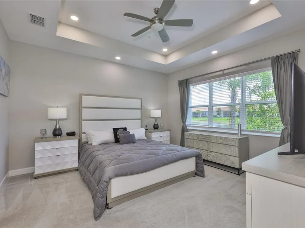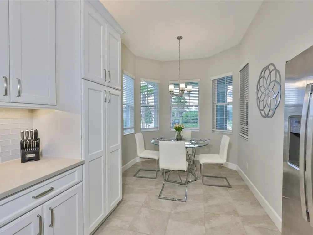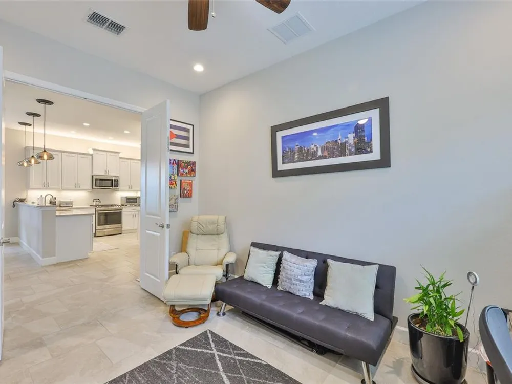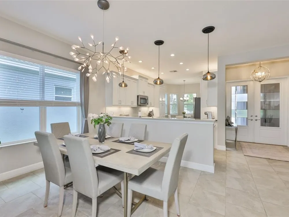 Offering $5,000 towards closing cost! Welcome to 4836 Sevilla Shores Drive in Valencia Del Sol, a premier 55+ gated community, designed for those who value comfort, connection, and a vibrant lifestyle. Offering 1,890 sq. ft. of thoughtfully upgraded living space and over $50,000 in enhancements, this home invites you to enjoy a luxury lifestyle. Step inside to a bright, open layout that flows seamlessly from room to room. The gourmet kitchen features stainless steel GE appliances, a gas range, sleek quartz countertops, and overlooks the dining and living areas, ideal for entertaining or relaxing evenings at home. Throughout the home, you’ll find designer lighting, custom window treatments, recessed lighting, ceiling fans, and a premium water softener and filtration system. French doors lead to a spacious den, perfect as a third bedroom, office, or creative retreat. Additional highlights include a full-size washer and dryer, a built-in security camera system, and countless upgrades for convenience and peace of mind. Step outside to your private outdoor oasis! Sellers spared no expense on the outdoor kitchen, featuring granite countertops, a beautiful tile backsplash, and ample prep space. It’s designed with both style and functionality in mind for effortless entertaining. The covered lanai comes fully furnished with a stylish sectional, dining table, and storage cabinet, creating the perfect setting to enjoy Florida living year-round. Living in Valencia Del Sol means more than just owning a home, it’s a true resort-style lifestyle. Enjoy a state-of-the-art clubhouse, resort-style pool, fitness center, pickleball, tennis, and bocce courts, plus an on-site restaurant and a full calendar of clubs, events, and activities. This home can be offered fully furnished. just pack your bags and move right in! Contact us today to schedule a private showing!