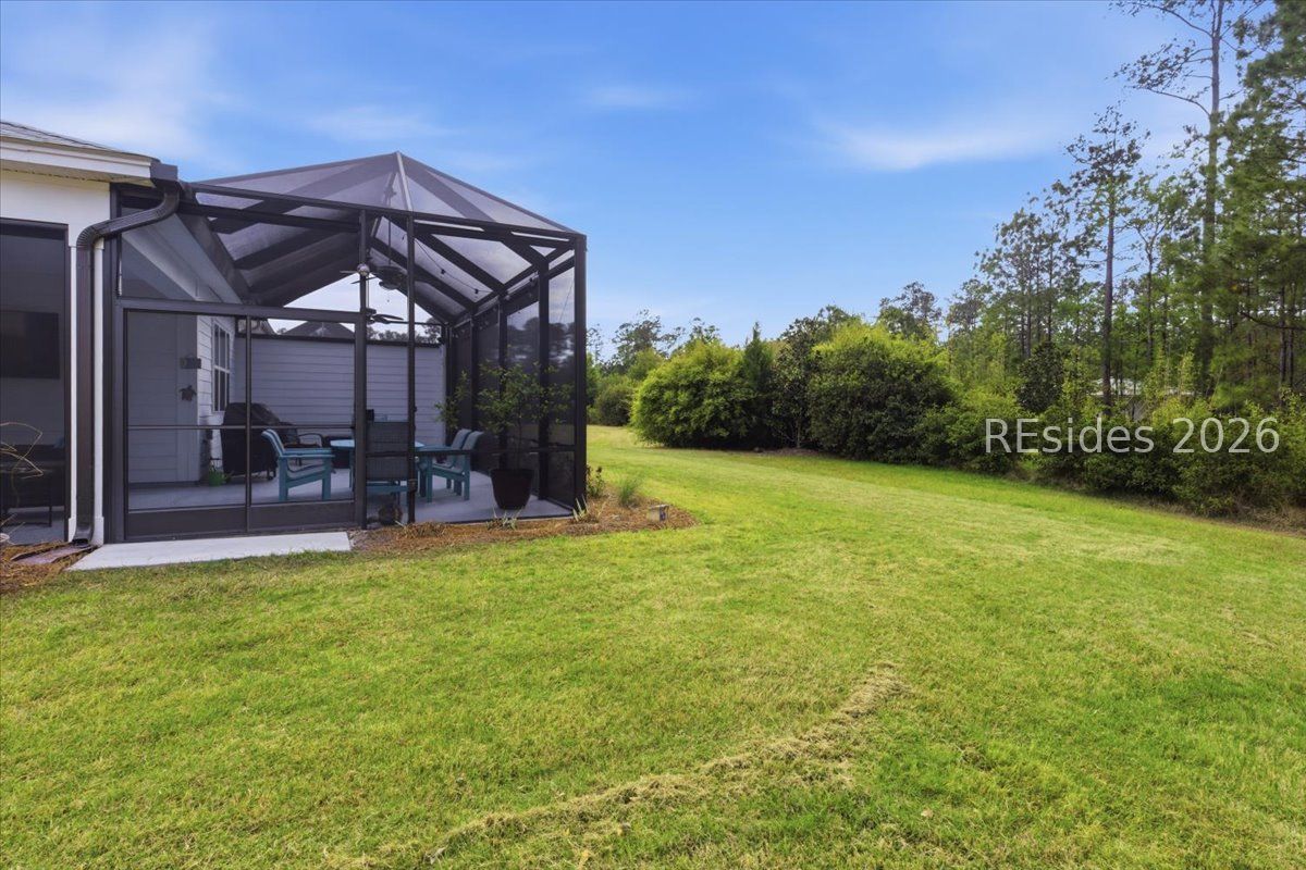 Tucked away with a serene, private wooded backdrop, this rare Lucia Villa offers the perfect blend of comfort, style, and thoughtful upgrades. Enjoy peaceful mornings and relaxing evenings from the extended screened lanai, designed for effortless outdoor living and entertaining. Inside, the kitchen is both beautiful and functional, featuring pull-out cabinetry, a blind corner unit, custom pantry shelving, and a gas range-ideal for any home chef. The open layout flows seamlessly into the living spaces, creating an inviting atmosphere throughout. The spacious primary suite is a true retreat, complete with a custom closet, elegant floor-to-ceiling tiled shower, and convenient pocket doors. A versatile den with pocket doors and both high and low media connections allows flexibility for your preferred TV setup or home office needs.Guests will feel right at home in the well-appointed bedroom with its own custom closet, while the guest bathroom also showcases floor-to-ceiling tile for a polished finish. Additional highlights include a well-equipped laundry room with cabinets, shelving, a utility sink, and a folding counter, as well as pull-down attic access in the garage and a whole-home water filtration system. Step outside to the extended lanai-an entertainer's dream-featuring epoxy flooring, privacy shades, enhanced lighting, a gas stub for grilling, a large sliding screen door for easy yard access, and even a 220-amp outlet ready for a future hot tub.This exceptional villa combines privacy, upgrades, and functionality-truly a rare find!
