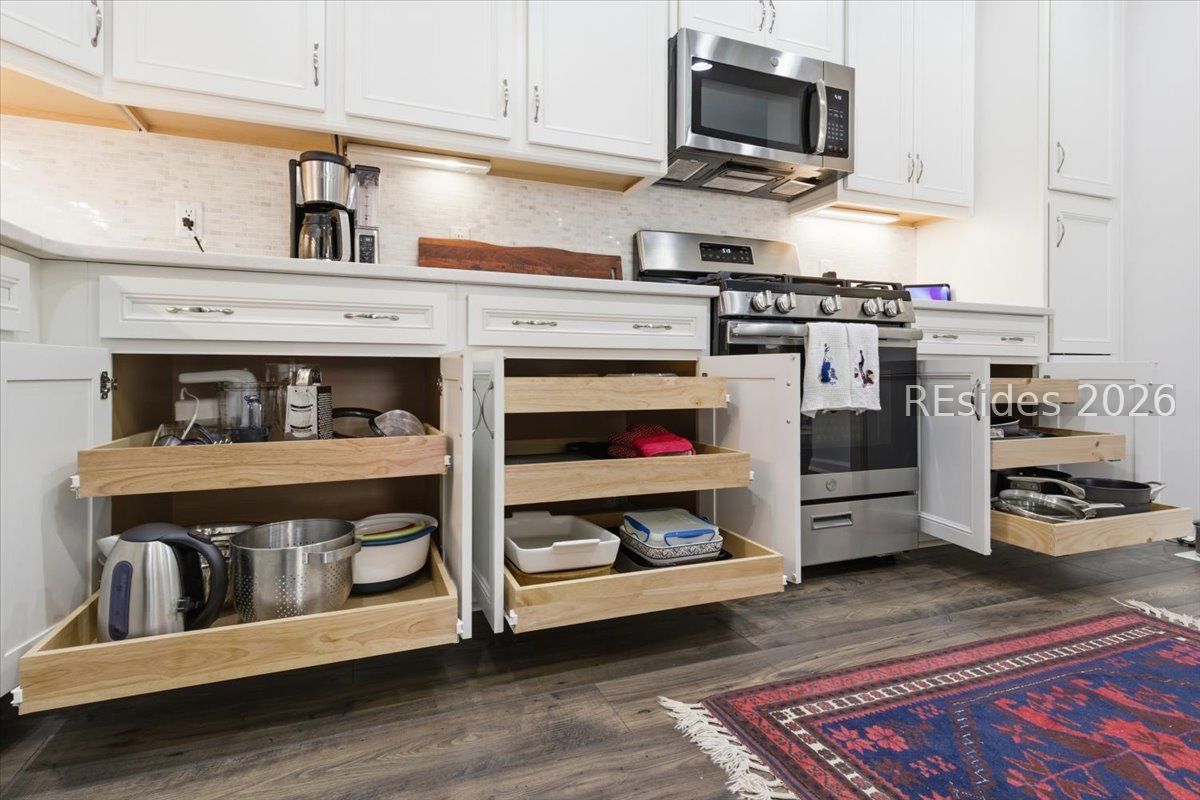 - Disposal, Gas Range, Microwave, Tankless Water Heater, Water Purifier