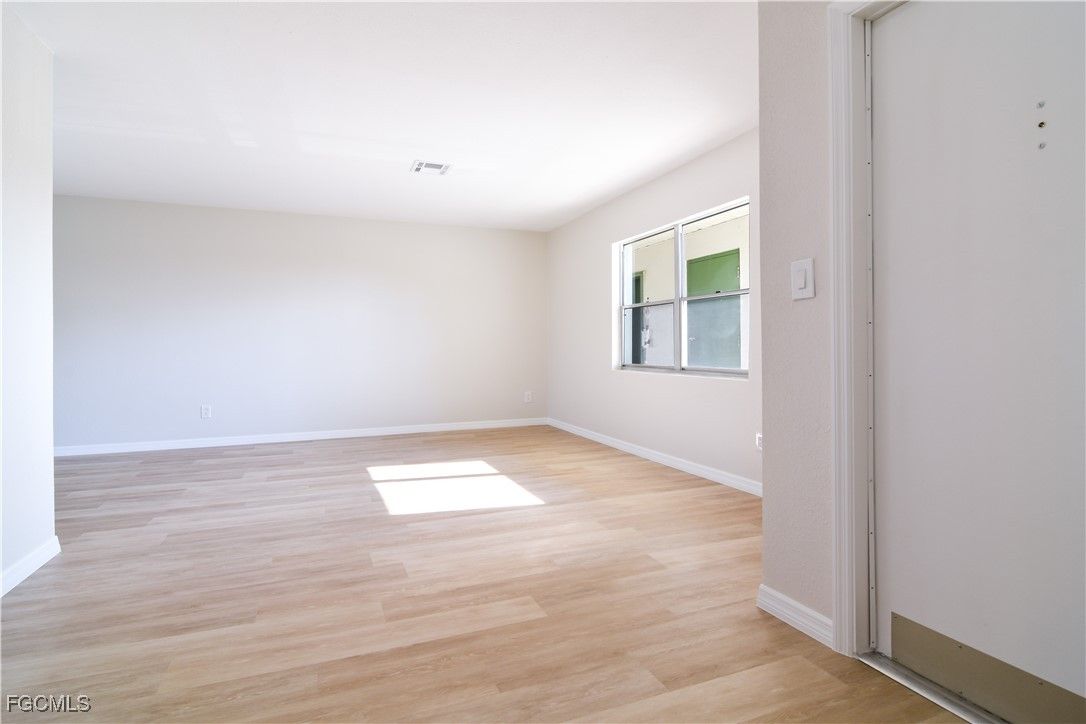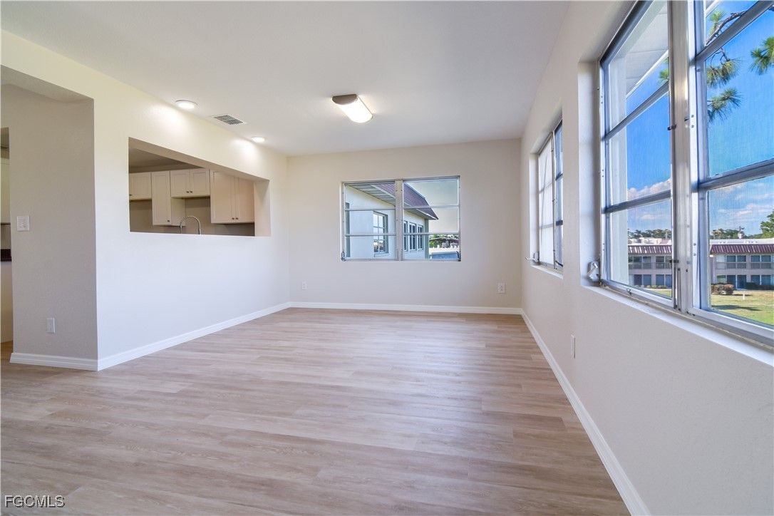 PRICE IMPROVEMENT ON THIS COMPLETELY RENOVATED GEM OVERLOOKING EL RIO GOLF COURSE. Beautiful Top Floor unit With Treehouse Views. 12 Unit Building Is 55 And Better Community With An Elevator And New Roof - All Assessments Paid! This Lovely 2 Bedroom 2 Bathroom Condominium Lives Like A House, Boasting 1378/Square Feet Of Living Space. The Professional Refurbishment Has Just Been Completed From The Floor Up With New Luxury Vinyl Flooring Throughout The Main Living Areas, Highlighted With New Baseboards. Additionally, There Are New Pre-hung Interior Doors And Hardware. New Drywall And Designer Influenced Paints. Each Of the Bathrooms Feature A Contemporary Tile Design: New Guest Bathtub, Commode, And Sink Cabinet with Storage; Primary Bath En Suite Has A Walk In Shower, Commode, Sink Cabinet With Storage, And Linen Closet. Primary Bedroom Also Has A Large Walk In Closet, Ready For Your Custom Design Touch And Is At The End Of the Hall For Additional Privacy From The Main Living Areas. The Bedroom Hallway Also Features A Linen Closet, A Closet Housing The Hot Water Heater With Additional Storage Space And A Laundry Room With Washer And Dryer, And An Exterior Service Entrance Door! Bedrooms Are Each Wired For You To Install Your Choice Of Ceiling Fan Or Light Fixture. Additionally, The Bedrooms Each Have Great Light And Views Of The Golf Course. Design Your Lifestyle With Versatile Main Living Areas For Comfort And Convenience. There Is An Additional Closet Near The Front Entrance And The Kitchen, Could Be Used As A Front Hall Closet Or Additional Pantry Space For The Custom Designed Cook's Kitchen. This Dream Filled Space Has Been Designed To Maximize Storage Space With Plenty Of White Raised Panel Cabinetry, Rich Granite Countertops With Warm Organic Hues That Compliment The Luxury Vinyl Flooring. Enjoy Treetop Views, Through The Passthrough, While At The Deep Stainless Steel Kitchen Sink. Versatile Bonus Space At Rear Of Home Would Make A Great Den, Home Office, Or Cozy TV Room. This Building Does Not Have Use Of The Swimming Pool, However, There Are Swimming, Golfing, And Boating Amenities Nearby, To Use As You Like, Without Having To Pay An Increased Association Fee To Maintain Them: There Is A Lovely, Refurbished Lee County Community Heated Swimming Pool Just A Short Walk Or Bike Ride North On Orange Grove Blvd. Additionally, Enjoy A Golf Outing At The El Rio Golf Course, Adjacent To The Property. This Waterway Estates Community Staple Is An 18 Hole, Par 60 Course, Open To The Public, With Pay As You Play Tee Times! Finally, A Cape Coral Boat Ramp, 3 Miles Away, At Rosen Park At The South End Of SE 24th Ave With Plenty Of Vehicle And Trailer Parking, With Boat Slips Available For Rent! Walking Distance To Grocery, Pharmacy, And Specialty Stores, Churches, Restaurants, Bars, Personal And Professional Services, This Laid Back Lifestyle Is Perfect To Call Home, Or 2nd Home! Please Schedule Your Private Showing Of This Lovely Property Today!