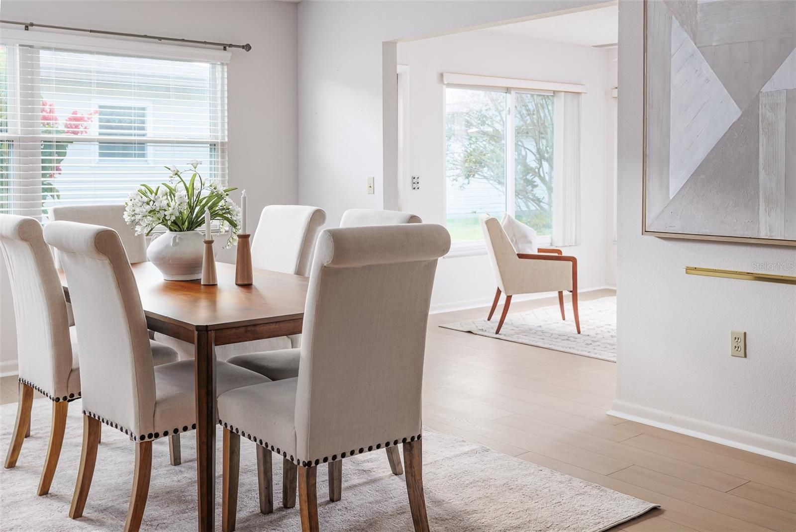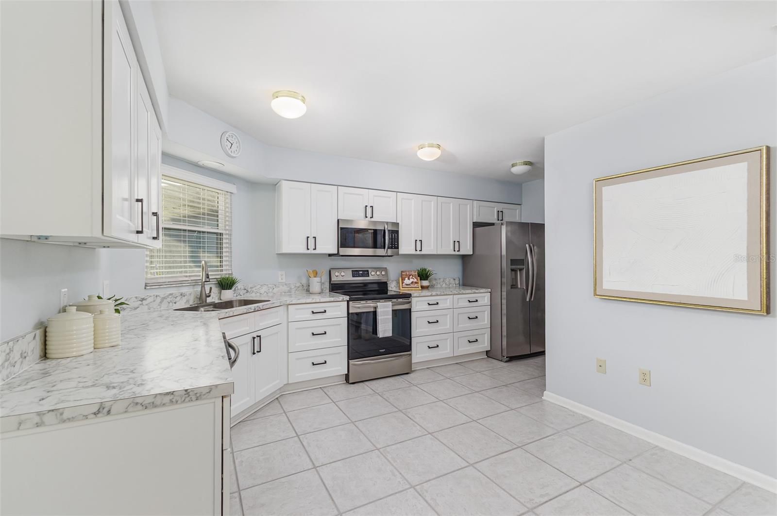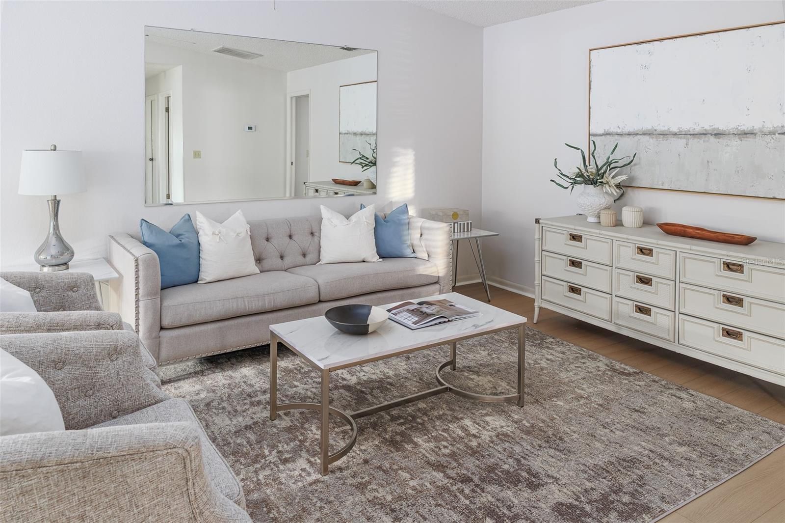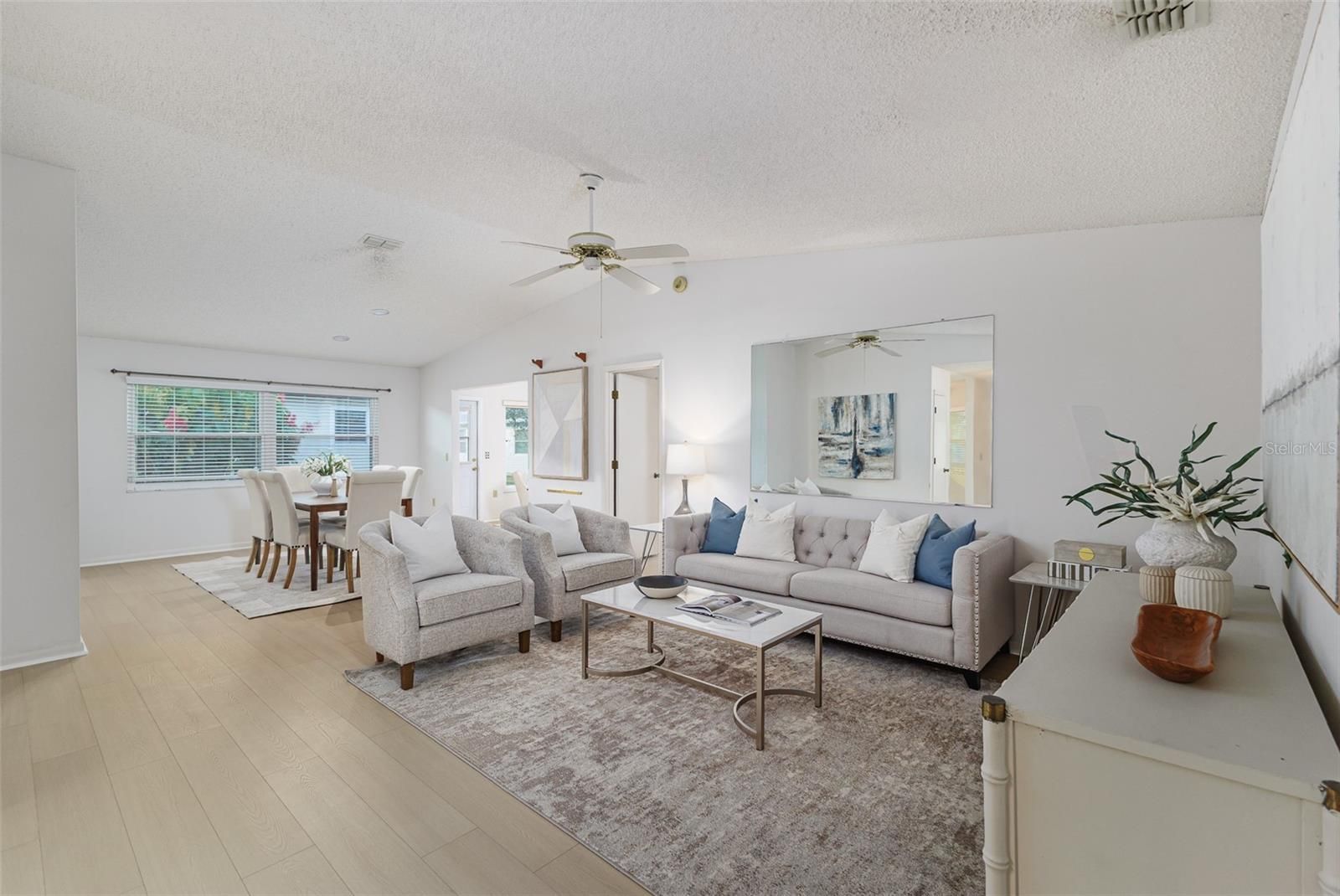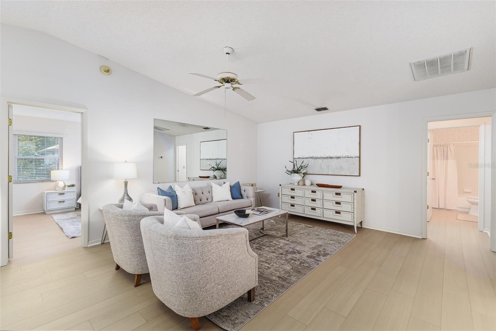 This attractive 2 bedroom, 2 bathroom home offers 1,664 square feet of thoughtfully designed living space that perfectly balances comfort and style. Step inside to discover brand new luxury vinyl plank flooring that flows seamlessly throughout the main living, bedrooms and baths, creating a cohesive and modern feel. The heart of the home features an upgraded kitchen with beautiful upgraded cabinets and enhanced appliances that make meal preparation a pleasure rather than a chore. A large walk-in pantry provides ample storage for everything from everyday essentials to those bulk purchases you promised yourself you'd actually use. The eat-in kitchen design offers casual dining convenience, while the spacious living room and dining room combination creates an ideal space for entertaining. The primary bedroom is generously sized and includes an en-suite bathroom featuring a dual sink vanity and not one, but two walk-in closets because one closet just isn't enough! An additional linen closet ensures you'll never run out of storage options. A versatile bonus room adds extra flexibility to the floor plan, perfect for a home office, craft room, or that exercise equipment you swear you'll use regularly. The screened-in porch extends your living space outdoors, offering a peaceful retreat for morning coffee or evening relaxation. Practical amenities include a two-car garage and a total of 2,230 square feet when including all spaces. Located in South Lakeland, this home provides convenient access to local amenities including parks, shopping, and healthcare facilities, making daily life both comfortable and convenient. Before leaving the gates of this beautiful 55+ community, don’t forget to stop by the clubhouse and see the Olympic size swimming pool, spa, and shuffleboard courts. Pop into the office to get access to the clubhouse and fitness room. If a relaxed and carefree lifestyle is what you’re looking for then welcome home!!
